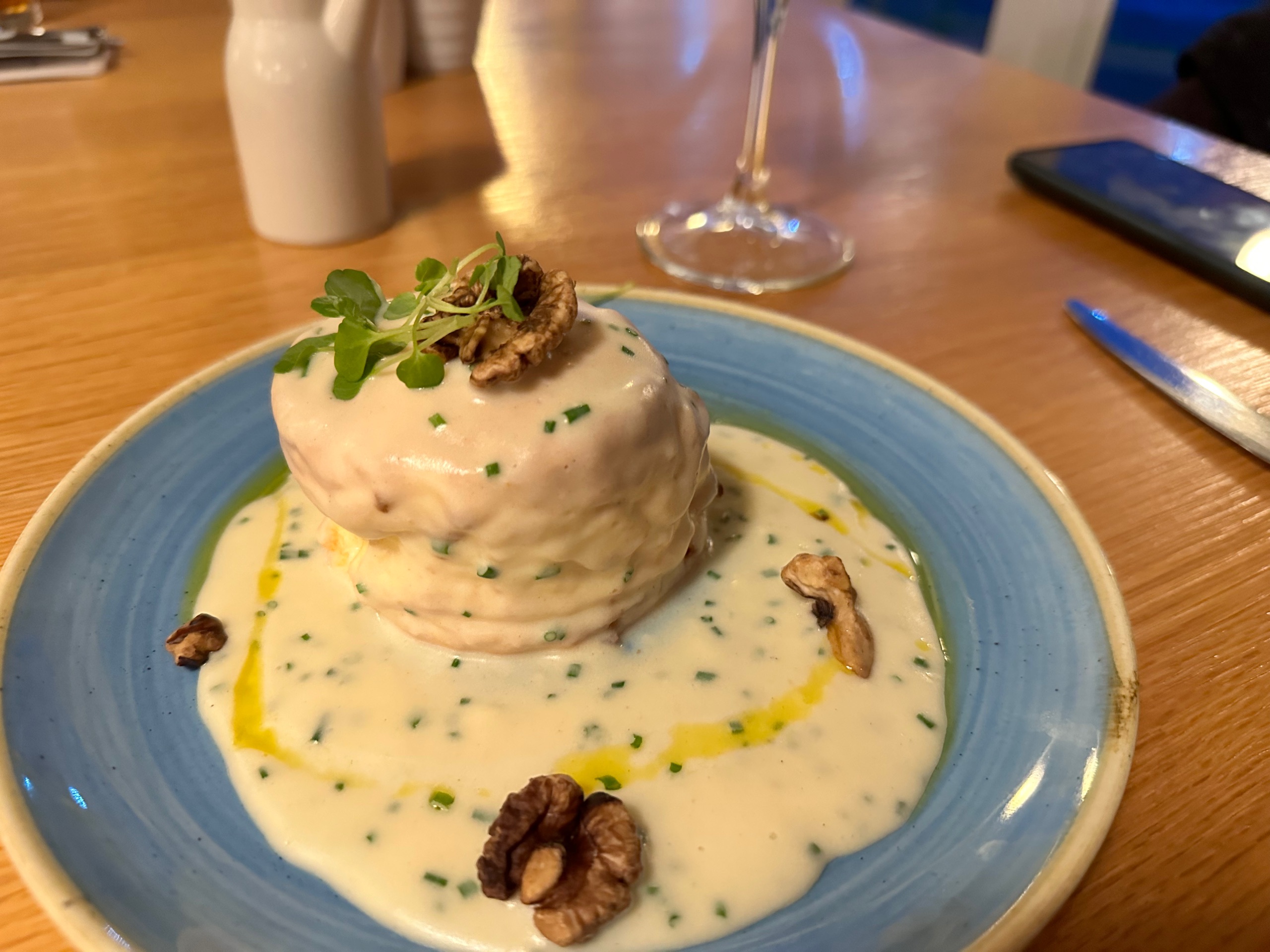 EVERYTHING was delicious. Some of the best fish I’ve ever had - really incredibly light and so tasty. And generous portions all round. For liquids Helen had a cocktail which, I’m told, was also gorgeous; I had a very nice local pale ale. Followed by another, and another.