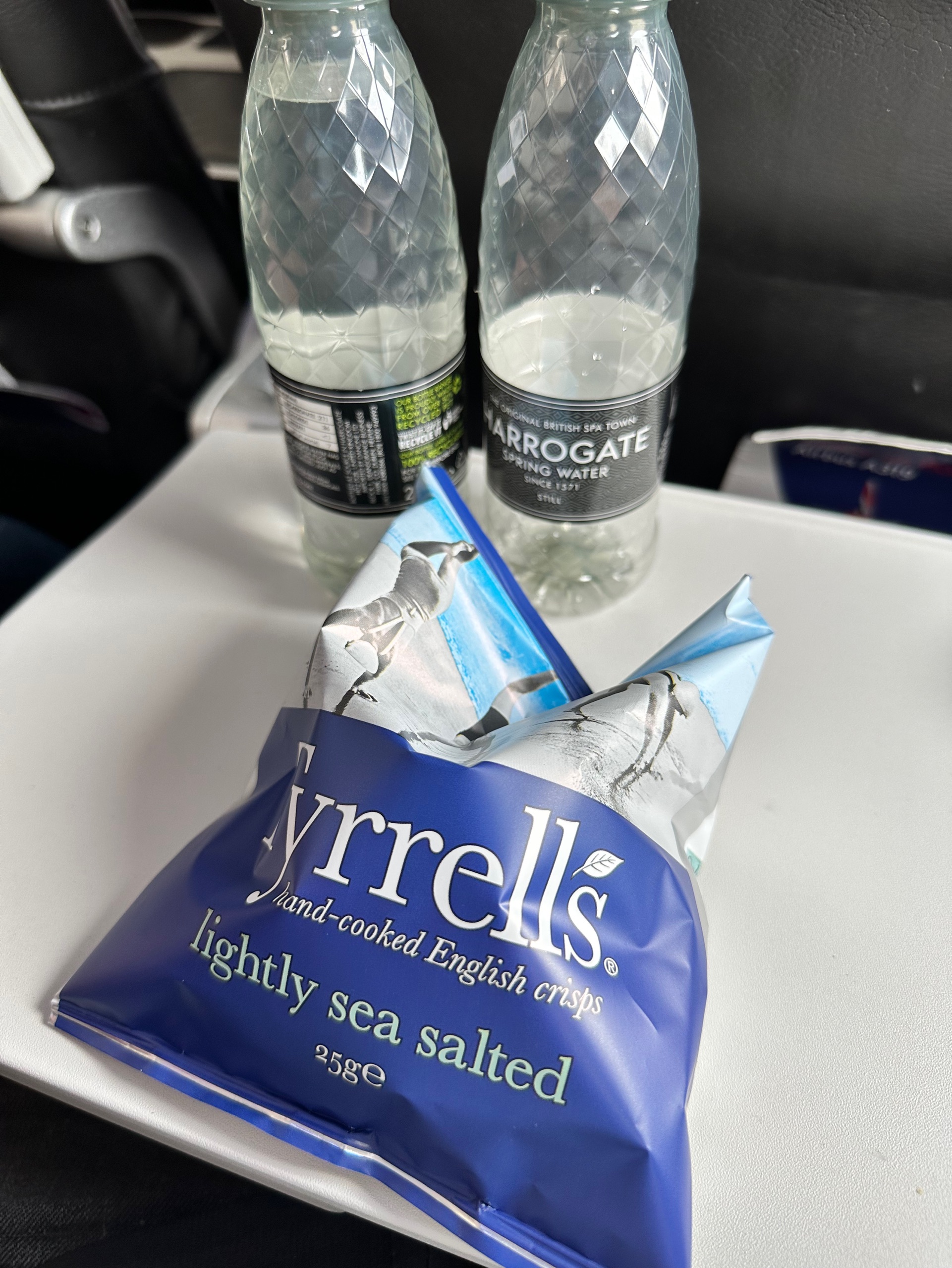 Unlike in 2019, you do get free stuff in economy on BA short haul these days. Not like the “glory” days of before: what we got was a tiny bottle of water and a packet of crisps. They did announce that we’d be able to order some buy-on-board stuff too, but in actuality that never happened. No hint of it.