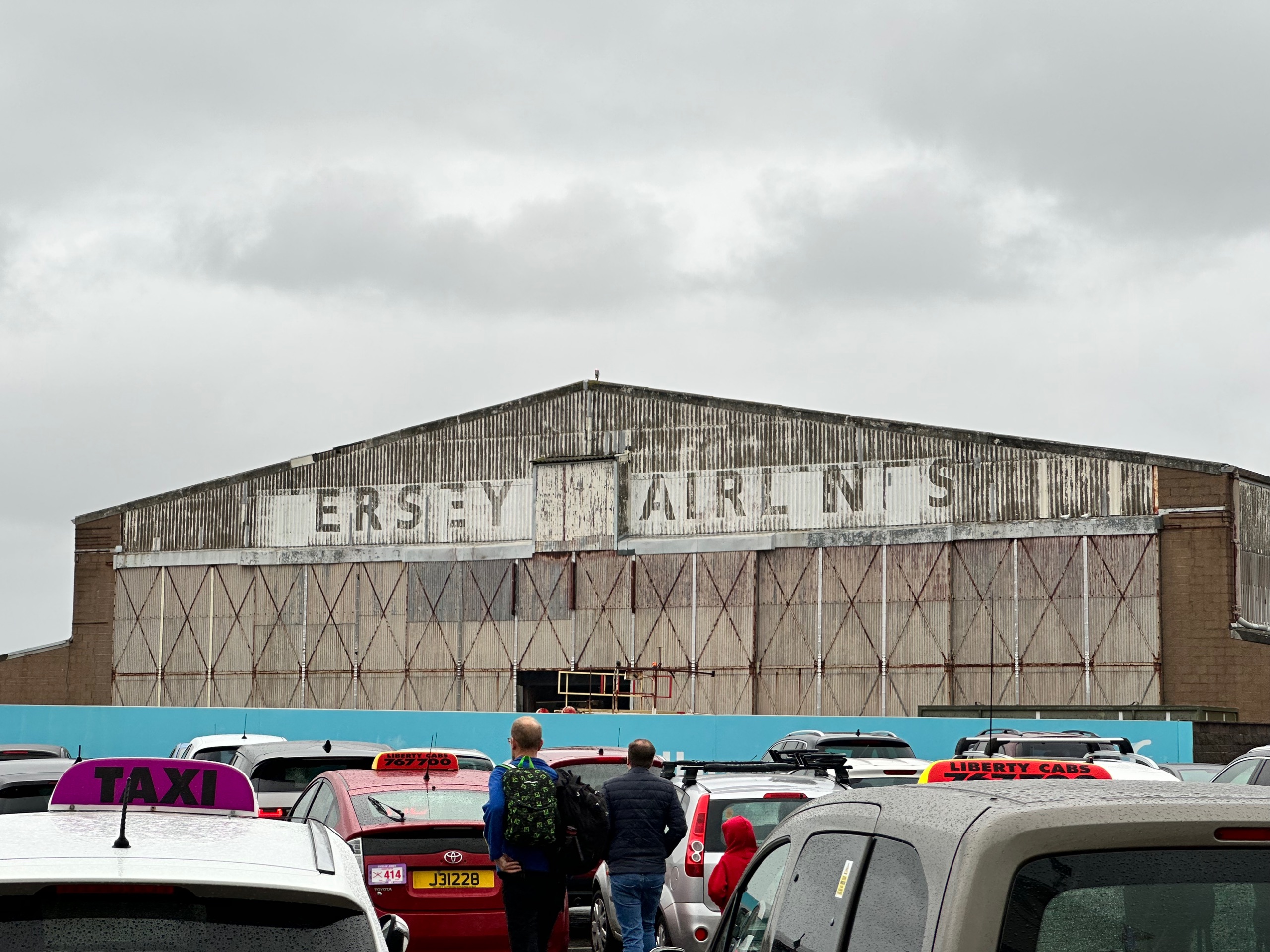 Helen, naturally, was desperate for a vape. It was indeed blowing a gale and pissing down. We took cover in an outdoor smoking area and I admired the old aircraft hangar opposite.