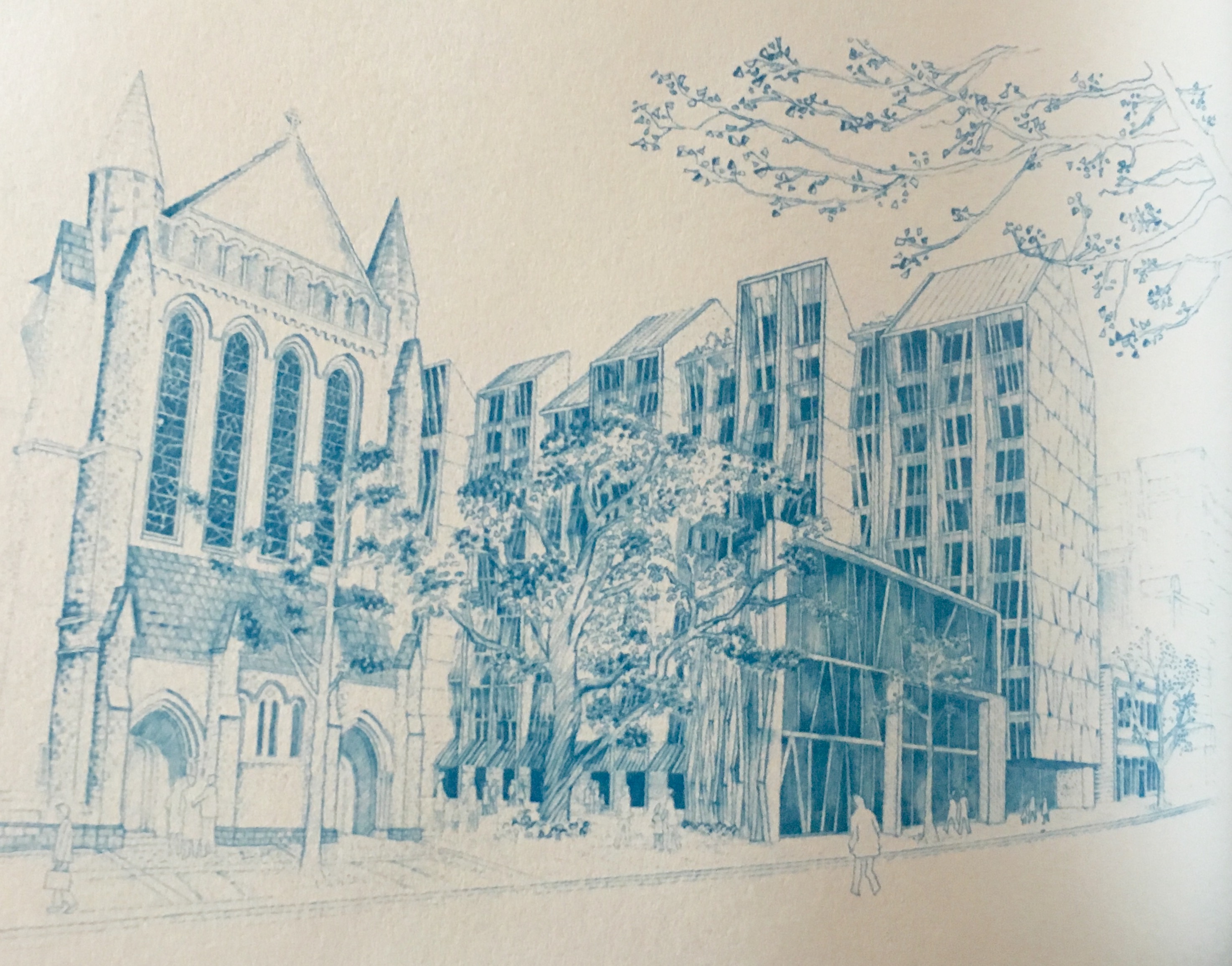 再比如,来自Steven Lawsan Architects设计的无家可归者和单亲家庭的社区住宅。这是一个名为城市使命的居住区竞赛。所处地点在奥克兰市区。文脉复杂。周围既有现代建筑还有历史建筑,一个大教堂。如何用现代手法和历史文脉呼应是这个项目最先面对的问题。当然如何创造社区,创造场所也是个问题。建筑师对这两个问题都做了很好的回答,一个是建筑形式上面的呼应,二是通过总平面设计创造场所感。