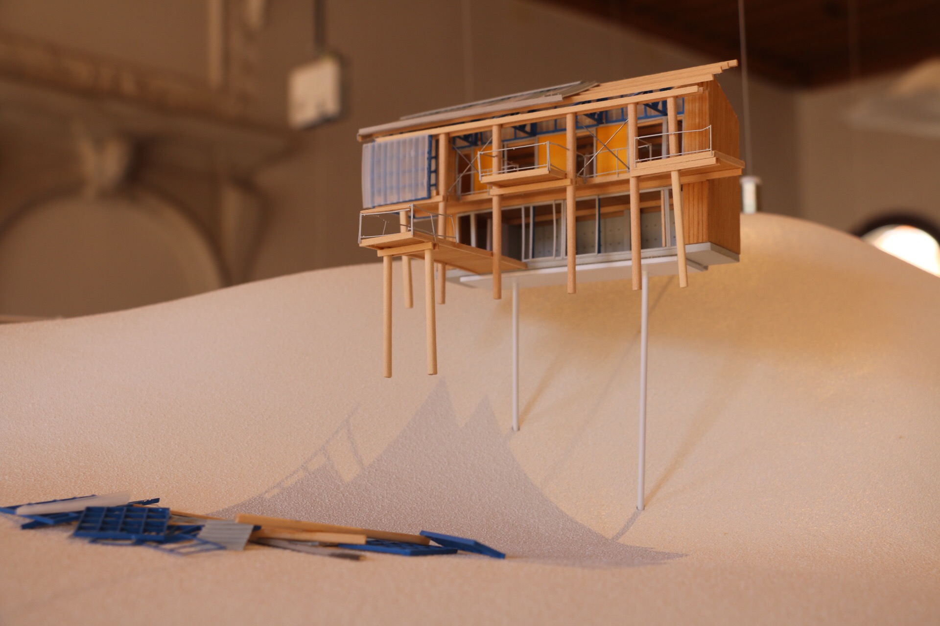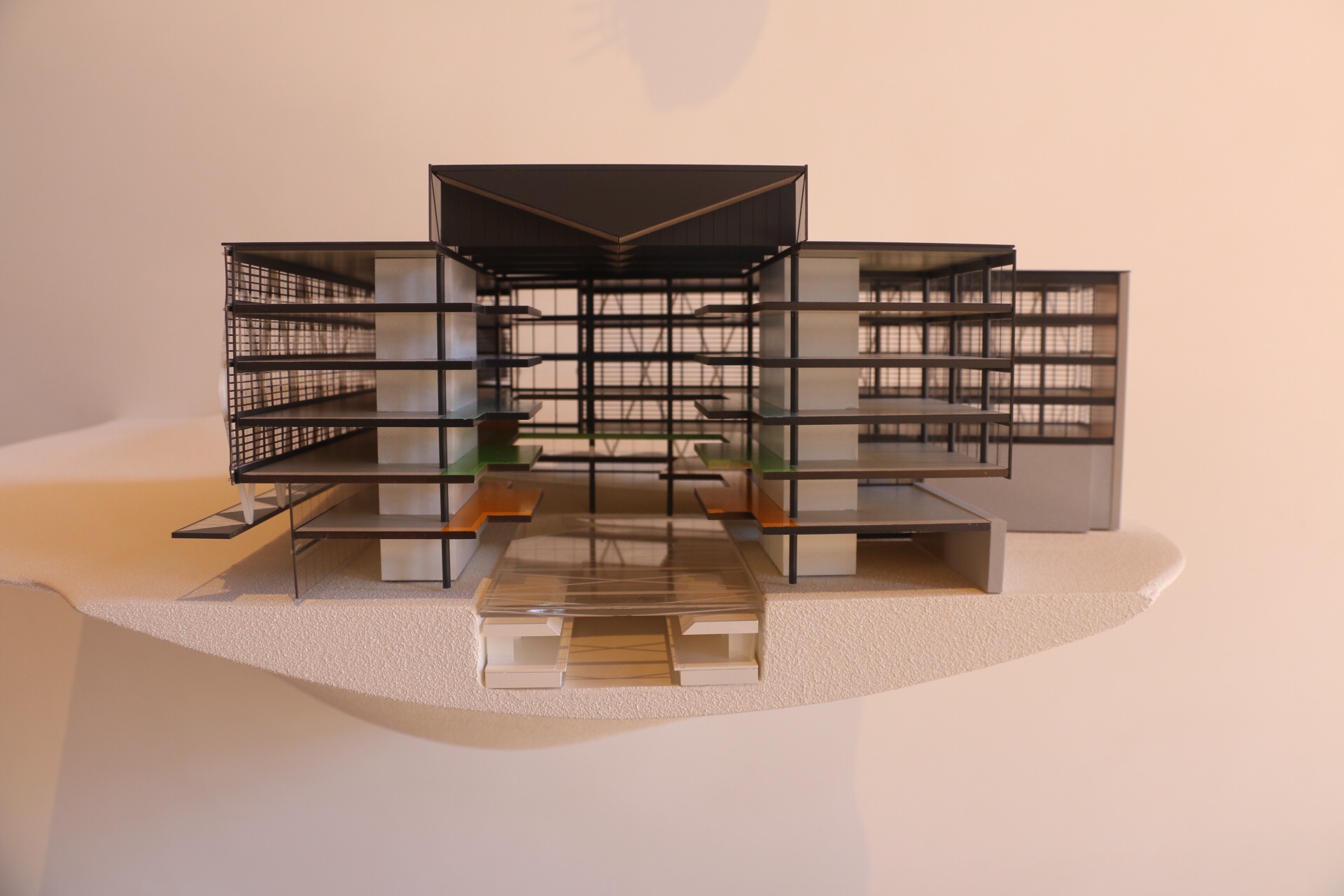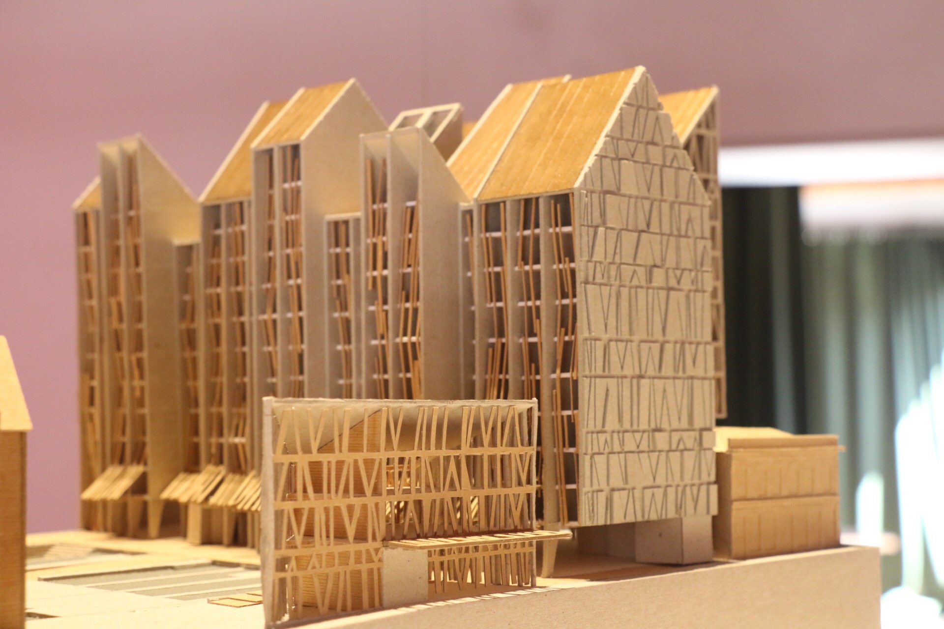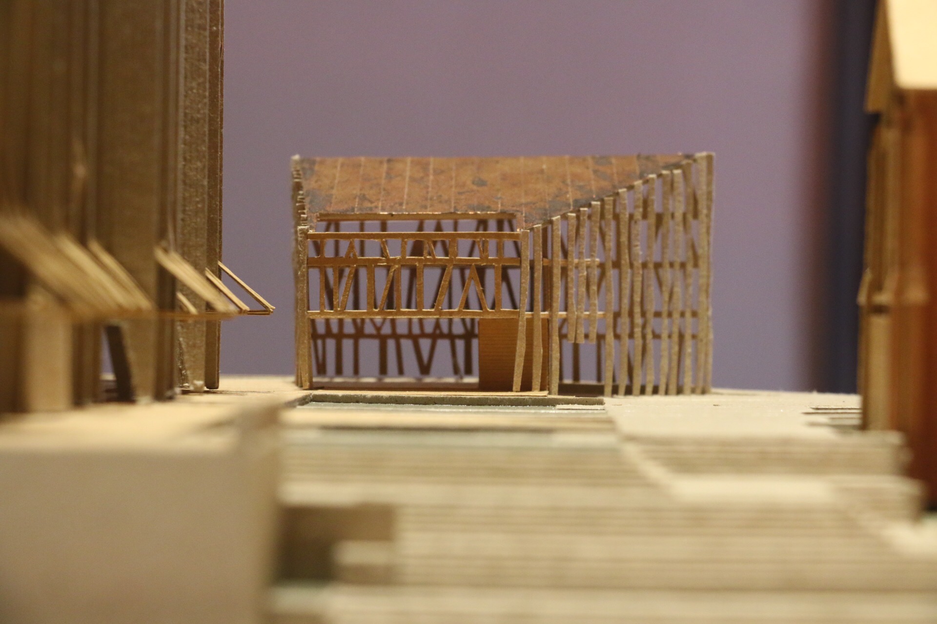 自己挖的坑要赶快填起来,这一篇我会挑几个项目进行介绍。在我当志愿者的第一天,我以为所有模型都是为了威尼斯双年展而特别制作的,其实不然。因为,我在为每一个模型拍照的时候,发现了这个模型(下图)。这个建筑模型在去年Architectus(新西兰的一个建筑设计公司)开open studio的时候(open studio就是建筑设计公司有时候会开放给建筑学生,或者建筑毕业生,会介绍公司项目,此刻是投作品集的好机会),我看到过,是他们的一个项目过程推敲模型。因此,我对于报道前沿这个大题目有了更深的理解,新西兰馆里的每一个模型原来是从“前线”搬到威尼斯来的呀!