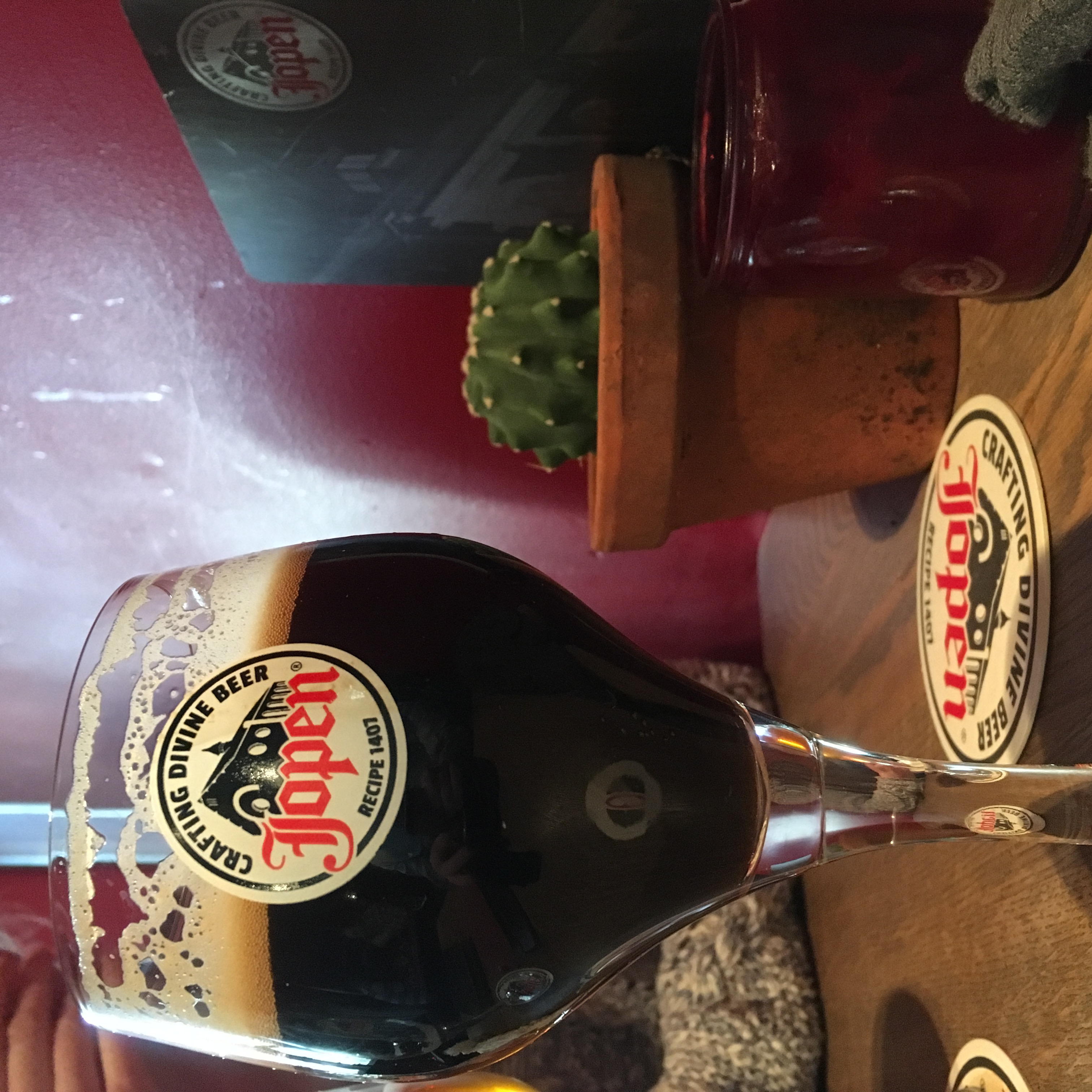 No beer, though, so we buy a Jopen Hoppen that makes me think of Dragons' Den. It's actually way nicer than it should be, to me, for a supposedly hoppy beer. But I tell you what, I am completely wiped out. The steady slow pace combined with sensible break meant I did not end the night particularly drunk, but good lord was I tired. Last thing I remember is playing word games on the iPad, next thing I know it's 3am and I feel like absolute shit. Ah crap.