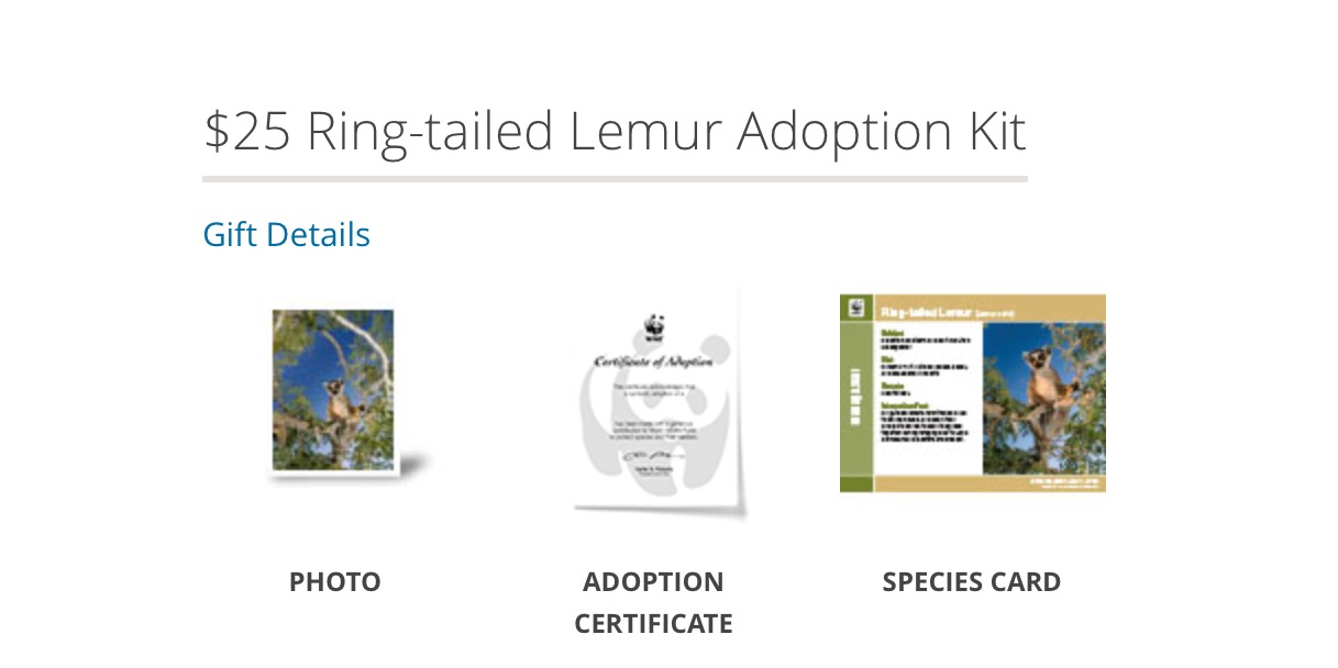 You can help by symbolically buying a lemur. The profits will be used to further WWF's efforts to protect the ting-tailed lemur. The amount contributed can be $25, $55, and $100 and all the packages come with small gifts.