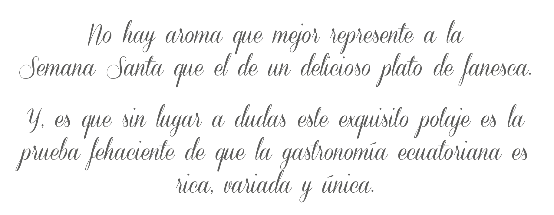 No obstante, más allá de la religión, la fanesca responde también a un tema de identidad. Se trata de un plato cien por ciento ecuatoriano que cada año congrega a familias enteras para ser parte del ritual de preparación. La fanesca conjuga ingredientes de Costa y Sierra; y, aunque con pequeñas variaciones, es preparada en todas las regiones del país.