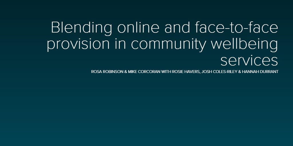 The Covid-19 pandemic changed how people interact, amplified the role of digital technology, and increased demand for community-based services that enhance wellbeing, for example by providing support and enabling social connection. (By 'community-based services', we mean those provided by public and third sector organisations working with specific place-based communities and/or with groups that may be more geographically dispersed but that share interests or experiences in common.) It also highlighted inequalities in access to support, showing that some people rely on face-to-face services while others can only access services online. Blended service provision – by which we mean the deliberate integration of face-to-face and online delivery – was increasingly presented as an equitable solution, but little was known about what blended provision might mean in practice. This project aimed to find out more from organisations and practitioners about this, to understand what is working well in blending online and offline approaches and reflect on how decision-makers and funders could support this to ensure that future provision is as effective, accessible, and equitable as possible.