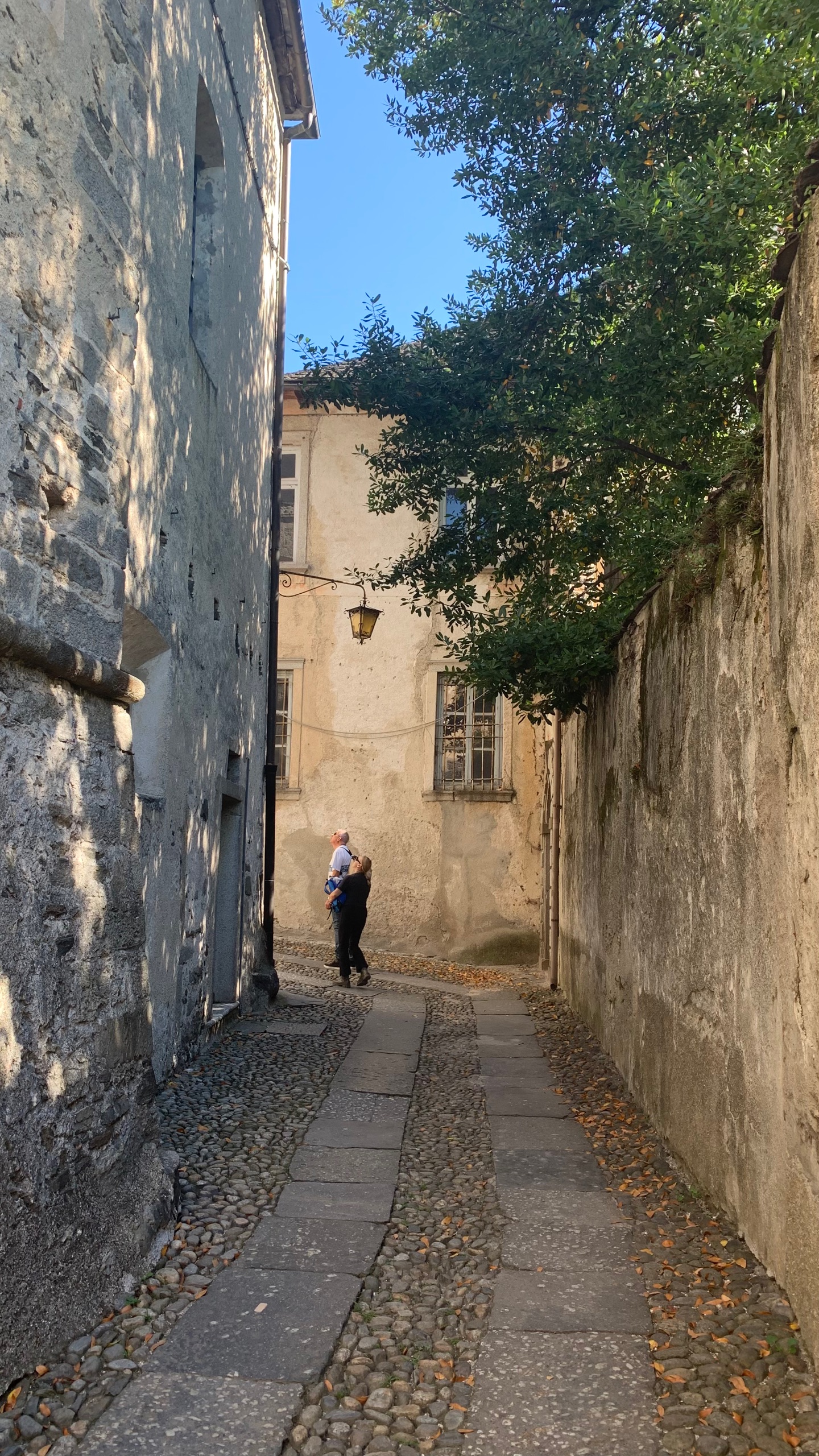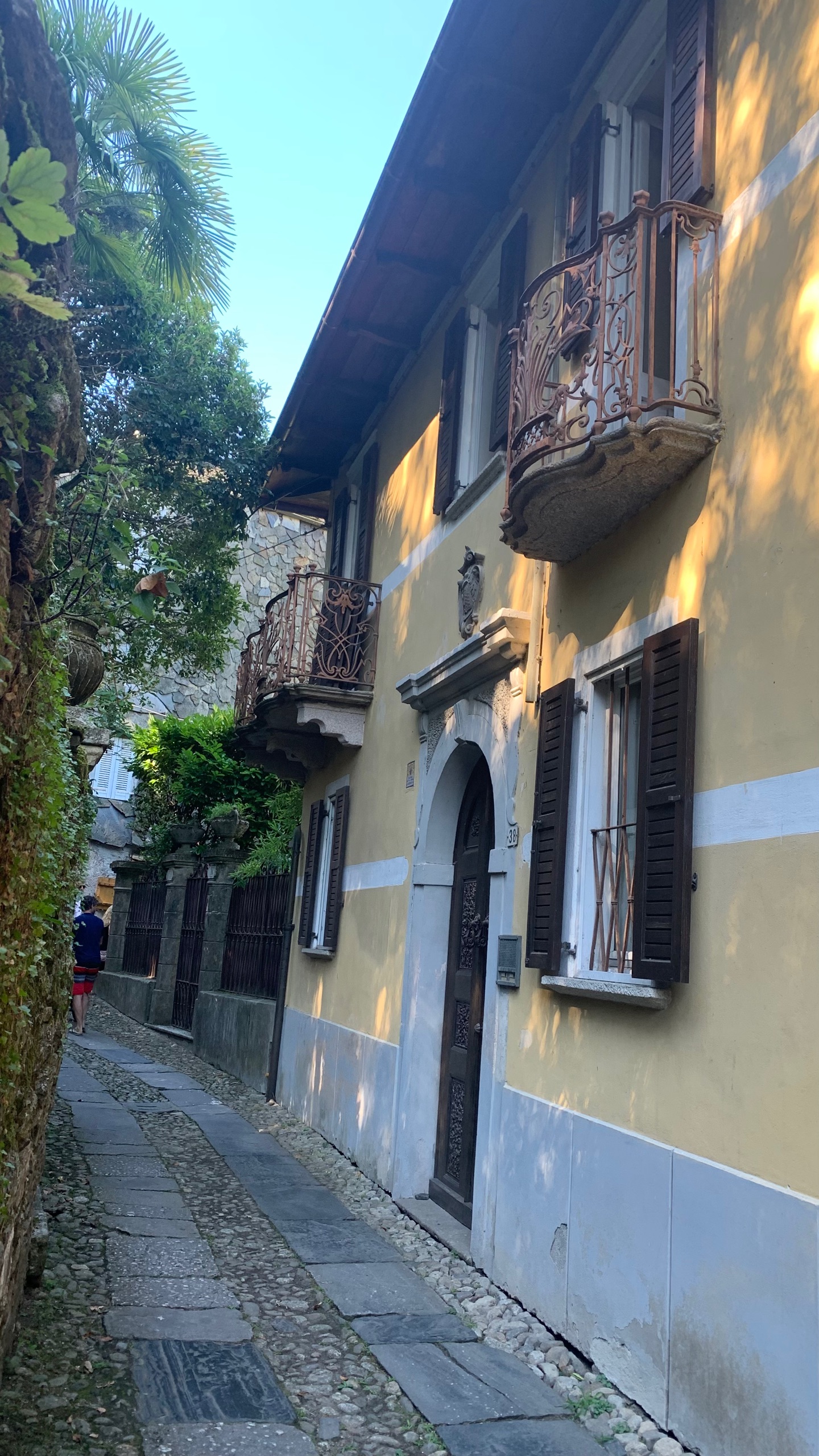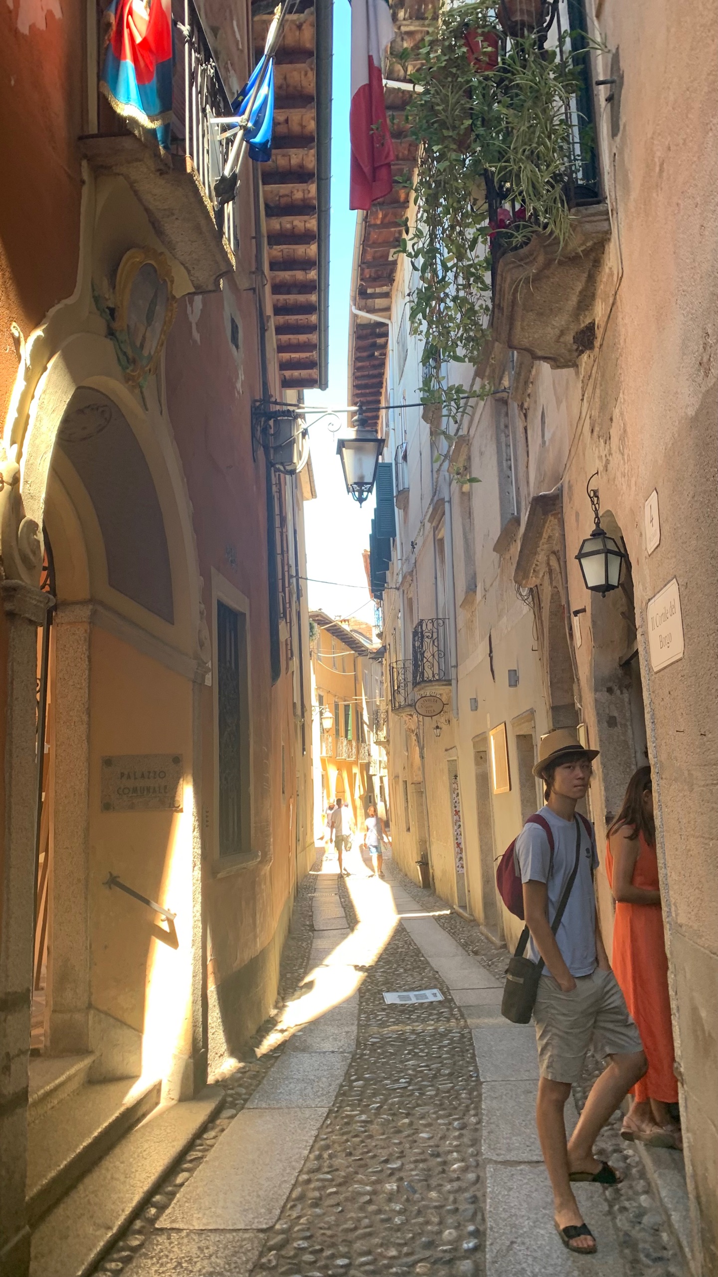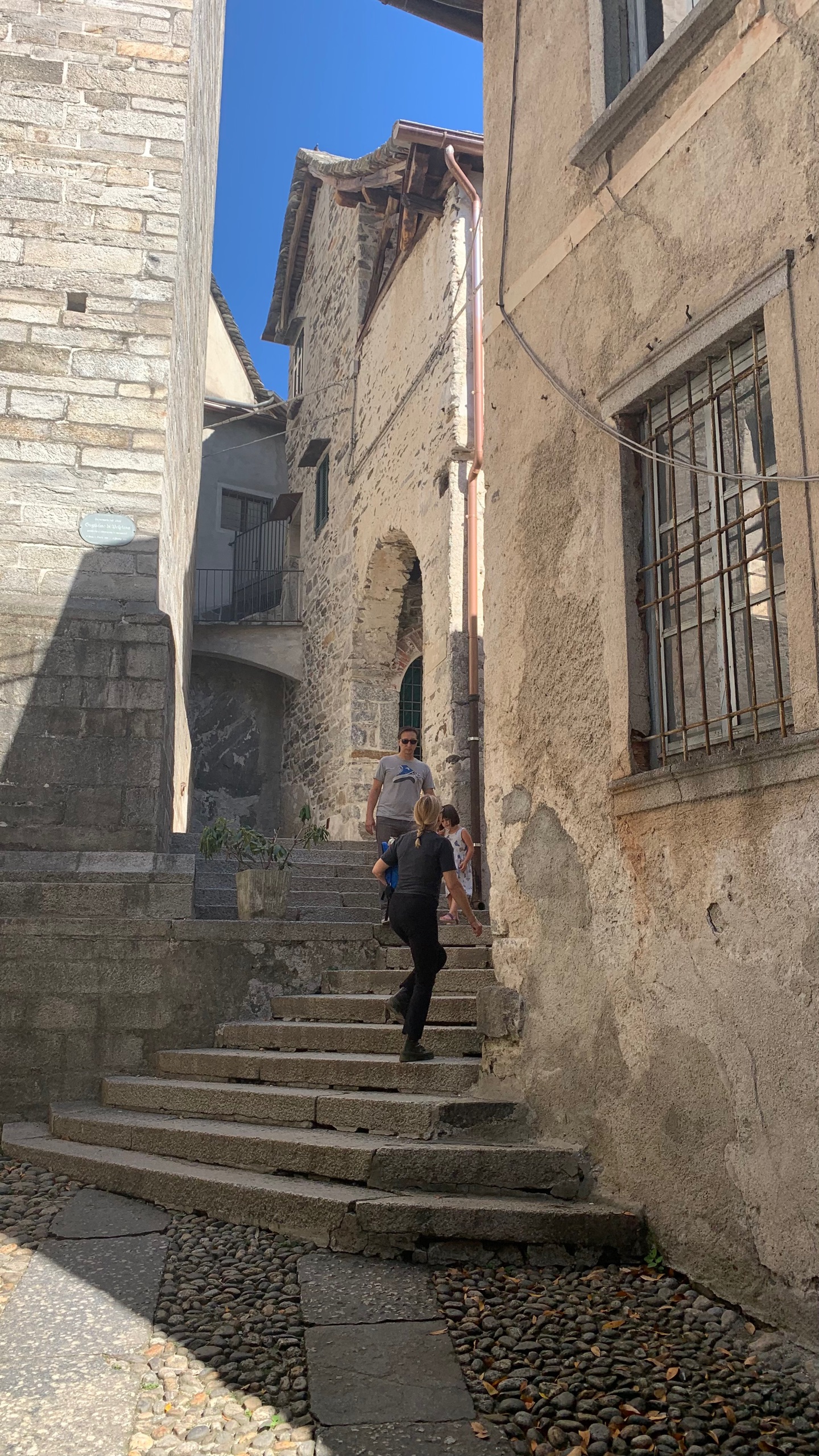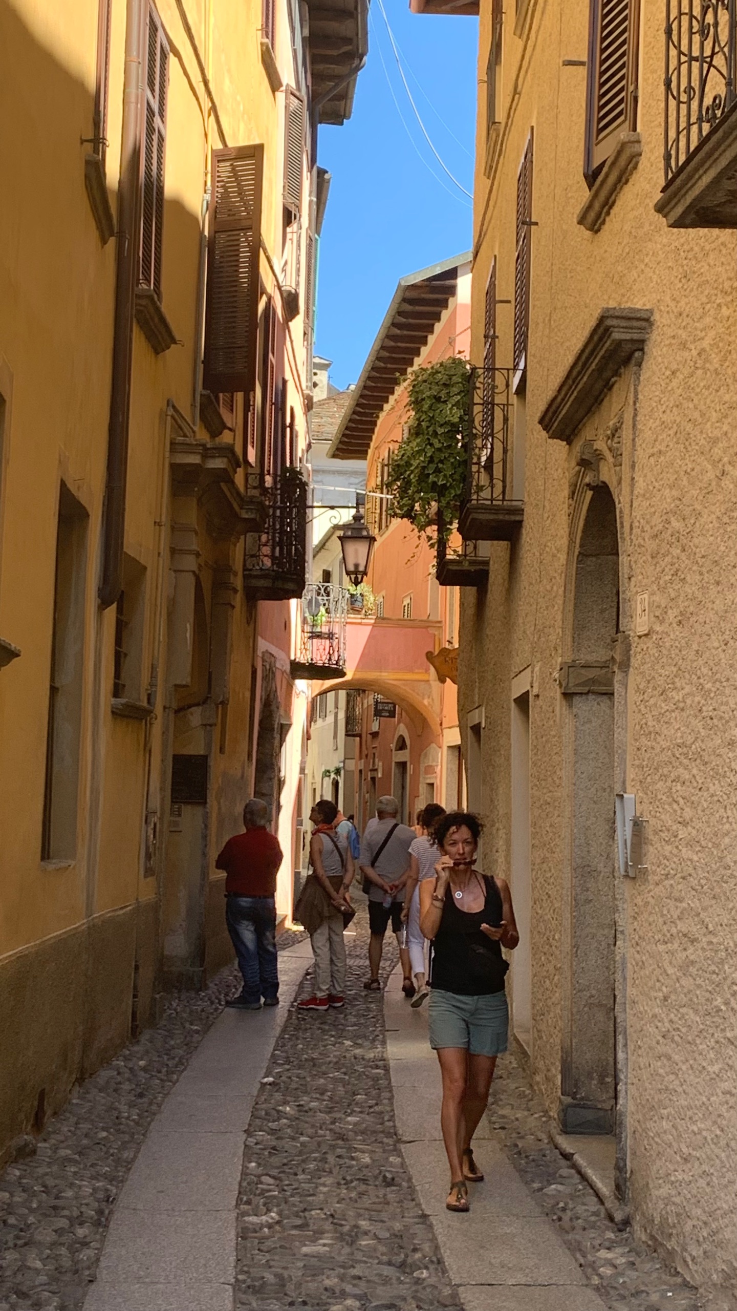 Als we het bekeken hebben stappen we op de boot naar Orta. Precies aan de overkant van het meer. Een gezellig plaatsje met heel smalle straatjes en leuke terrasjes en winkeltjes. Als we uitgekeken zijn stappen we weer op de boot naar ons beginpunt. San Filiberto. Hier staan we vlakbij met de camper. Het mooie heldere water van het meer lokt. Dus ook nog even een frisse duik.