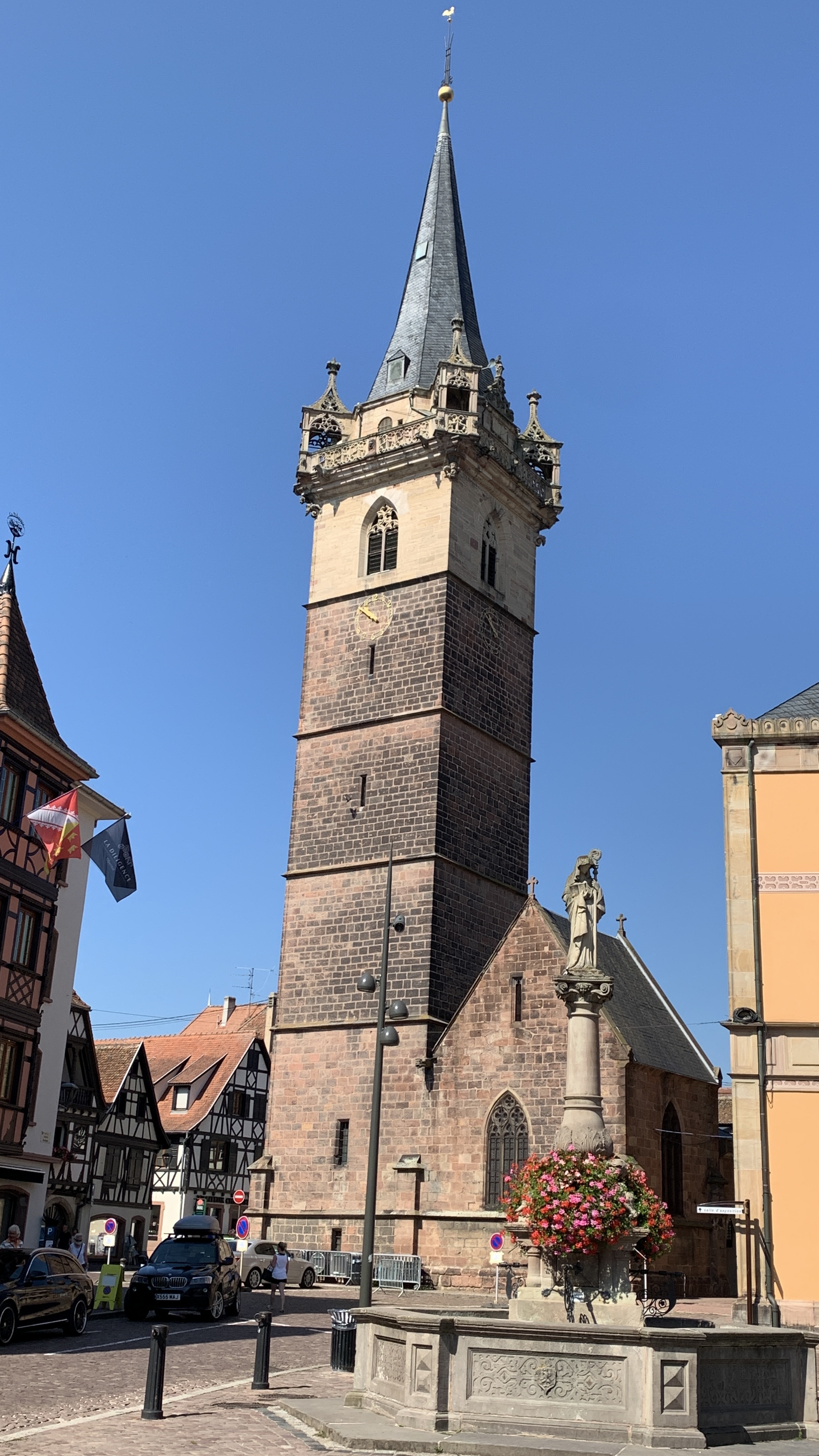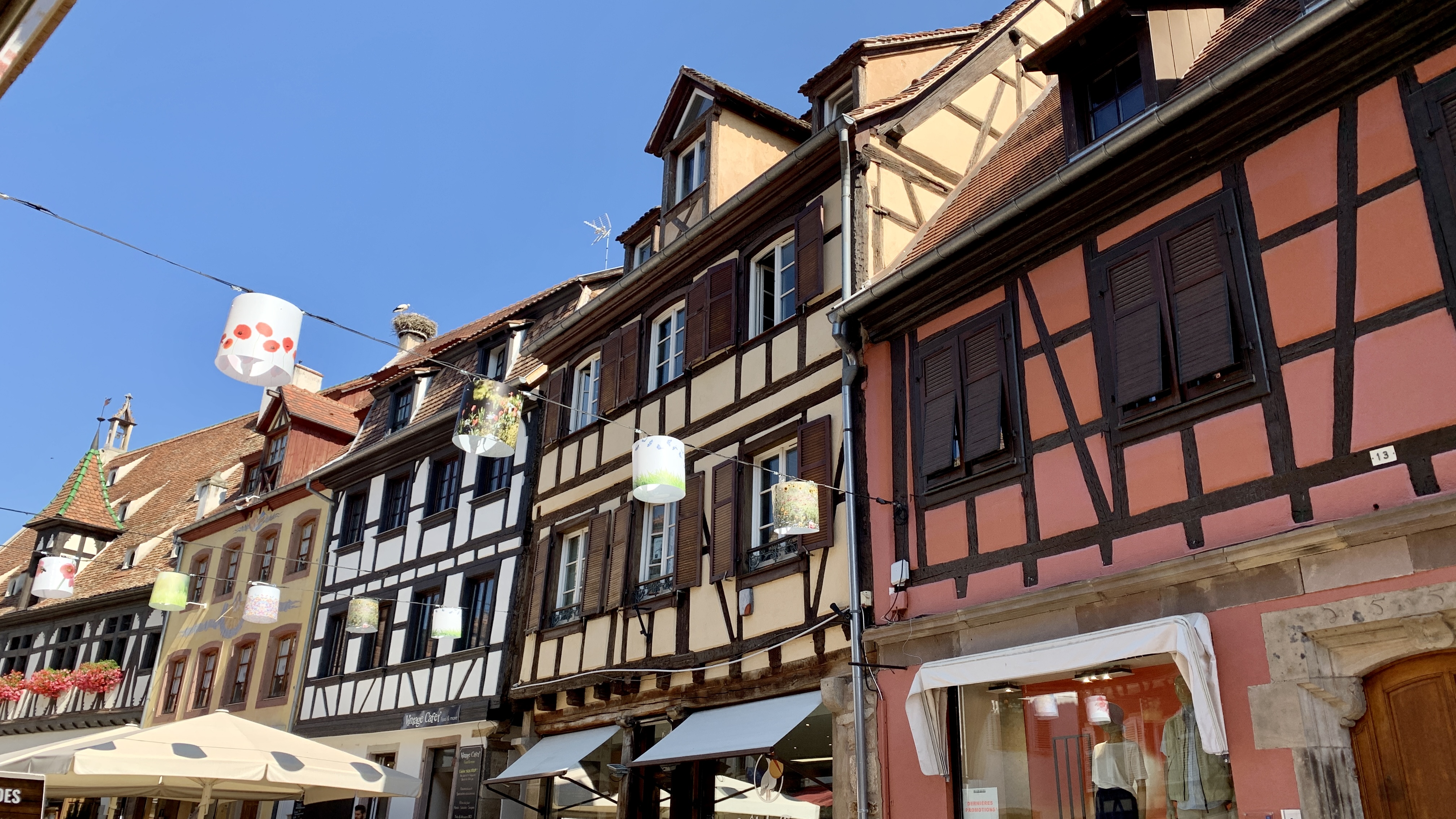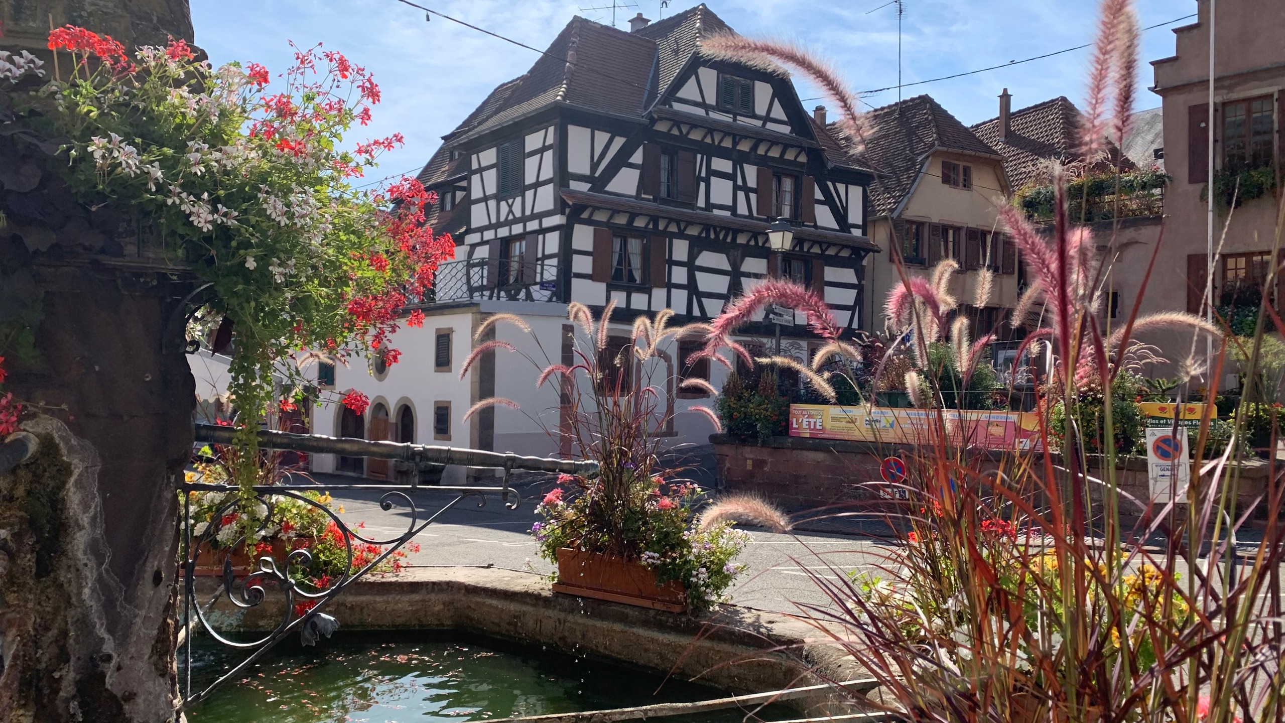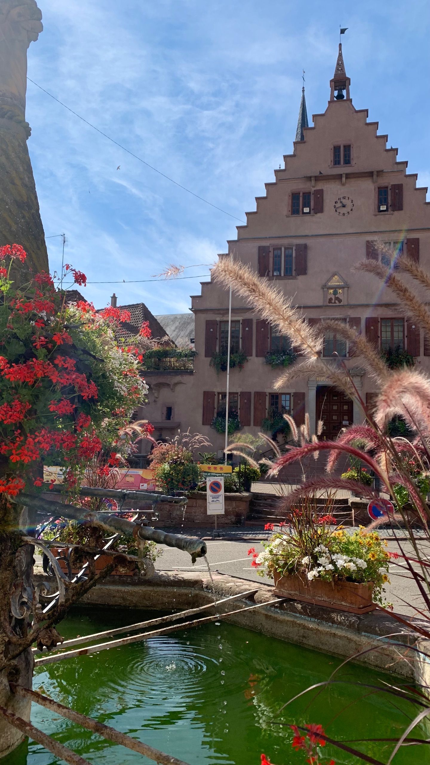 Na een fijne rustige nacht stappen we op de fiets naar Dambach. Ook weer zo’n prachtig Elzas plaatsje.