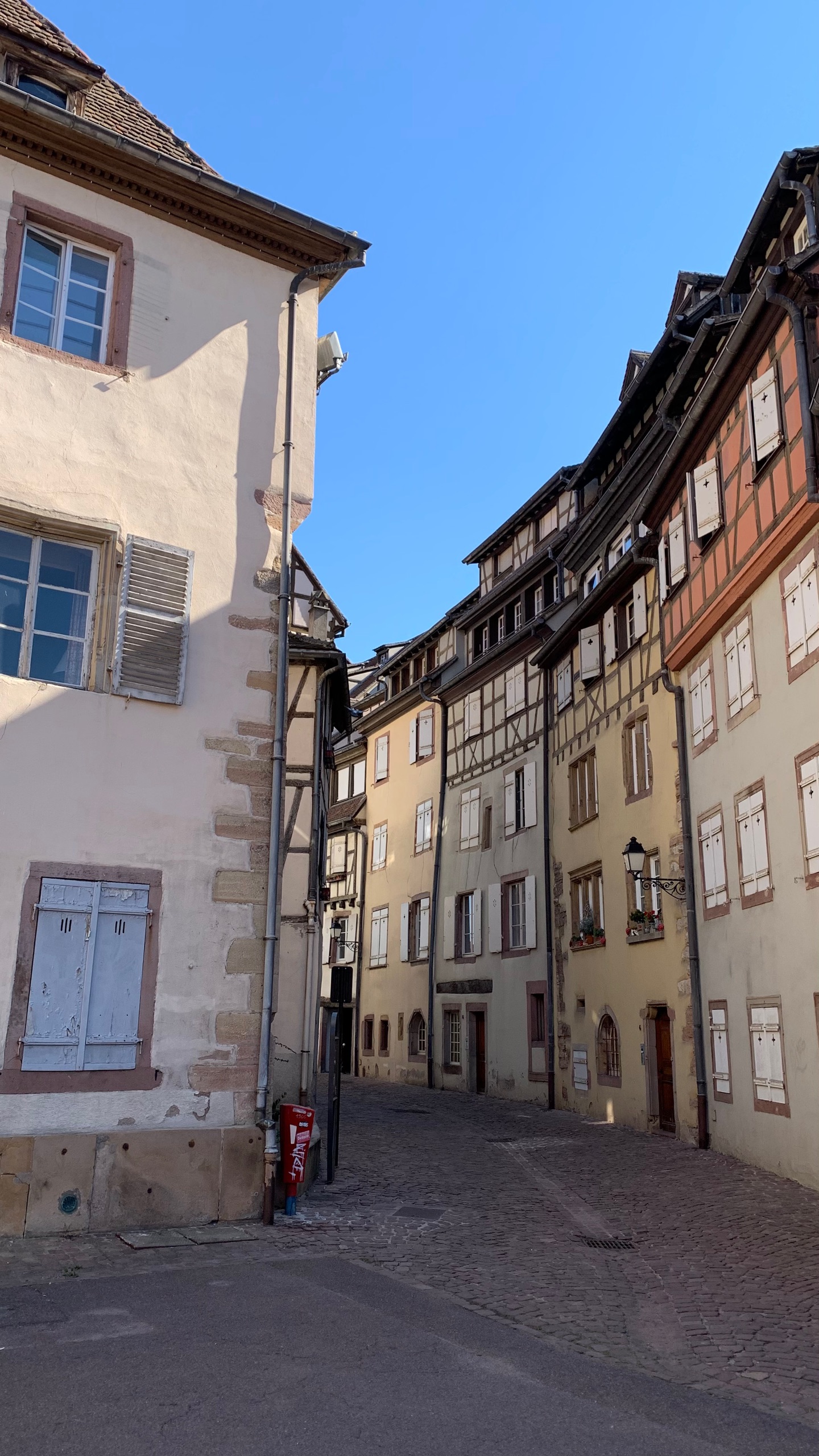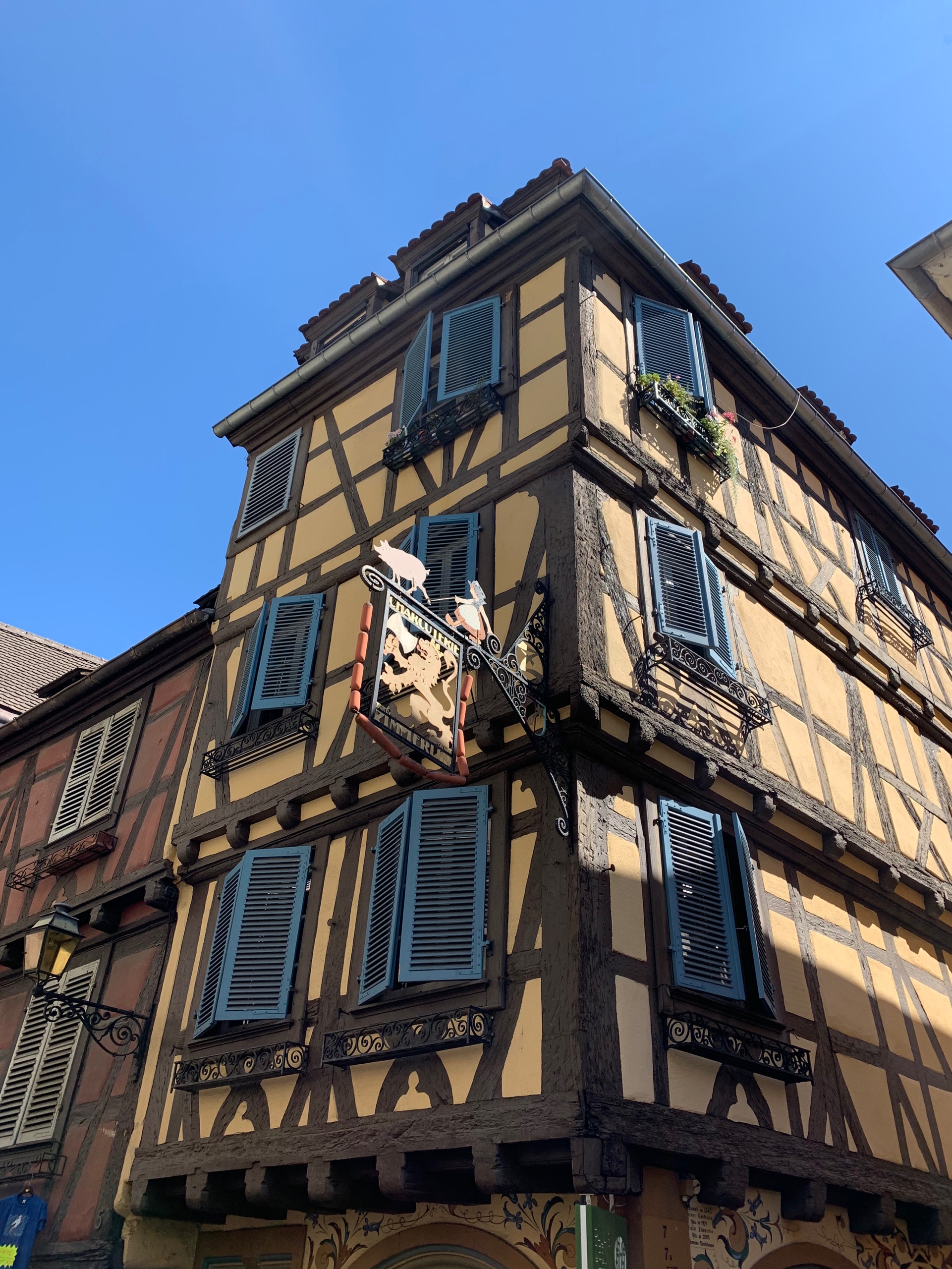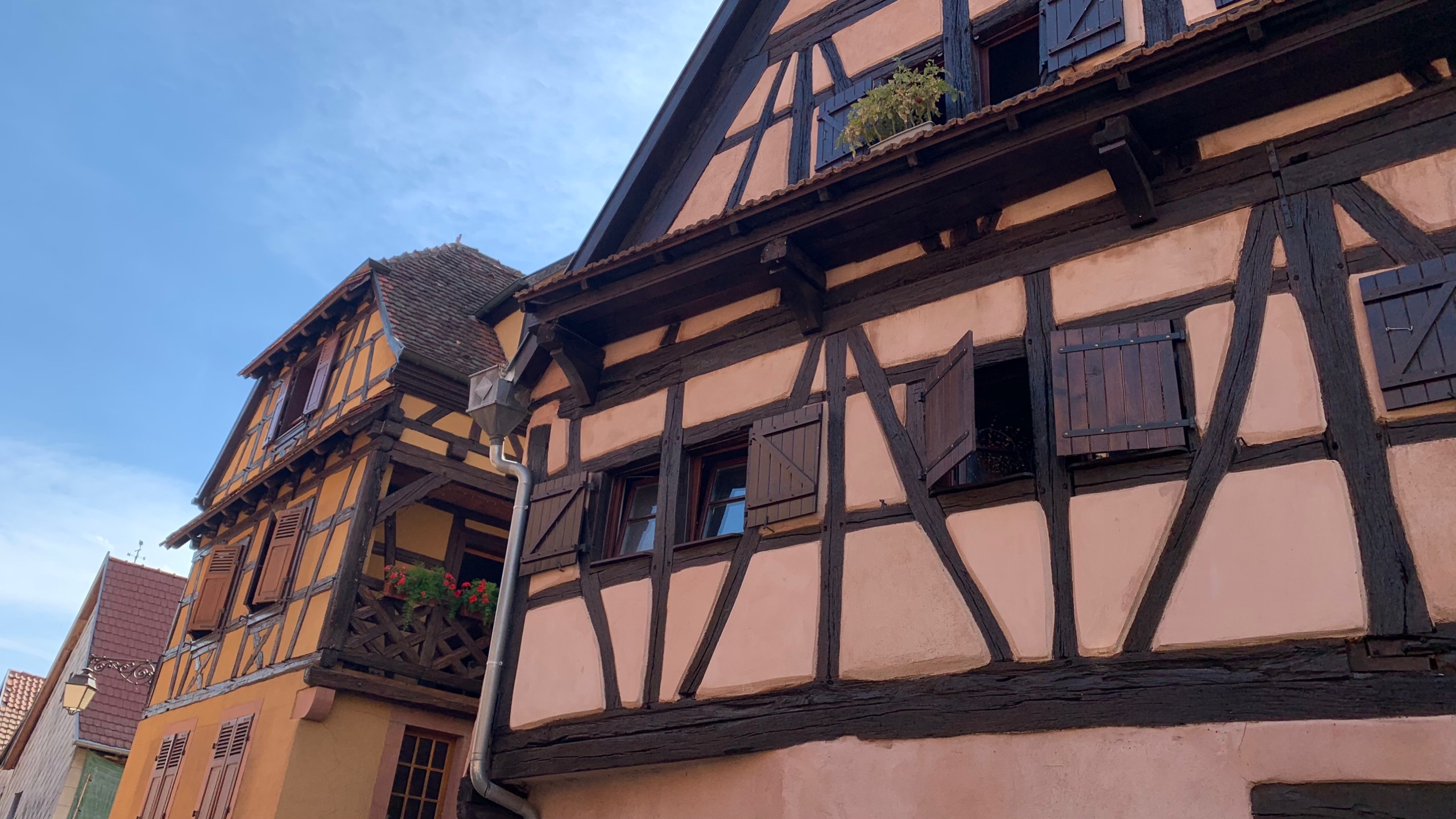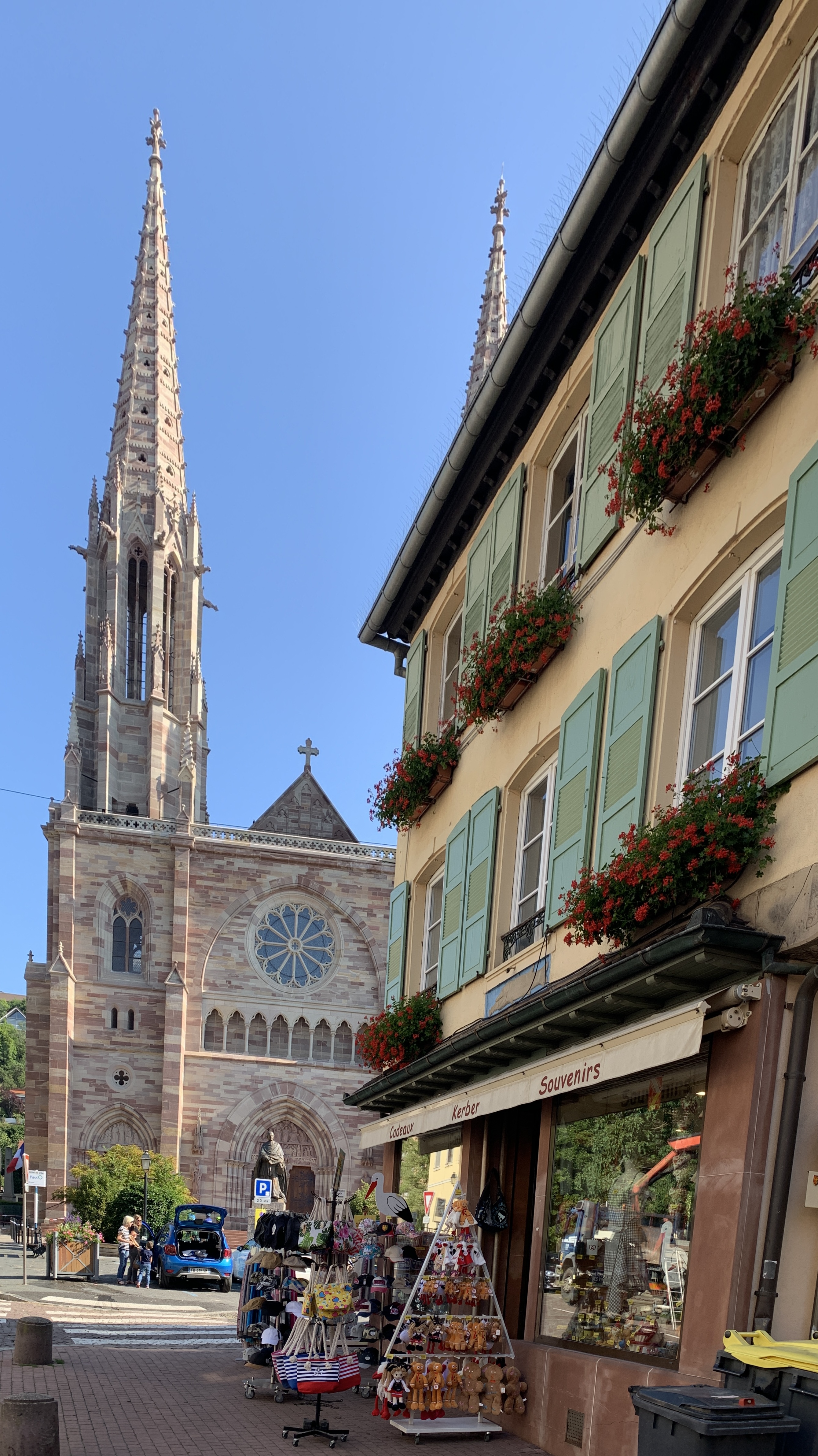 Na een fijne rustige nacht stappen we op de fiets naar Dambach. Ook weer zo’n prachtig Elzas plaatsje.