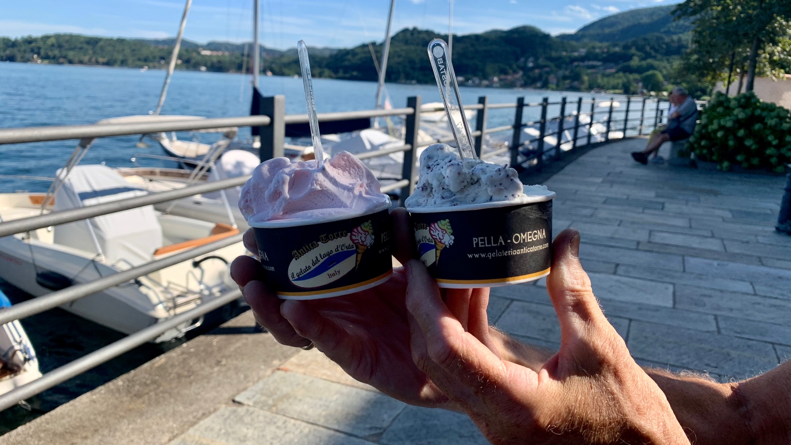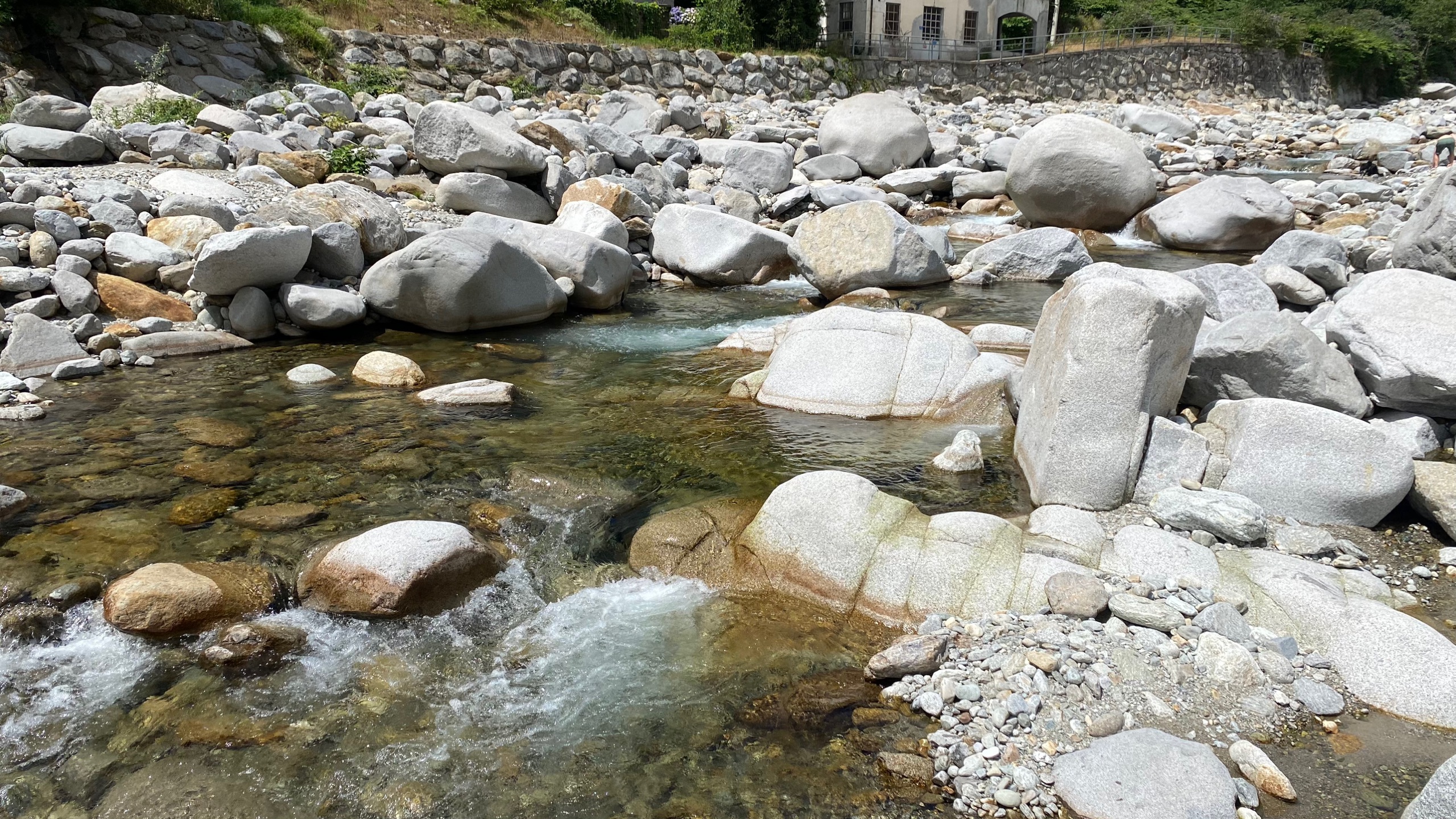 Hiervandaan maken we een route doir de bergen en uiteindelijk naar Pella aan het lago di Orta. Een deel van de route die we hadden bedacht is afgesloten vanwege een auto-ralley. We moeten dus dezelfde weg terug. Maar dat us geen straf. Het is een mooie route langs de rivier. We vinden een plek waar we kunnen parkeren en genieten van de prachtige omgeving. En van het lekkere koele water.