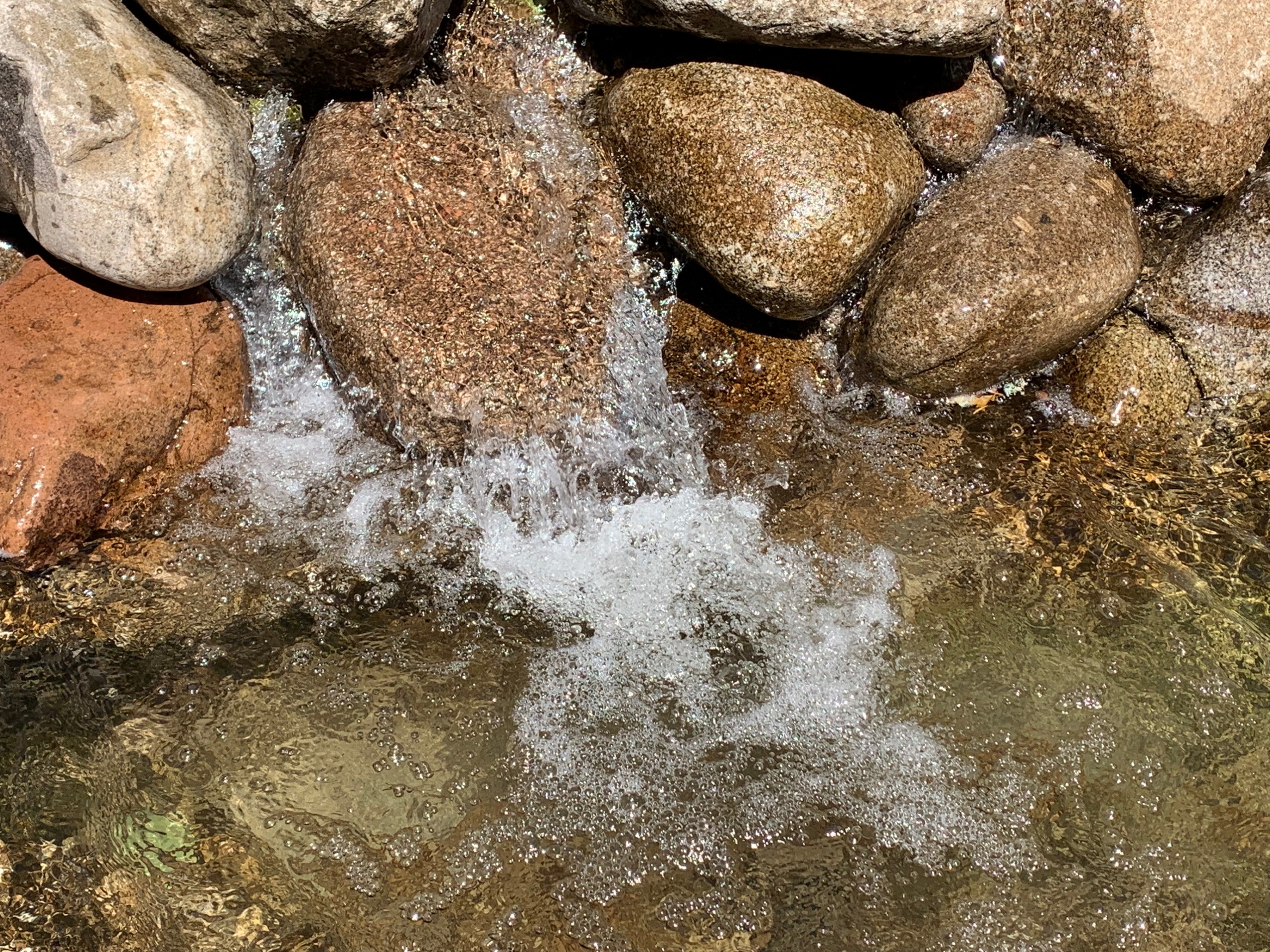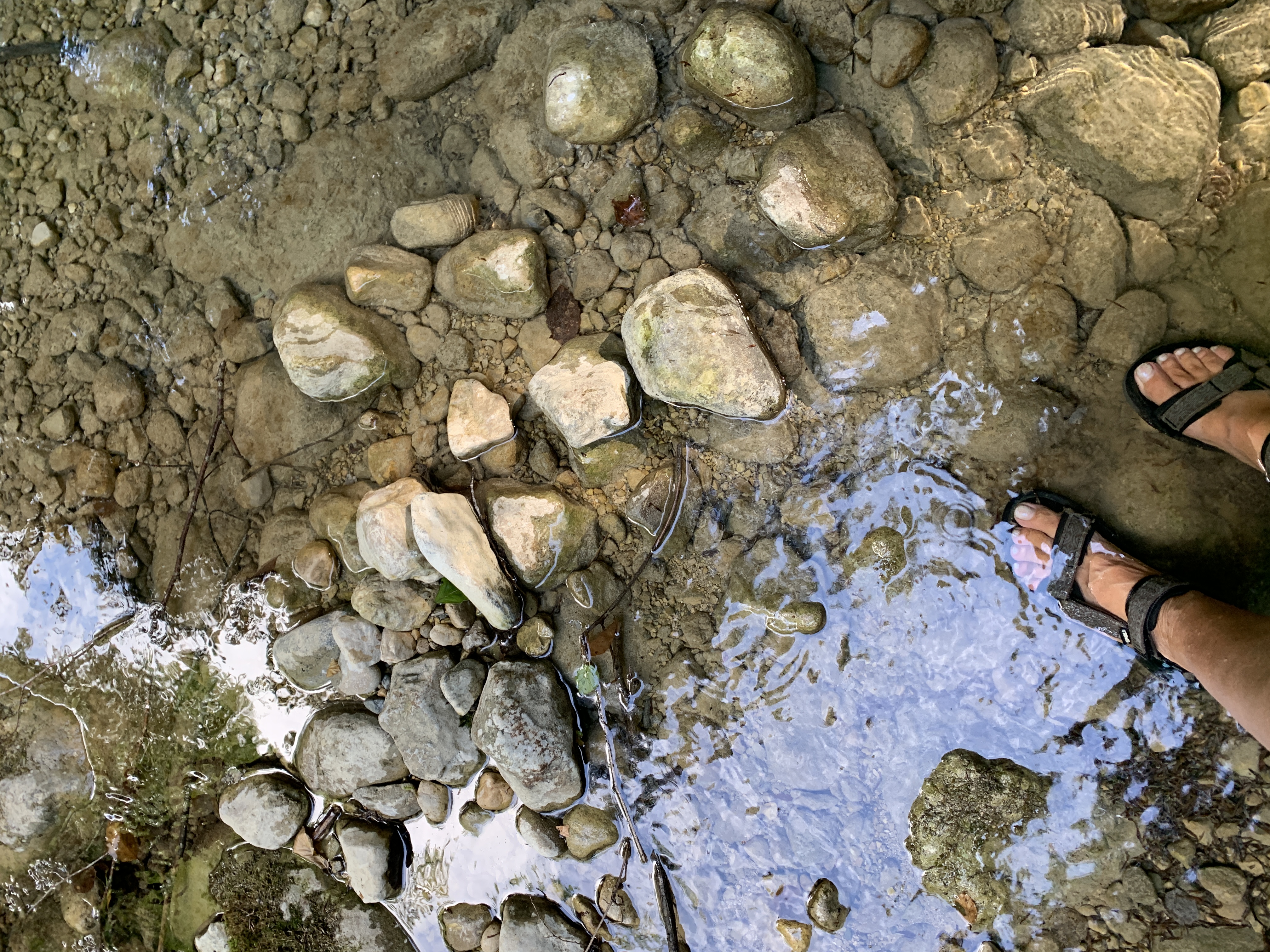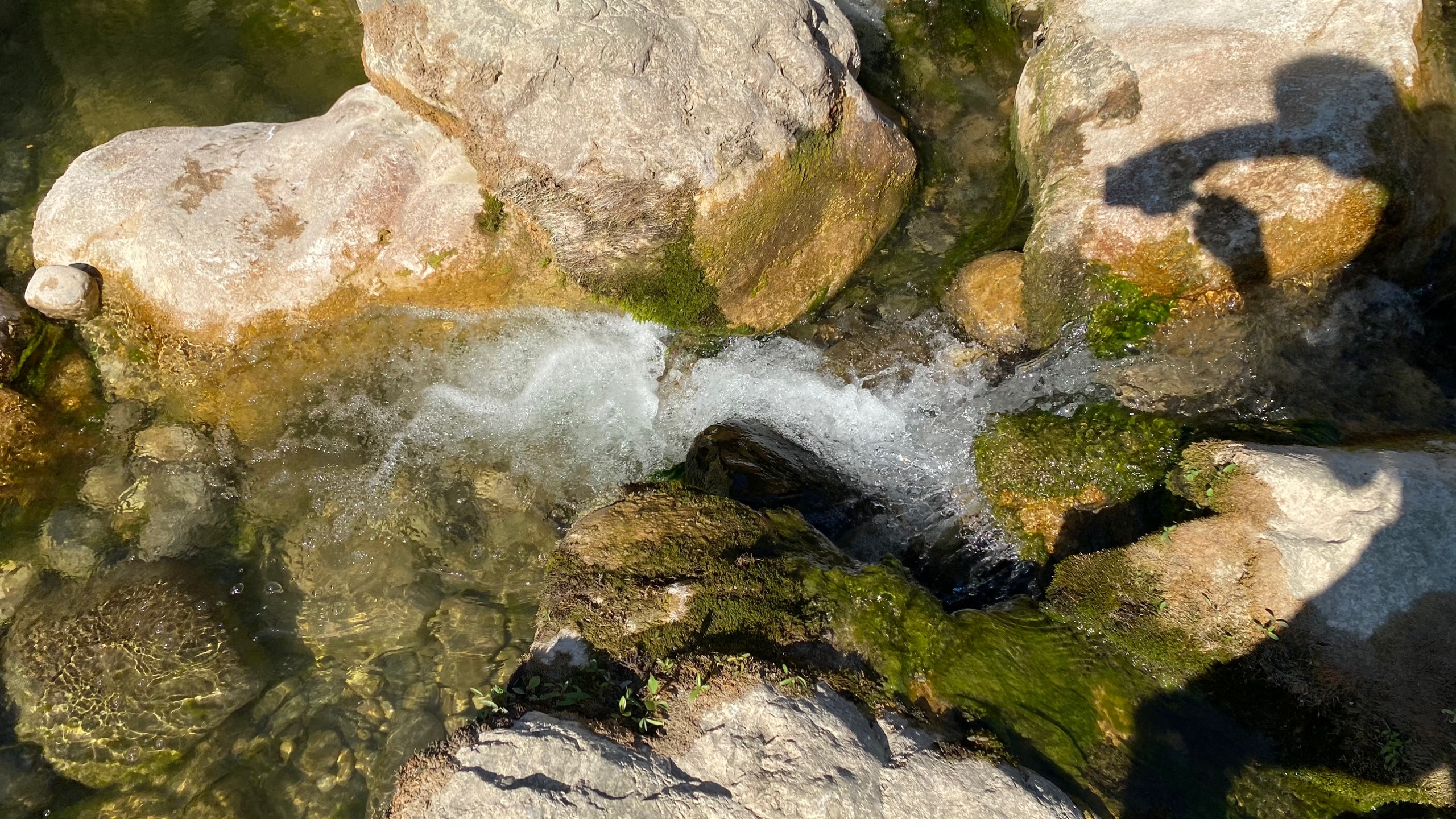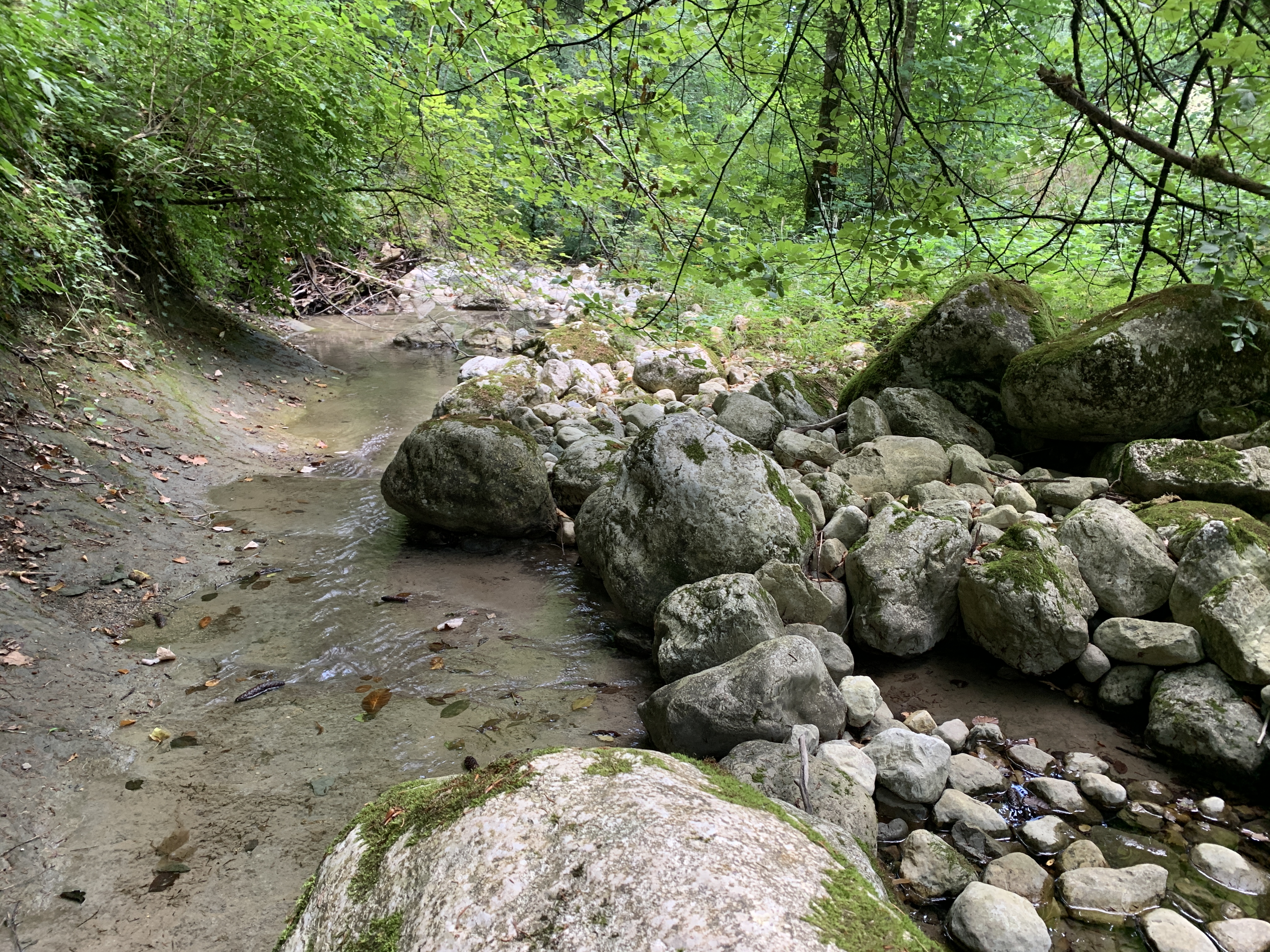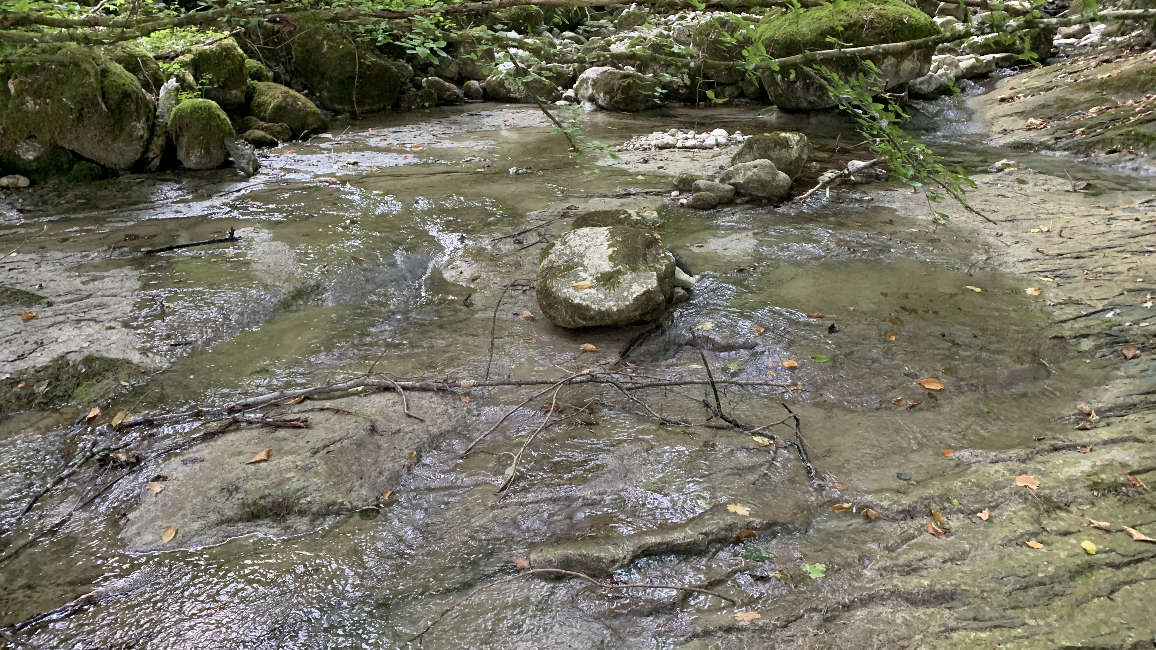 Vanmorgen is het een stuk koeler dan gister. We maken er dankbaar gebruik van en maken een wandeling naar een riviertje in de buurt. De Sezzier. Het is er mooi. Het riviertje kabbelt rustig over de rotsen. Je kunt er heerlijk pootje baden. Er zijn stroomversnellingen en verderop grote gladde rotsen waar in je verbeelding heel veel water tussendoor kan stromen.