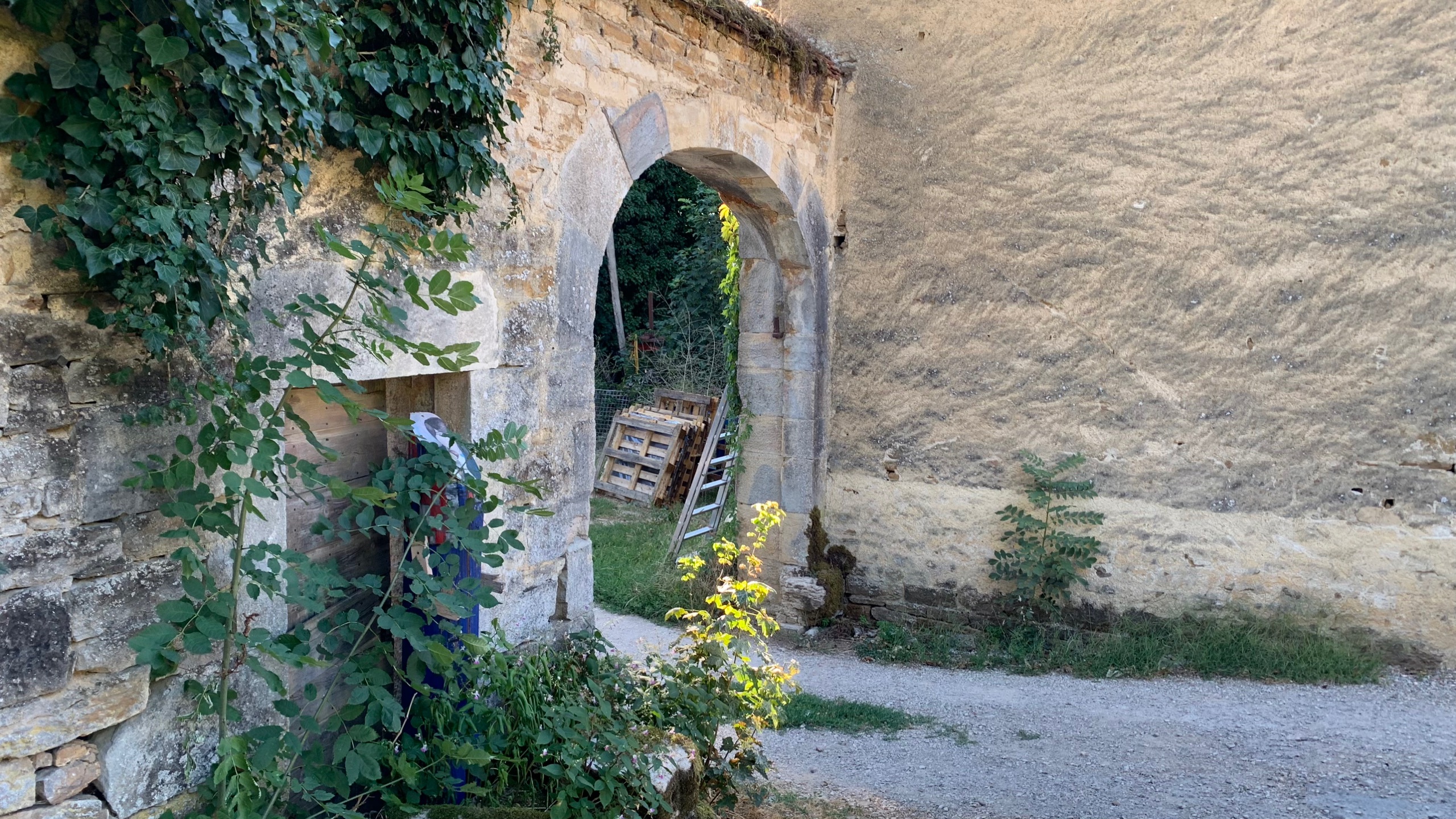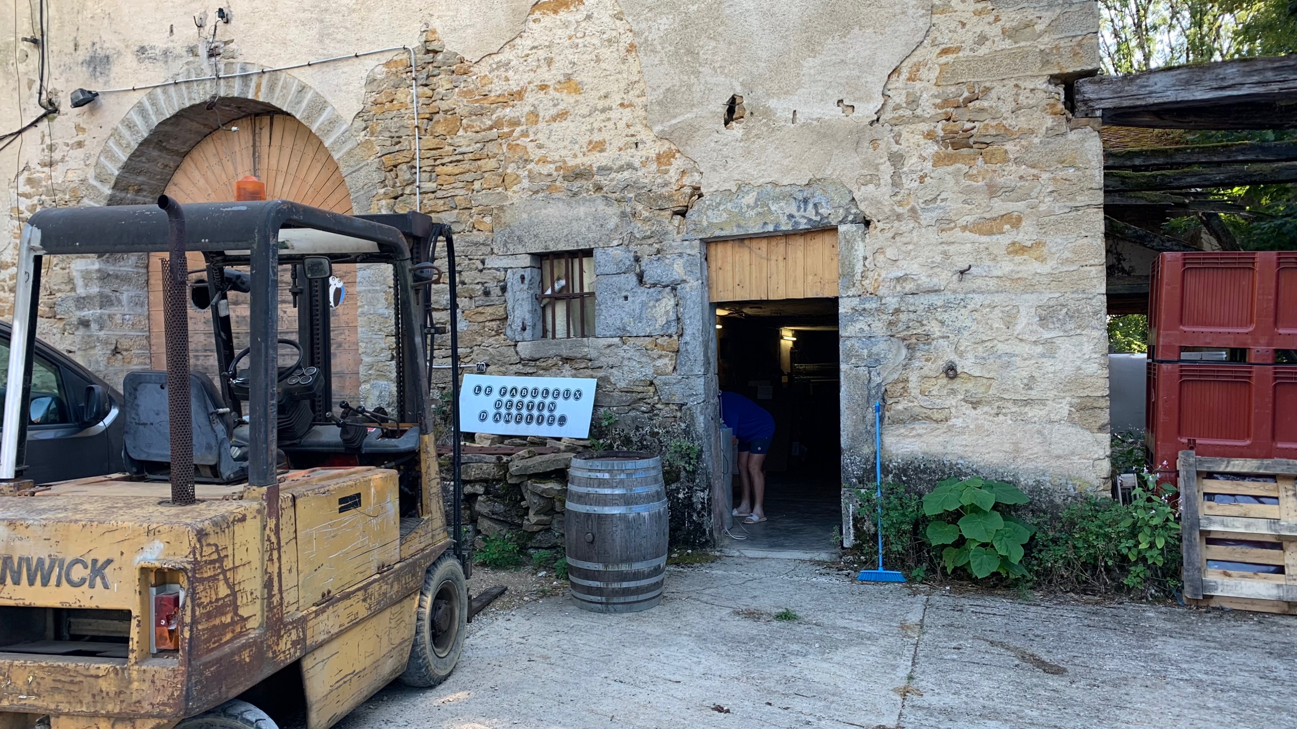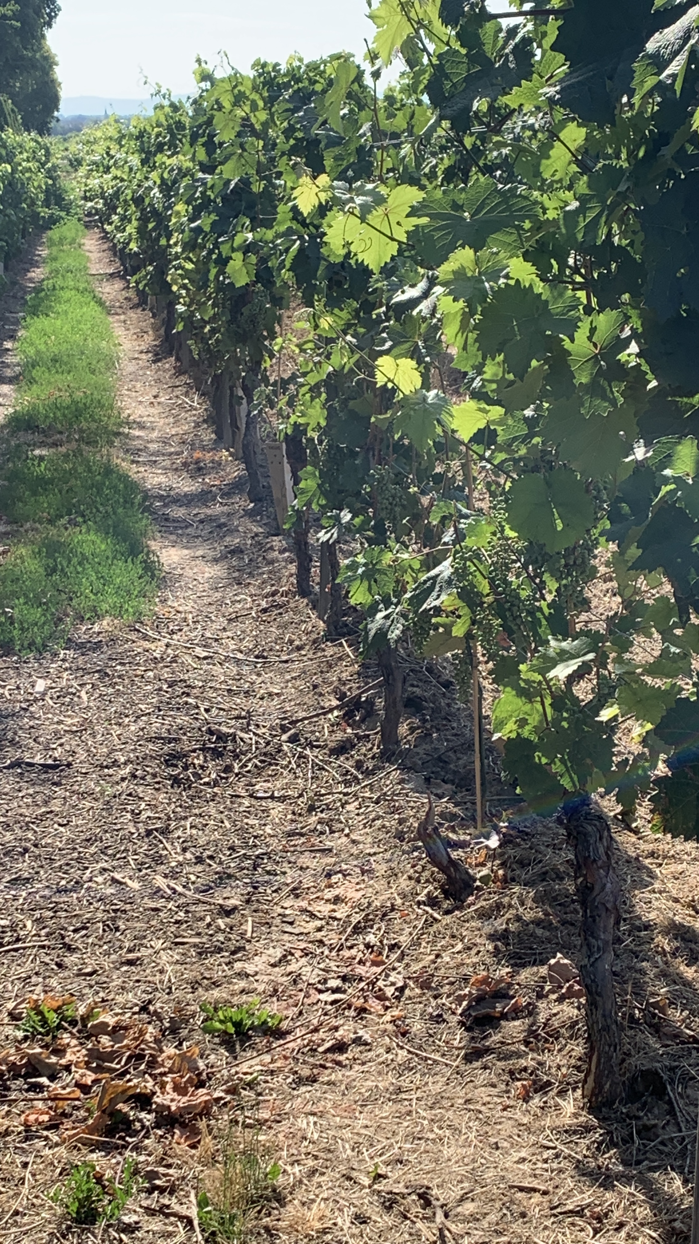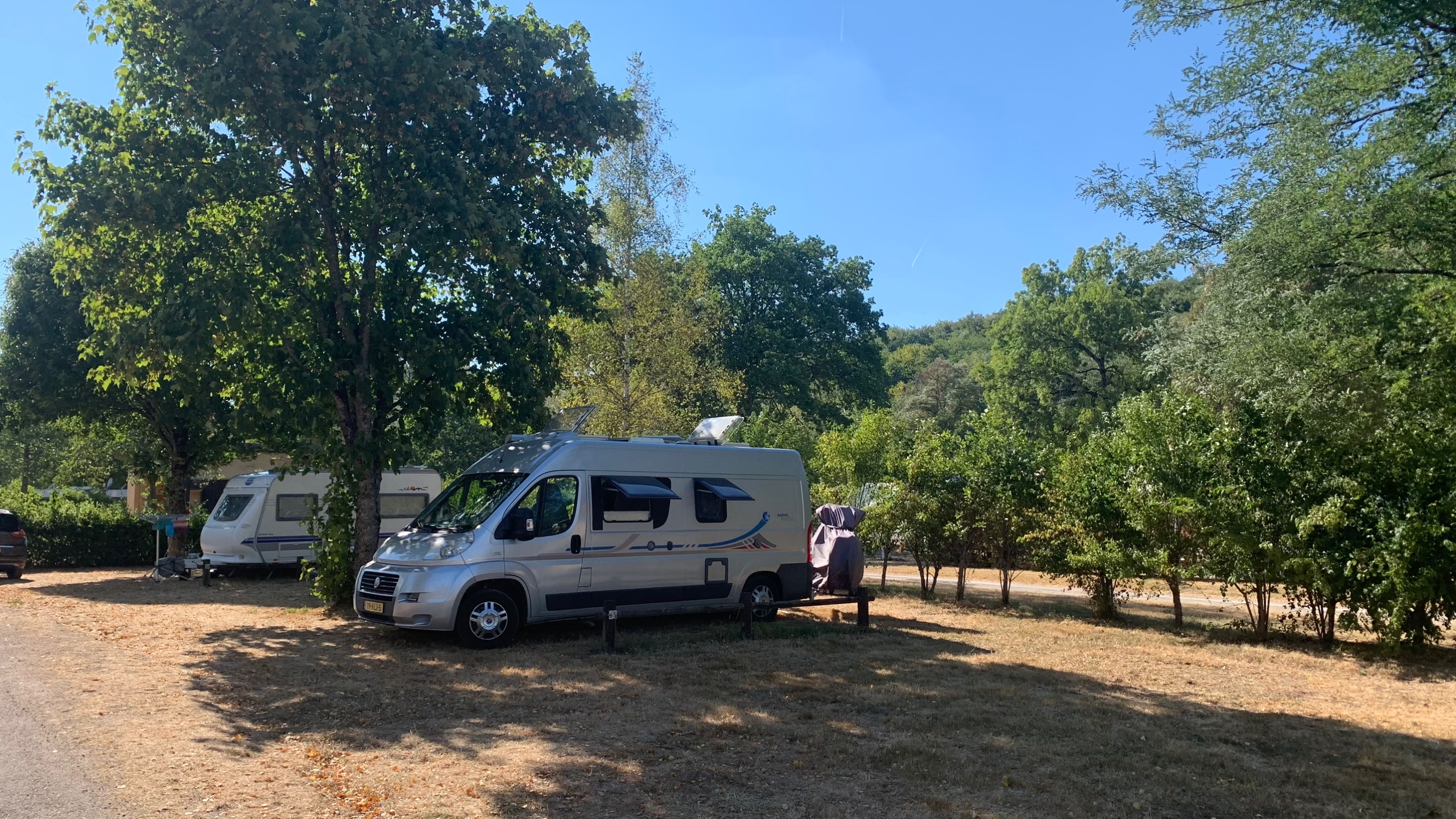Uiteindelijk vinden we een overnachtingsplek bij een heel oud wijndomein. Oud qua gebouw dan. Een prima plekje met schaduw in Molamboz. Een France Passion plek.