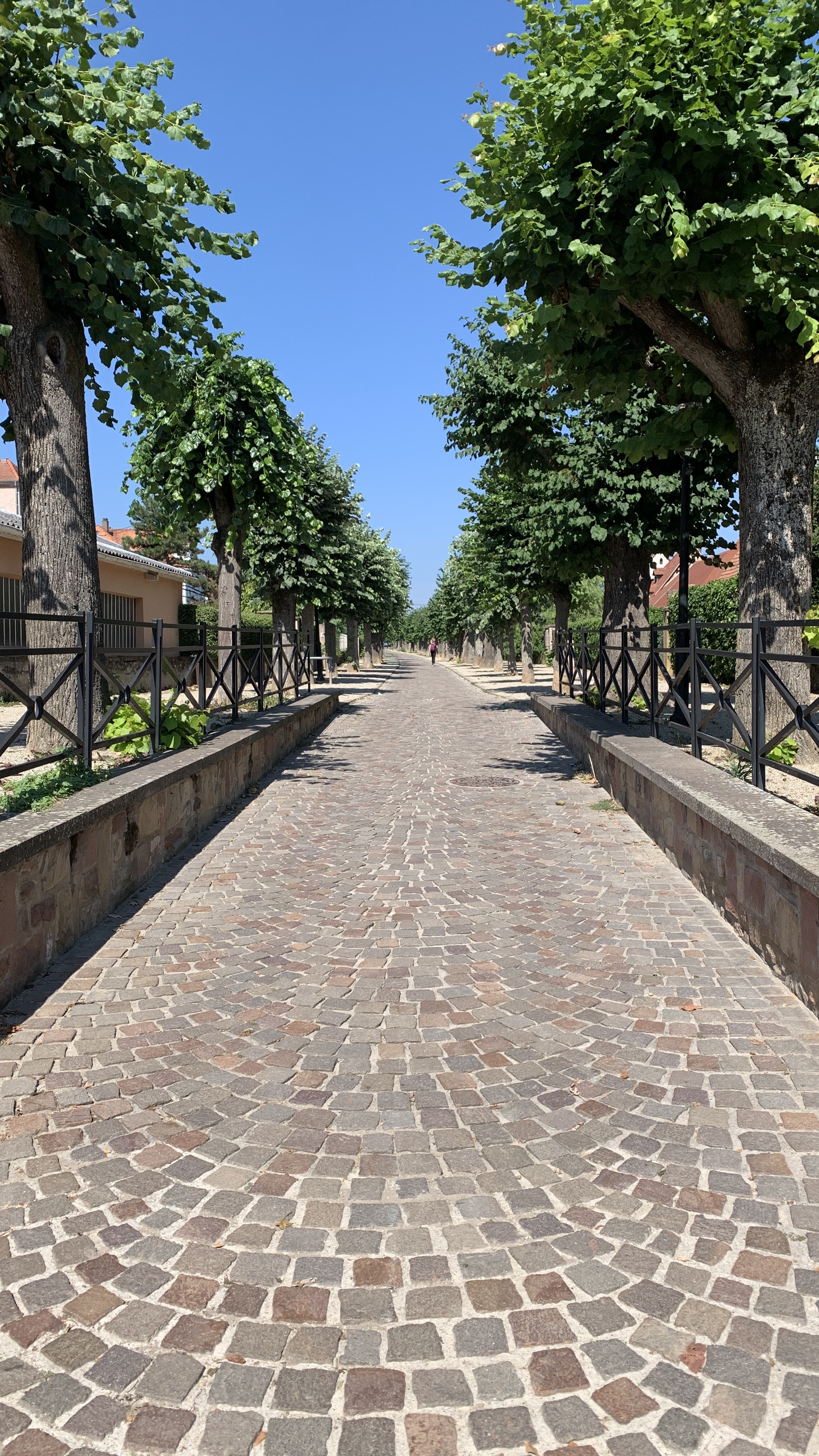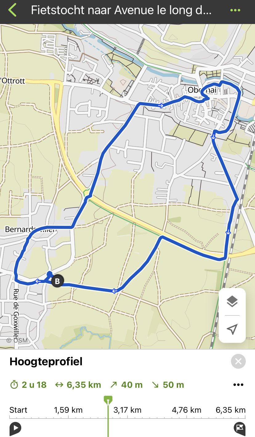 We pakken de fietsen en gaan naar Obernai. Het volgende dorp een paar km verderop. Echt weer zo’n Elzas dorp. We wandelen er rond, maken foto’s en kopen een magneetje en een ansicht ter herinnering. Dan fietsen we weer terug. We komen dan over de muren van Obernai. Het fietspad is er bovenop. Het is een mooie route door de velden terug.