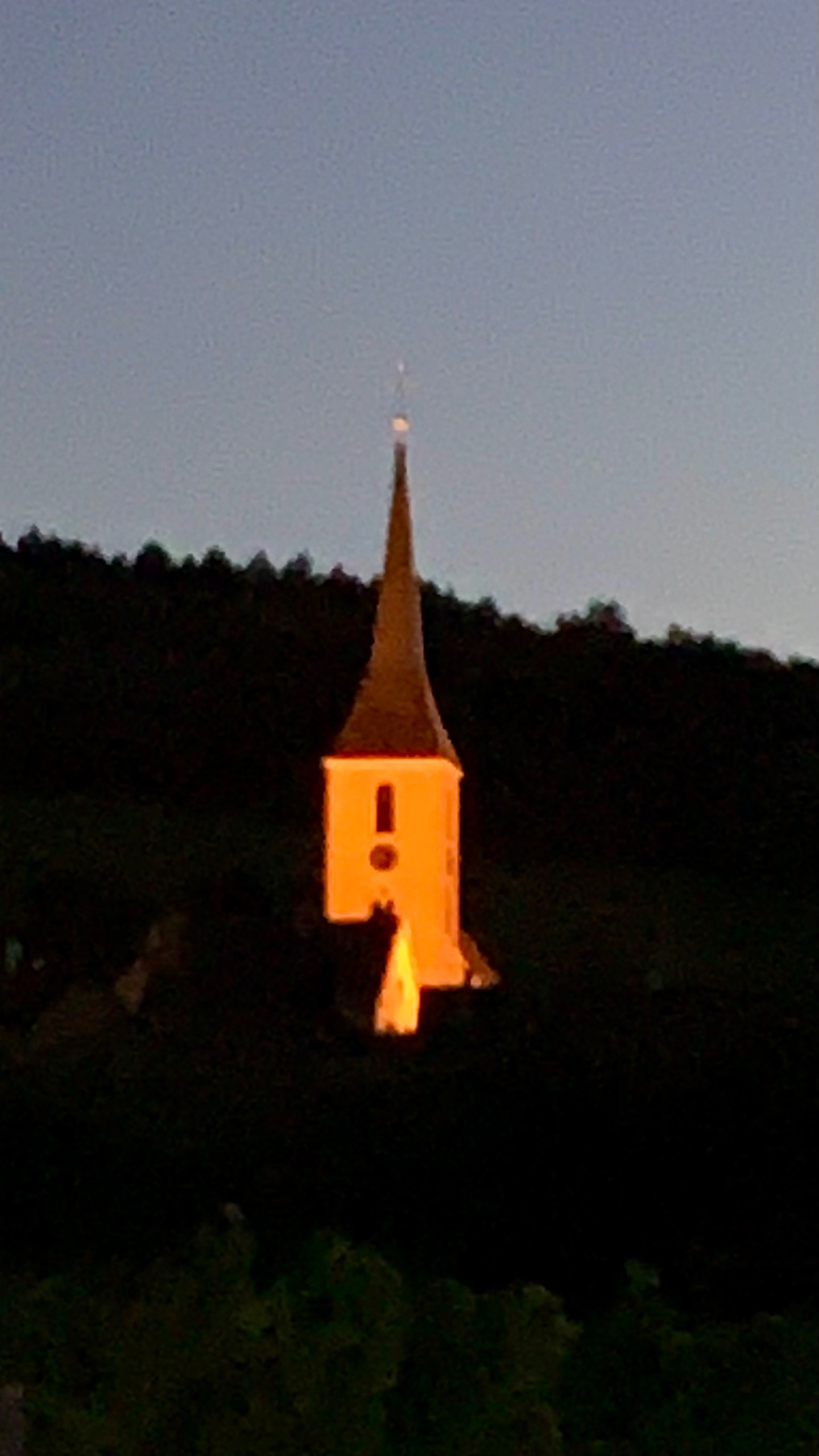 Het vuurwerk ging niet doir vanwege het brandgevaar. Wij blijven dan daar niet overnachten. We Ruud jden naar een prachtig rustig plekje van France Passion. In Blienschwiller.