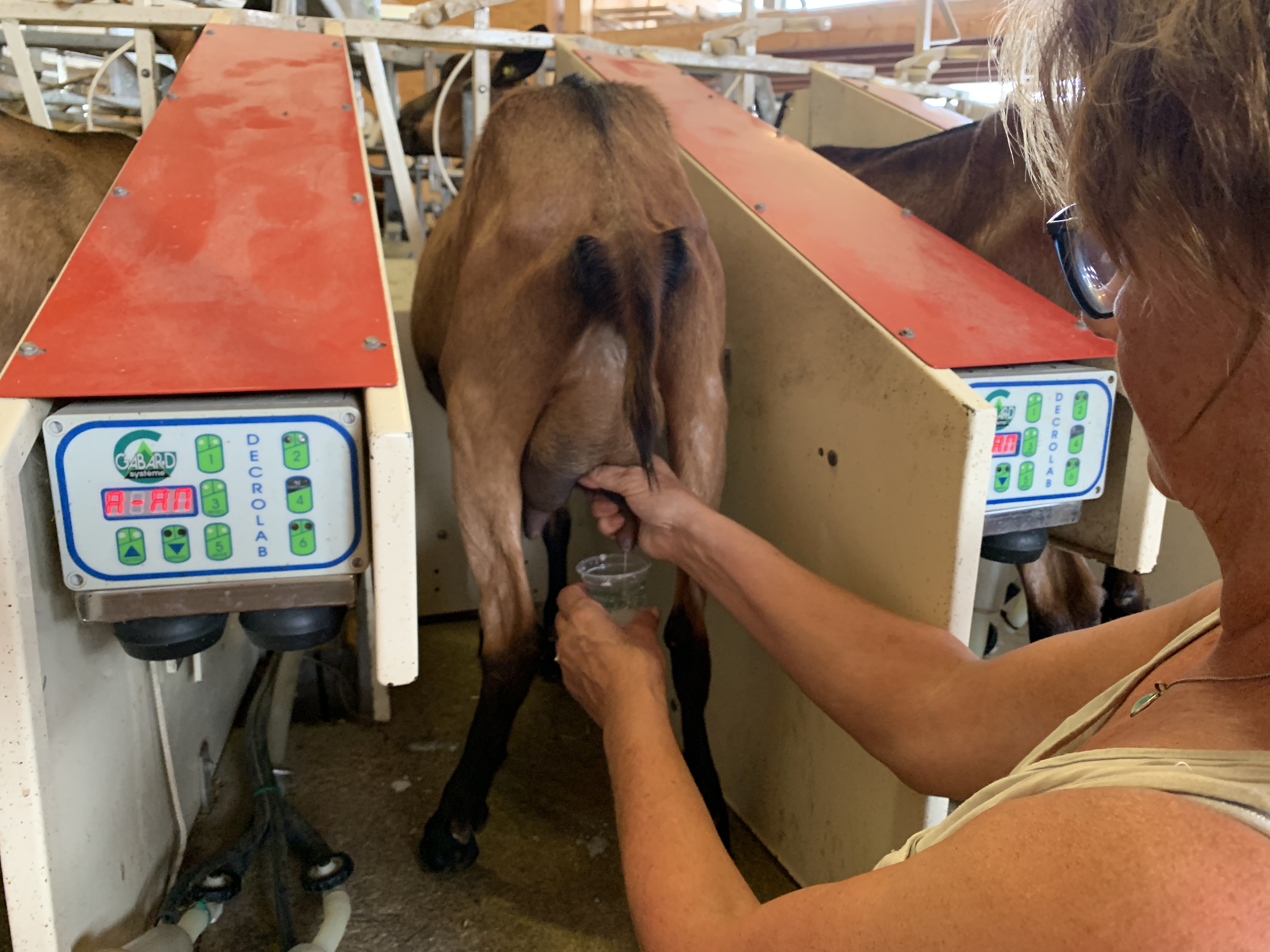 We komen er op tijd aan om nog een kijkje bij het melken van de geiten te kunnen nemen. Ook even zelf een geit gemolken en heerlijke geitenmelk gedronken. 😁 🐐.