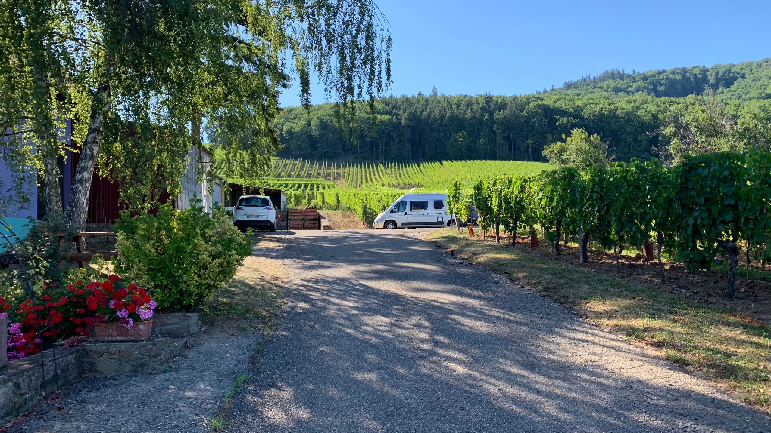 Onze route gaat weer verder door divers landschap. We komen aan in Zimmerbach bij een wijnmaker van france passion. We kopen er heerlijke pinot blanc.