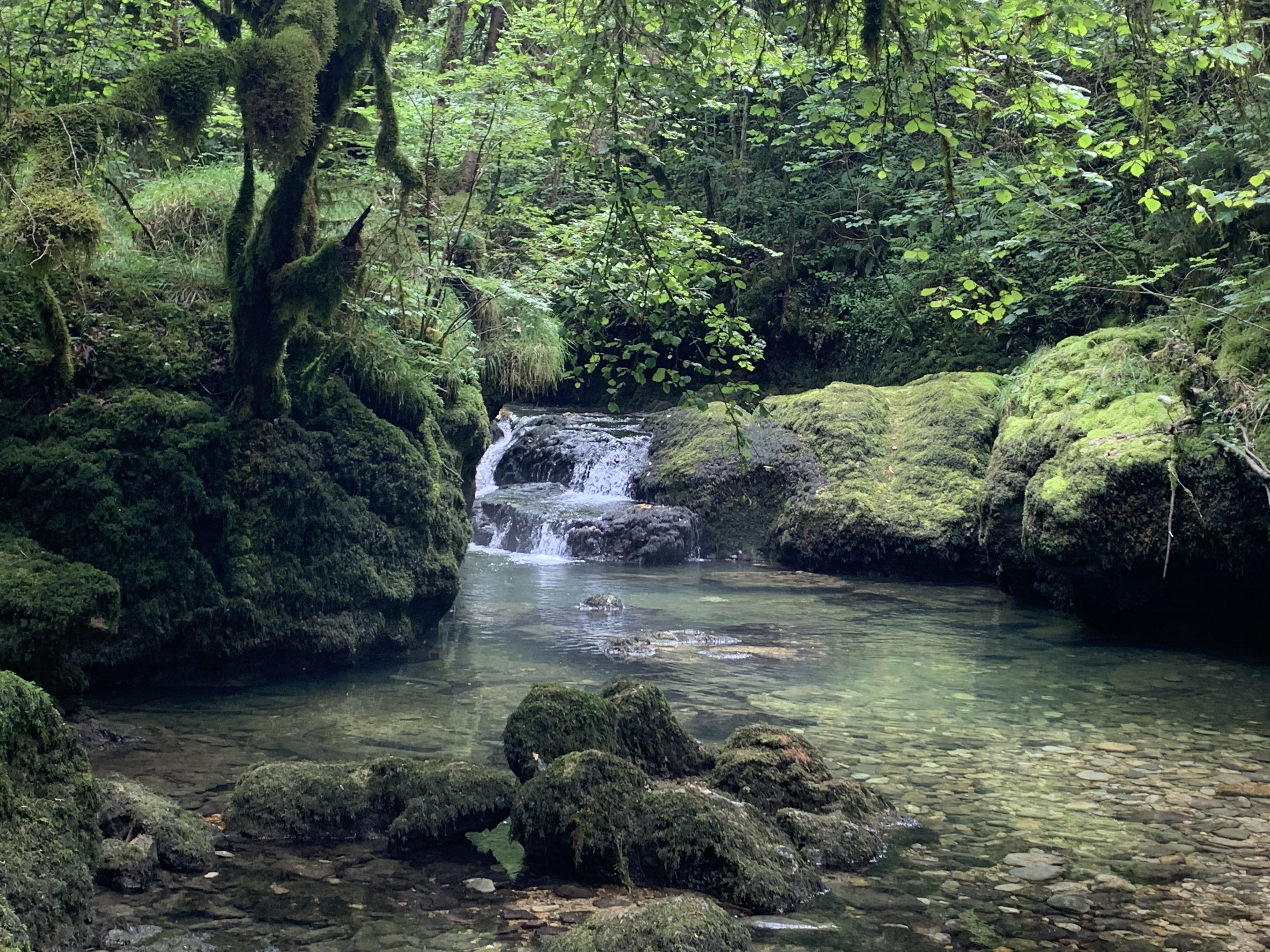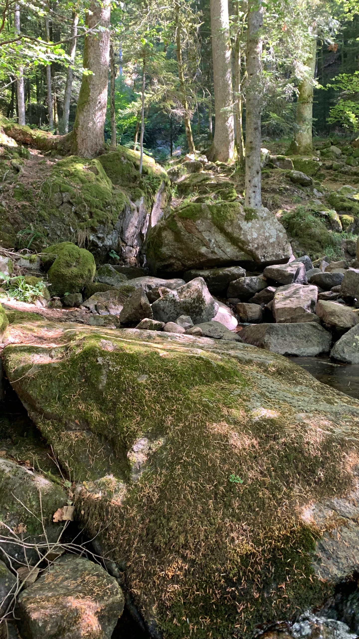 Elke dag is weer anders. Waren we nu in een redelijk vlakje omgeving, rijden we nu de Vogezen in en hebben daar weer prachtige bergweggetjes met grote dennenbomen , rotswanden en soms flinke diepte naast de weg. We bekijken cascade Rummel. Het is een mooi plekje om heen te wandelen, maar als er meer water naar beneden zou komen is het nog vele malen mooier. Maar deze wandeling is fijn. In de koelte van het bos.