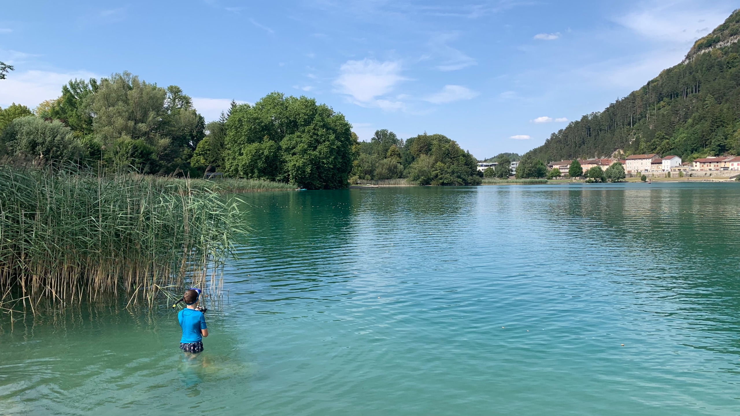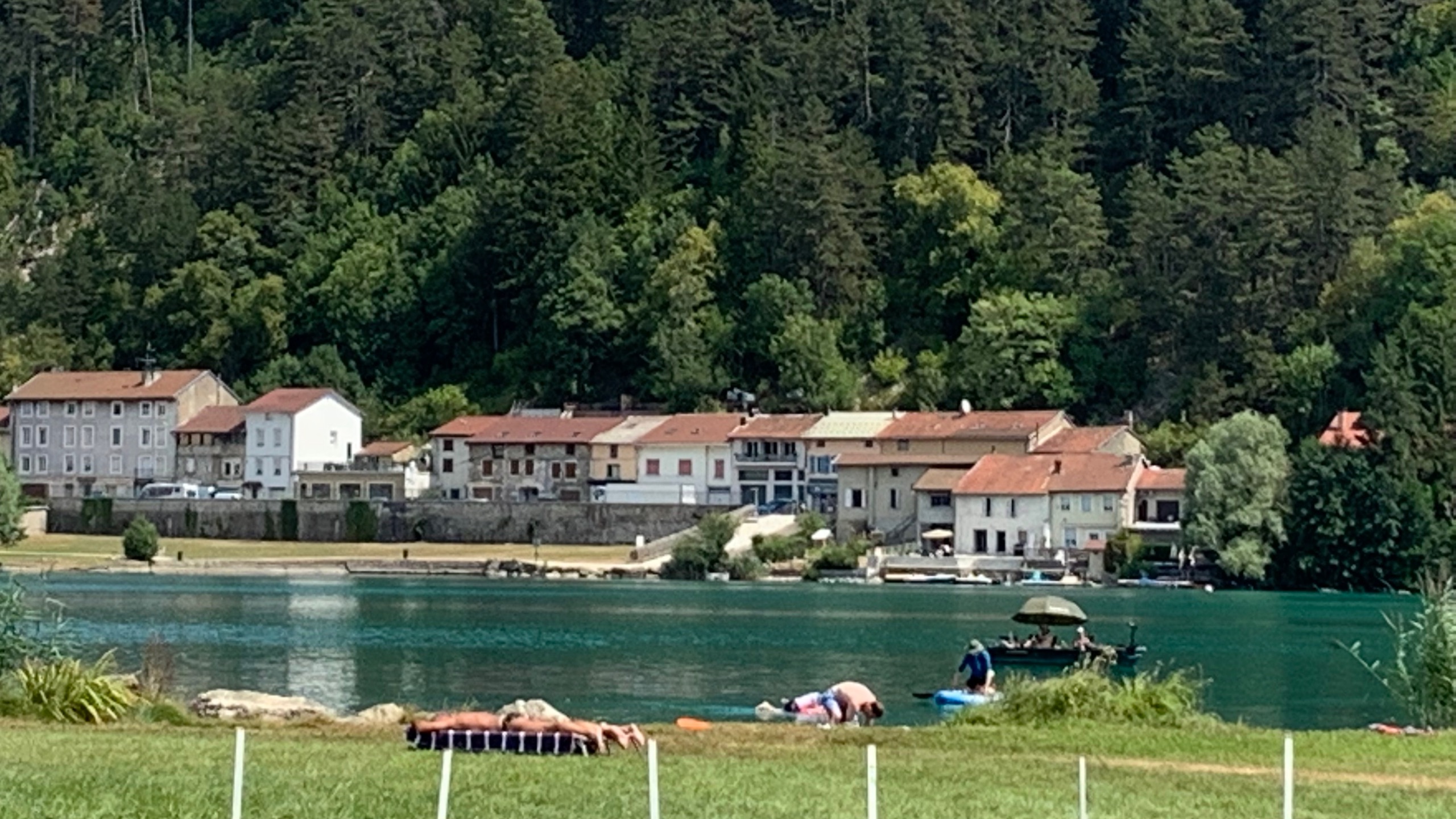 Het is weer een zonnige dag maar wel onder de 30° en dat is fijn. We maken een fietstochtje om het meertje en fietsen zo ook naar Nantua dat precies aan de andere kant van het meer ligt dan wij kamperen. Een leuk plaatsje en een mooi rondje met uitzicht op het heldere water.