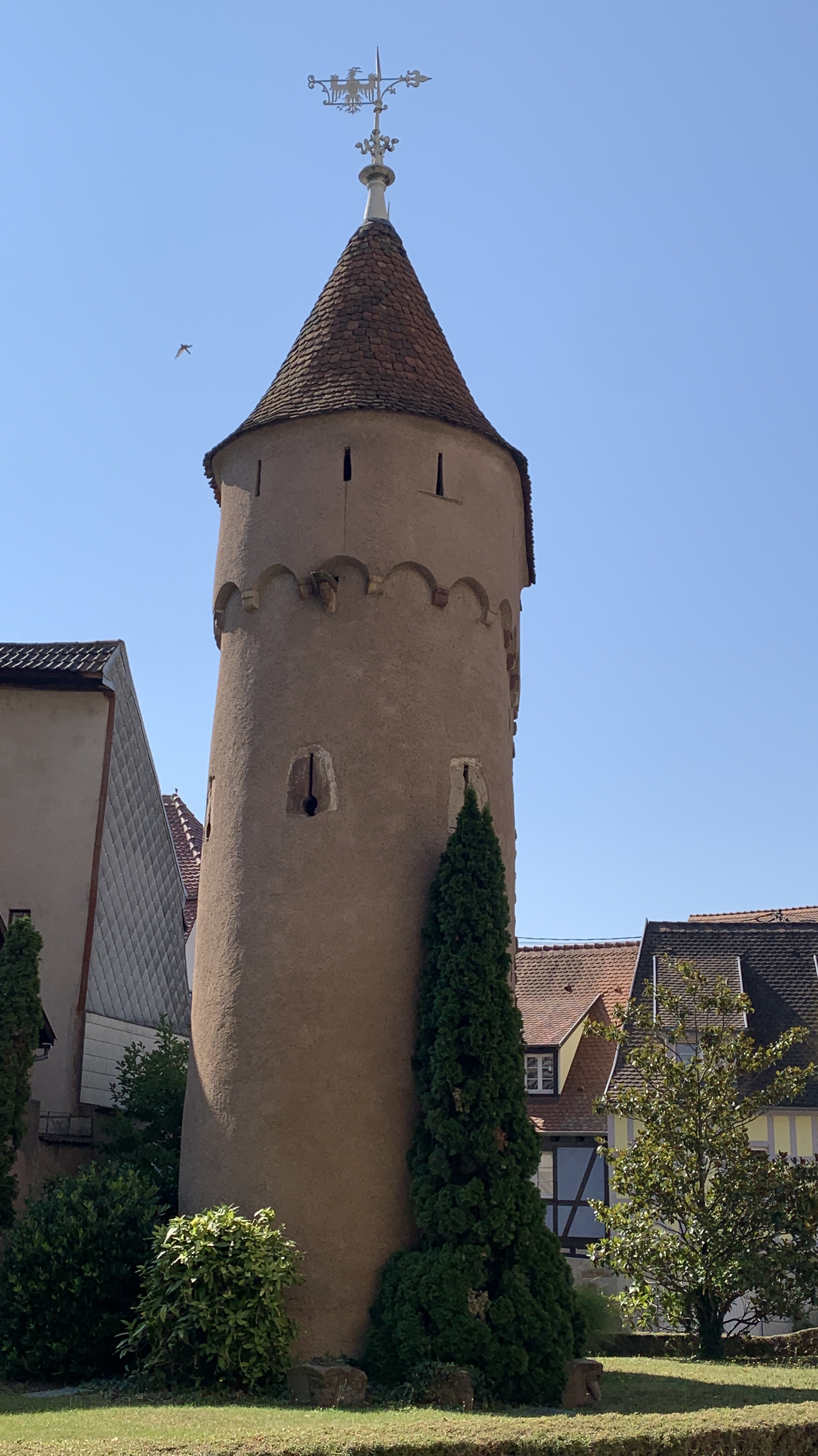 We rijden verder en komen door Schweigen Rechtenbach. Hier staat een wijntoren.