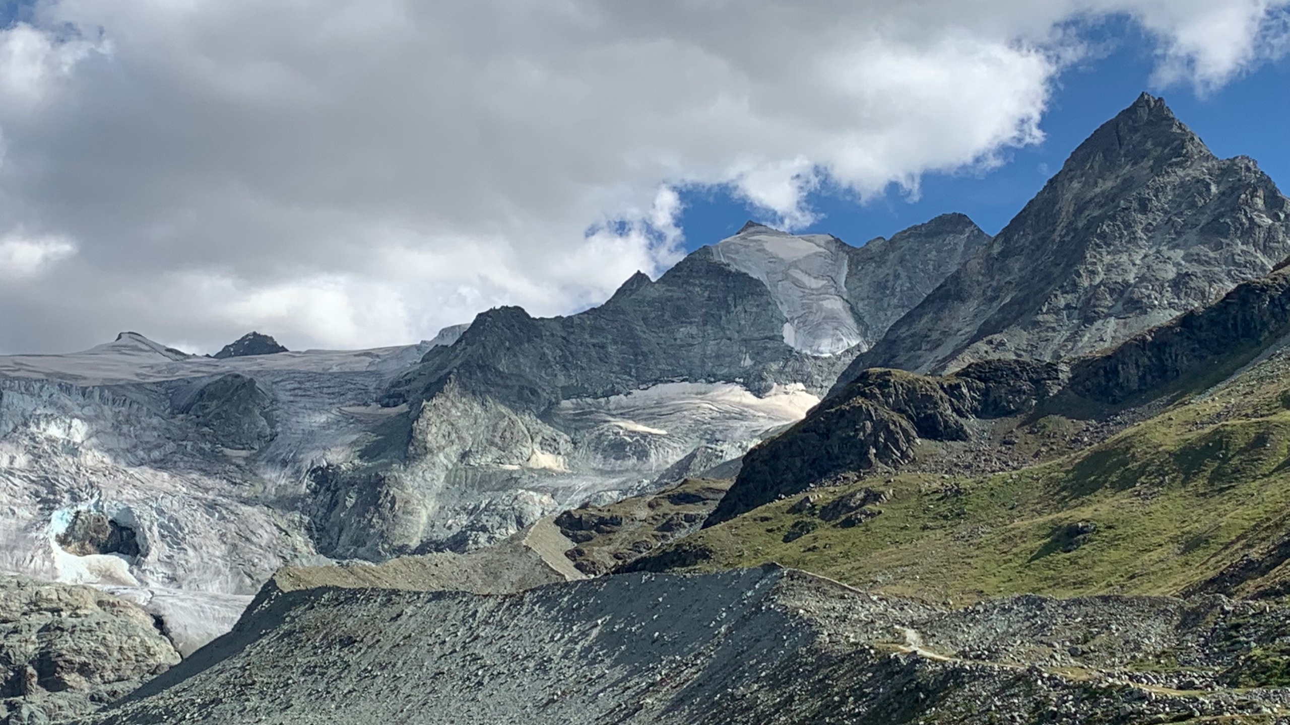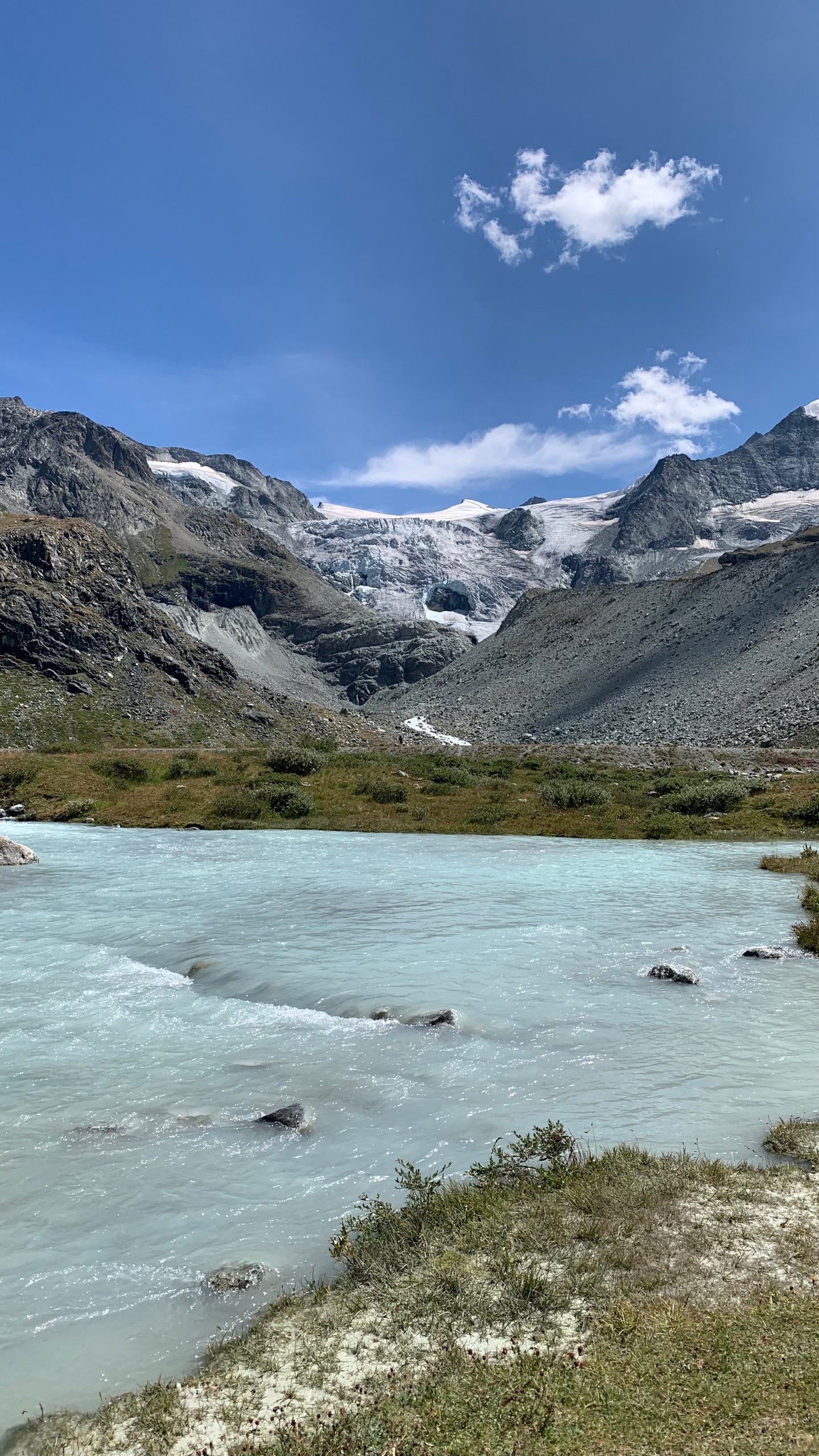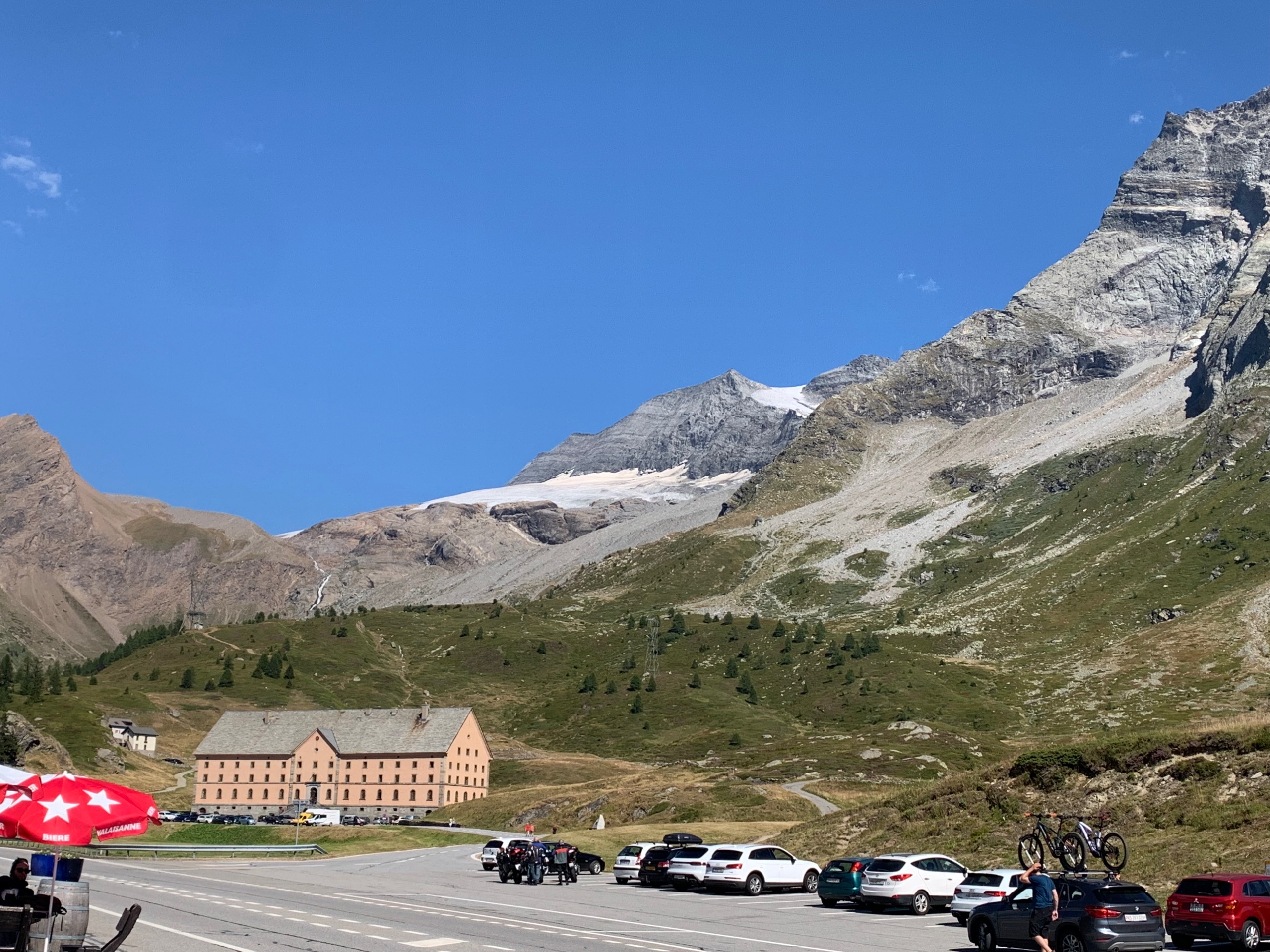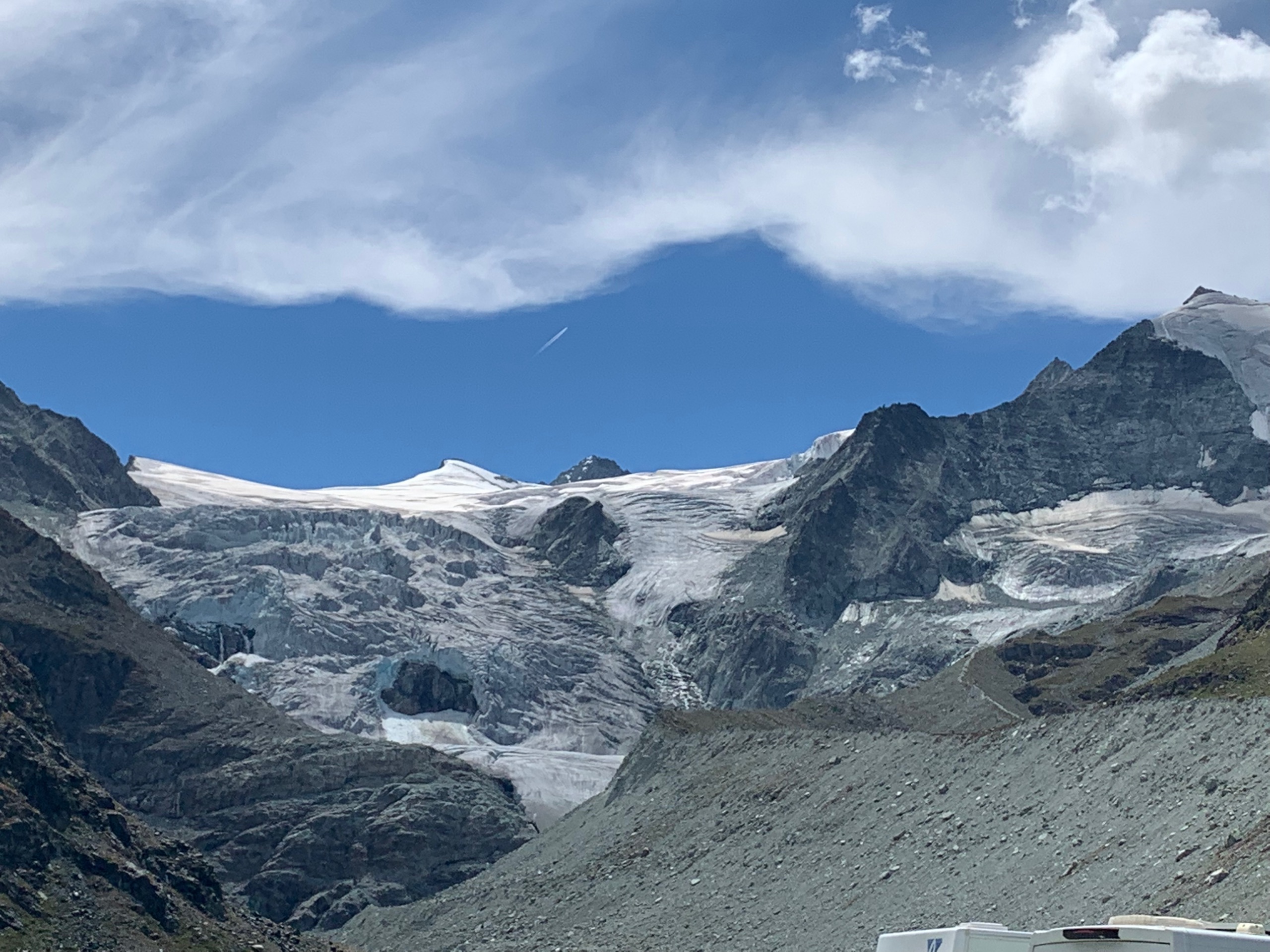 Een desillusie. Of is dat te sterk? Misschien. We hebben heerlijk geslapen onderaan de gletsjer. Wel een dekentje nodig vannacht. 7°. We Rijden naar Grimentz. Was altijd een leuk dorpje met huizen op steentjes. Maar waar zijn ze??? Alles is onherkenbaar. Alle huisjes zijn aan de onderkant dichtgemetseld. Geen winkeltjes meer waar je in kan. Er is wel een kabelbaan en een heleboel nieuwbouw. En de campingplek waar we vroeger stonden is gewoon weg. 😢 Alles op de wintersport gericht. Dus ja een desillusie.