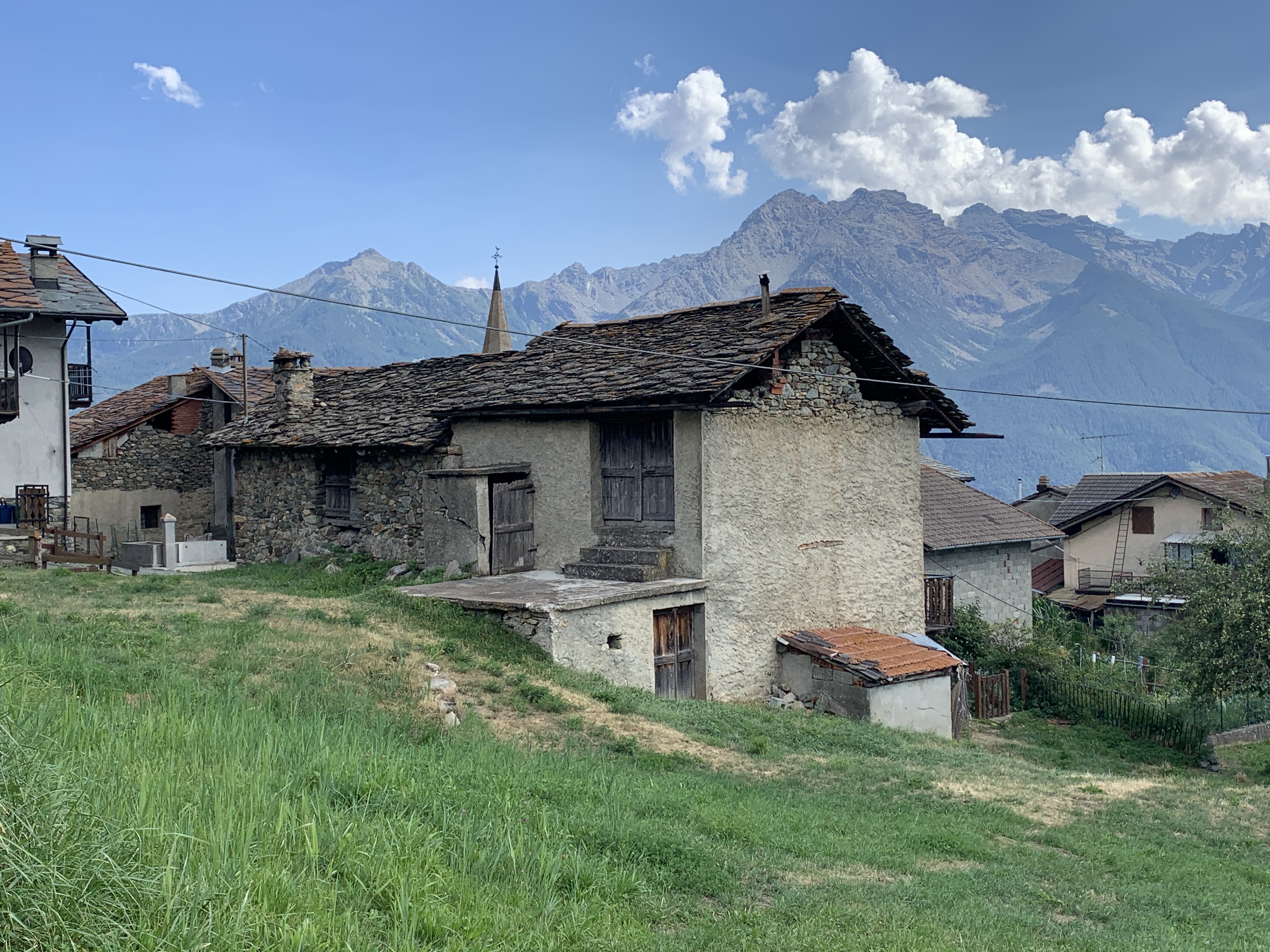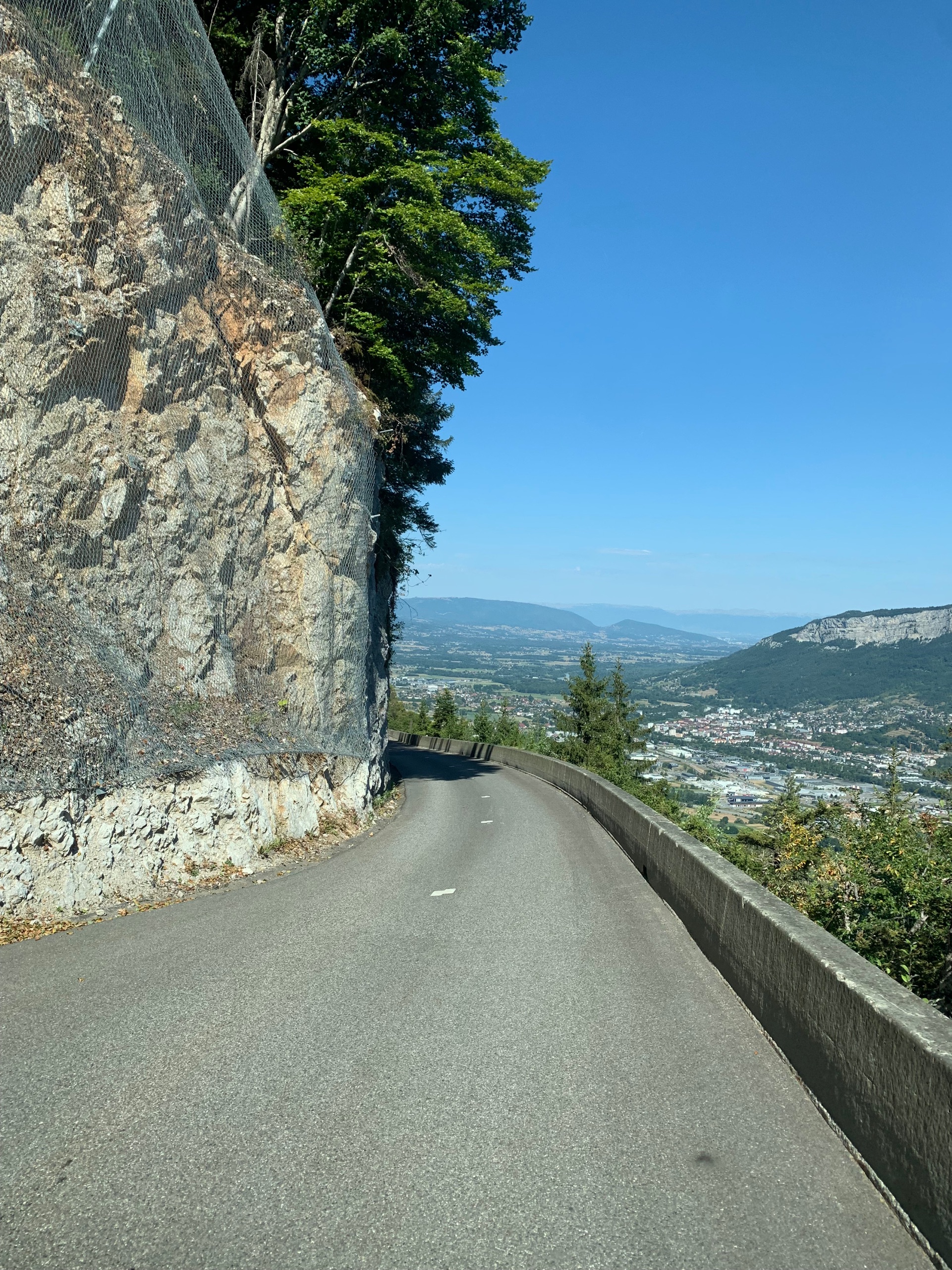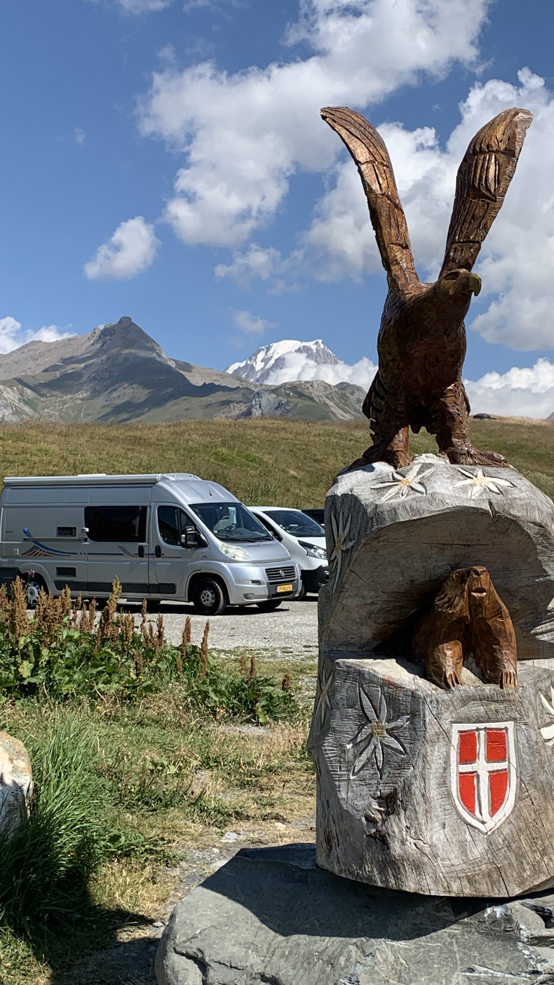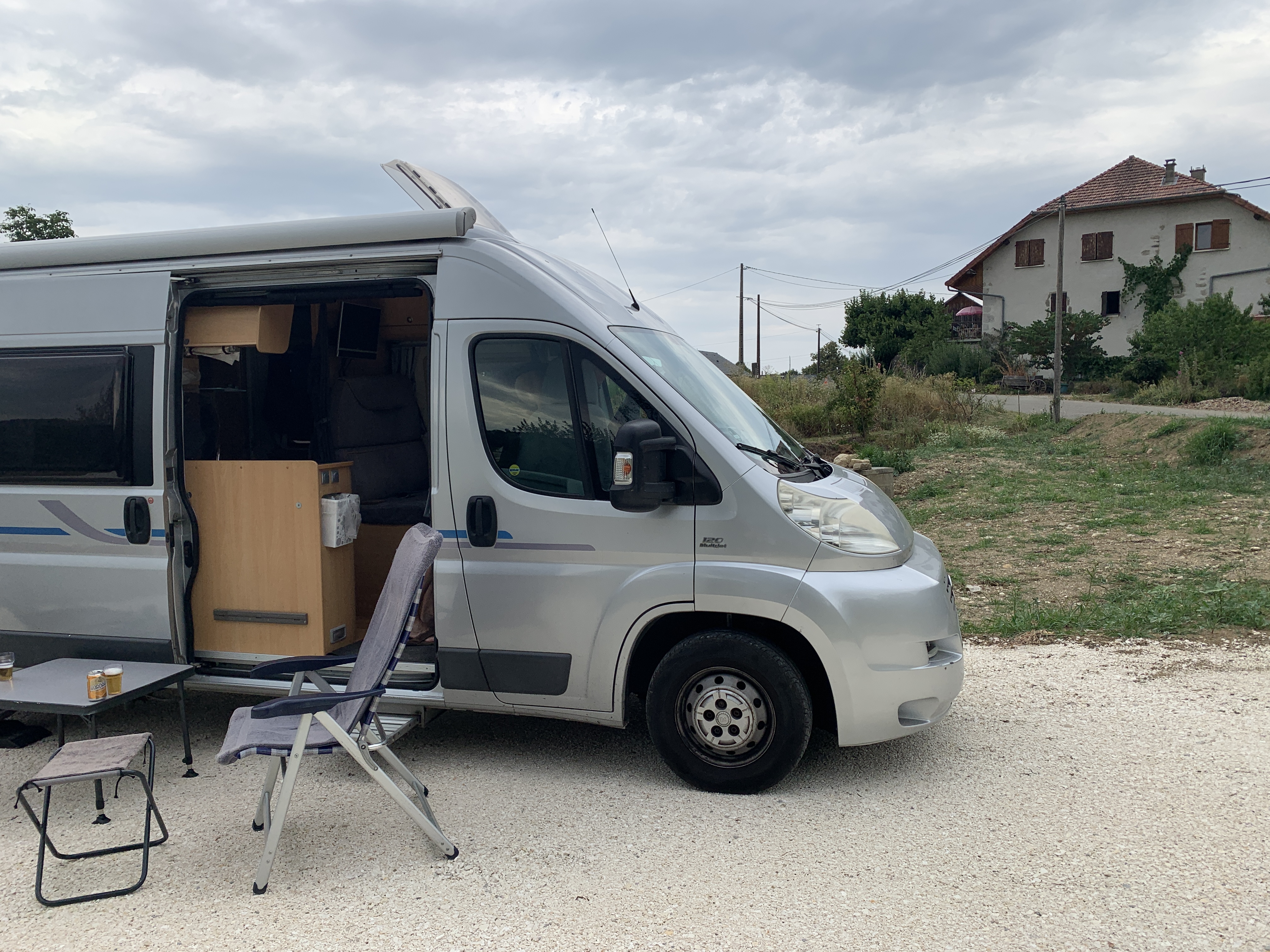 Dan gaan we verder richting Aoste. We nemen daar per ongeluk de autostrada, dat zijn de groene borden 😯 in Frankrijk is groen de route national. Nou ja, we schieten wel op. De camperplaats bij Aoste die we op het oog hadden vinden we niets. We rijden door naar St Dennis. Een grappige route er naar toe. Een soort lintbebouwing langs de berg. Als we arriveren blijkt de kleine camperplaats vol. Dat hadden we niet verwacht bij zo’n plek in the middle of nowhere. Maar ze wijzen ons een naar een klein parkeer terreintje. Een klein stukje terug. Daar kunnen we wel een nachtje staan. We hebben toch ook een kleine camper 😉. Het uitzicht is er prachtig, mooier dan op de camperplaats. En we staan er waarschijnlijk gratis. 😜