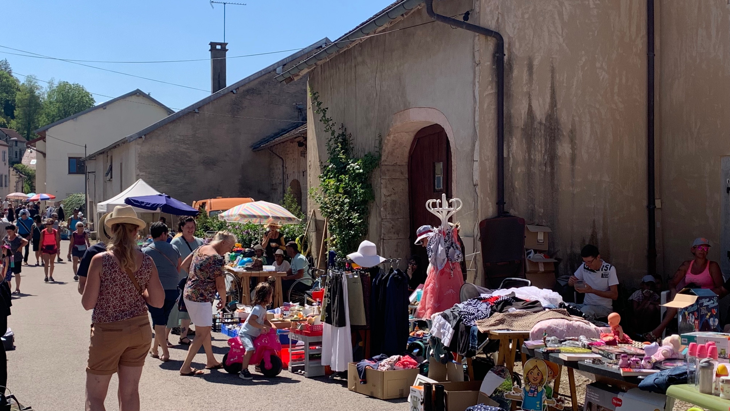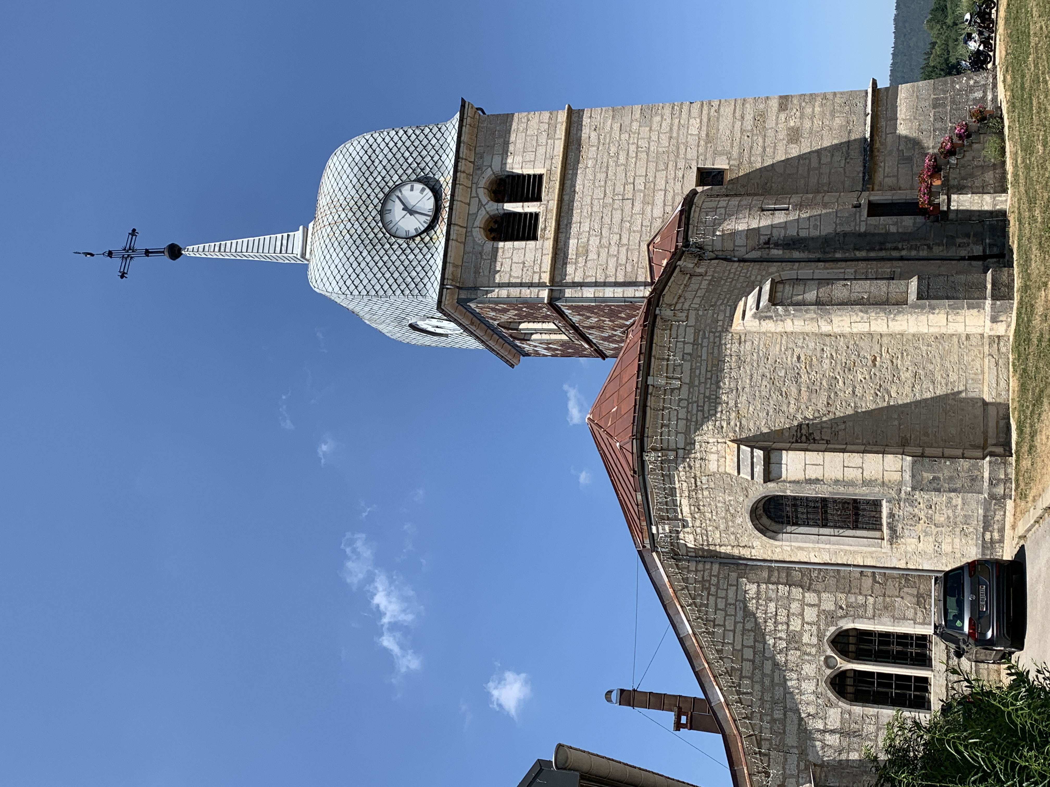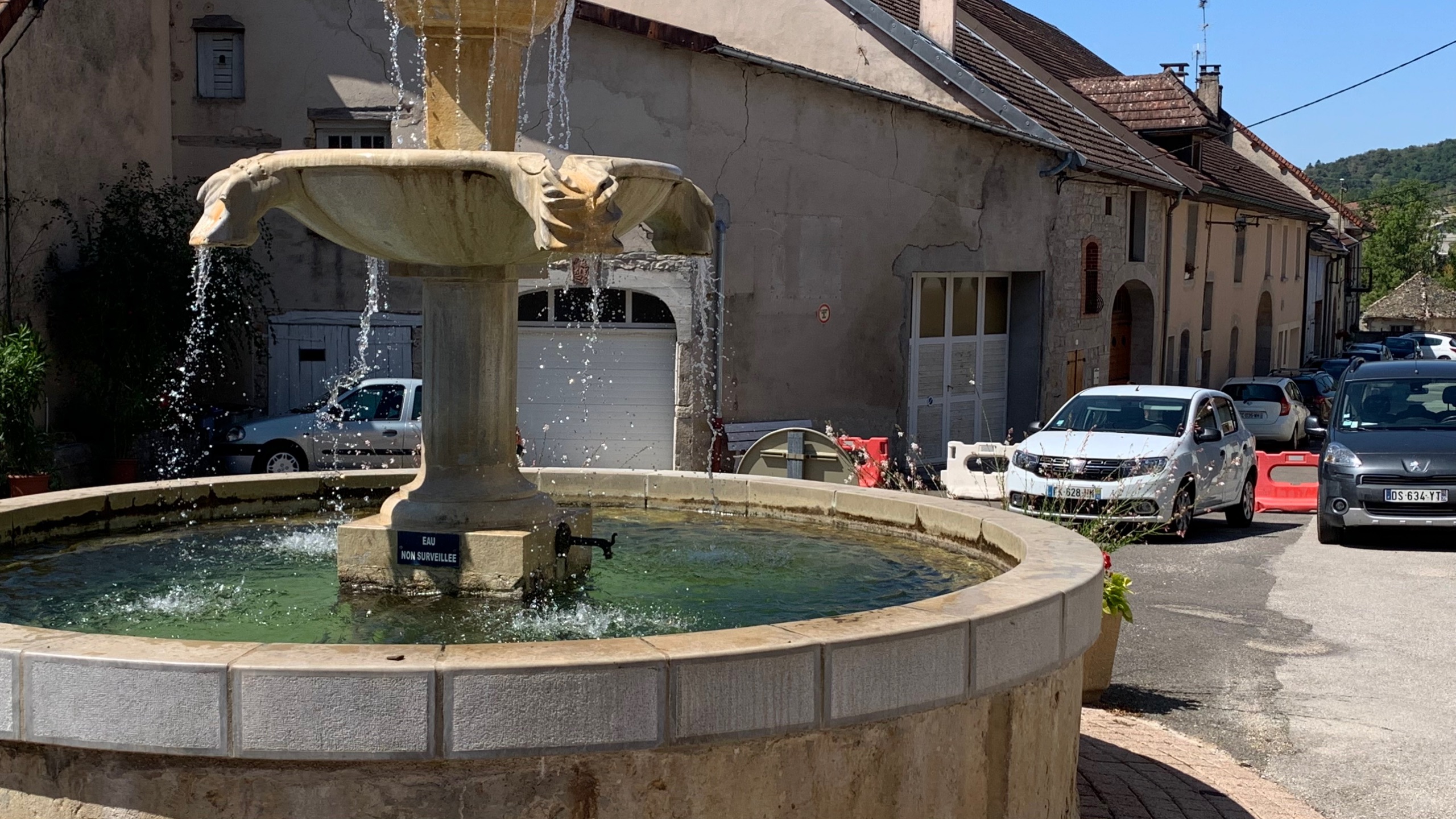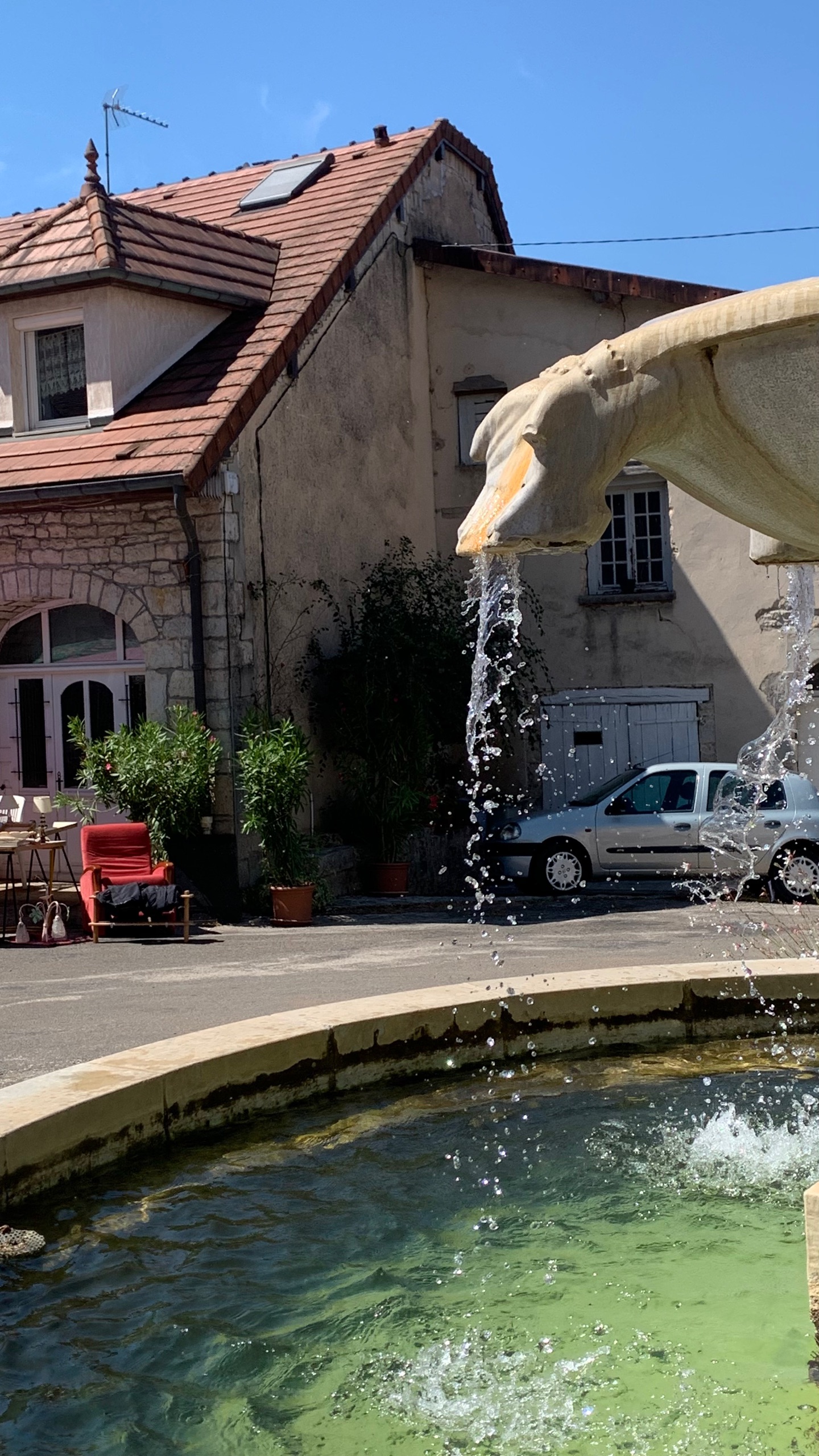Dan op weg naar Arlay een FP plek. Helaas is het daar erg open, geen enkele schaduw. Daar is het nu wel te warm voor. We besluiten om eerst het dorp te bekijken. Zou het mooiste dorpje van de Jura zijn…smaken verschillen.