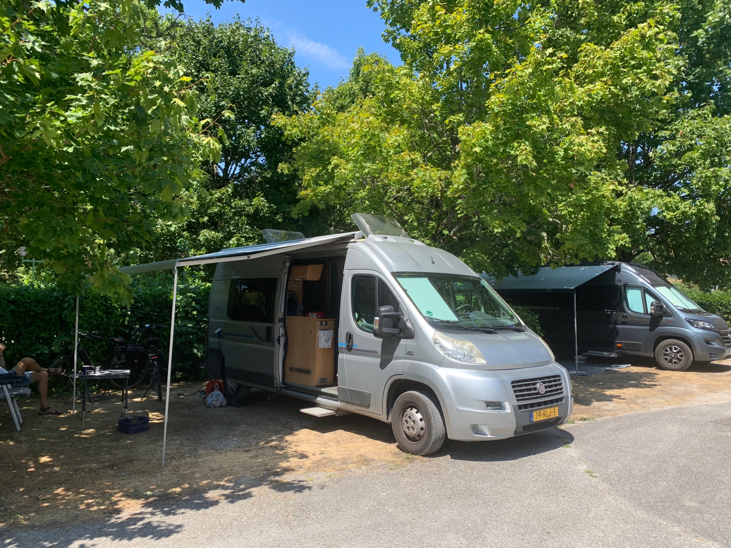 We rijden naar een kleine camping aan het meer van Nantua. Camping du Lac in Port. Een heerlijk plekje met halfschaduw. Uitzicht op het meer. Intermarche om de hoek, ook wel eens handig 😉.