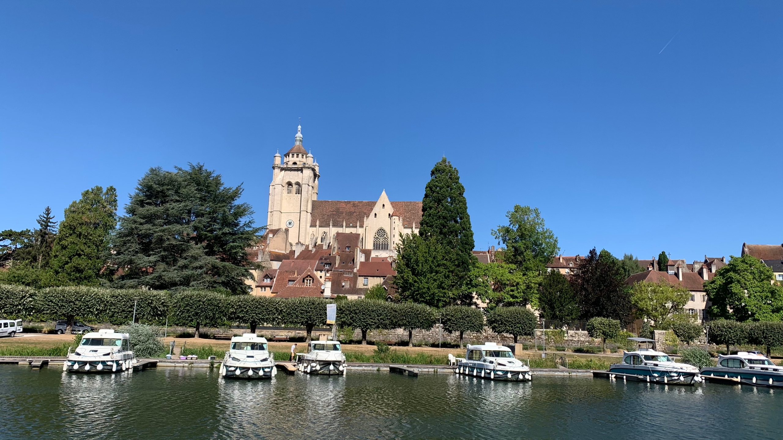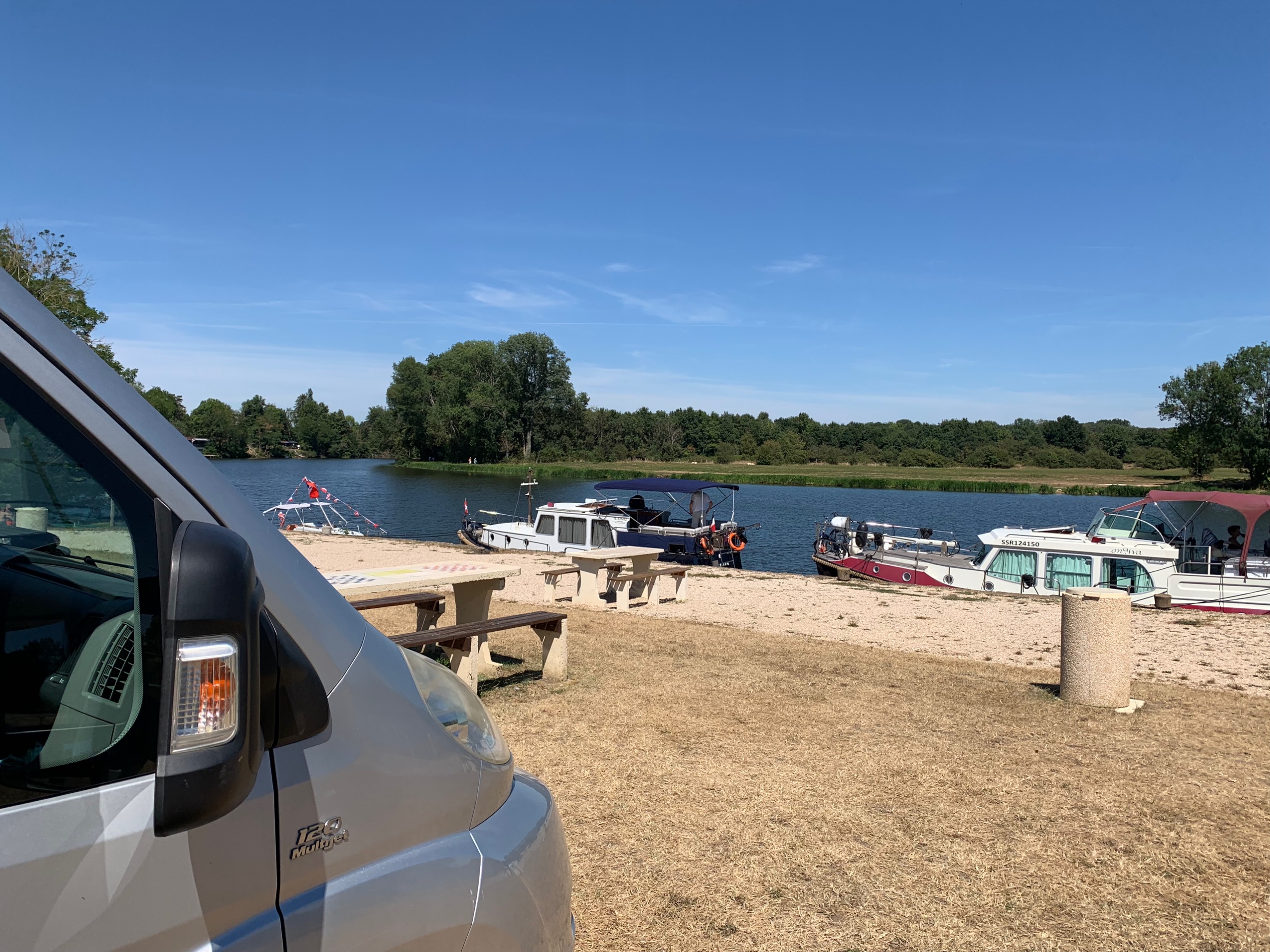 We vervolgen onze weg naar de Saône . We vinden daar een mooie camperplaats direct aan de rivier in Lamarche sur Saone. Het is hier prima uit te houden. Er staat een lekker windje. Af en toe komt er een plezierboot voorbij. We fietsen een rondje naar Pontarlier. Terug mooi langs de Saône.