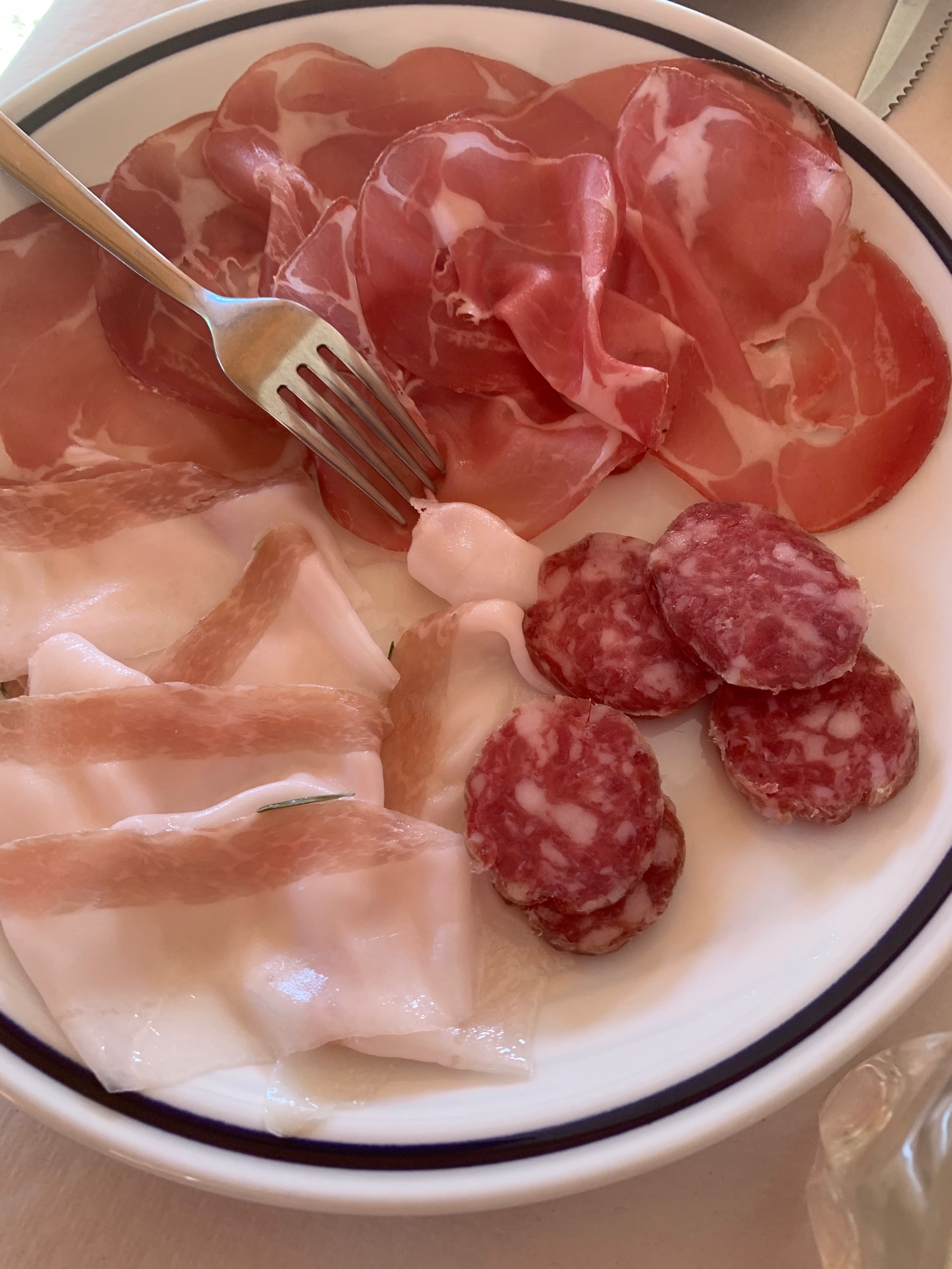 Wat hadden we nu een rustige nacht 😀. We zijn er vroeg in gegaan dus een mooie tuk gedaan. Dan weer bij het ontbijt van het mooie uitzicht genieten. We wandelen even door het ini mini dorpje en rijden de berg weer af. Onderweg wat boodschappen waarbij we weer duidelijk horen in Italie te zijn. En dat niet alleen door de taal.