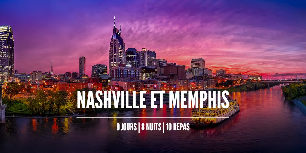 Visite de Graceland, la célèbre résidence d’Elvis Presley transformée en musée et ouverte au public depuis 1982. Voyez des photos d’archives de sa jeunesse, ses flamboyants costumes de scène, ses disques d’or et platine ou encore sa collection de voitures. Dîner sur le site. Visite du Sun Studio, connu dans le monde entier comme le lieu de naissance du Rock’n’Roll. Trajet vers Nashville, surnommée la Music City. Souper et soirée libres sur la rue Broadway réputée pour ses spectacles country, ses restaurants et ses magasins. PD/D