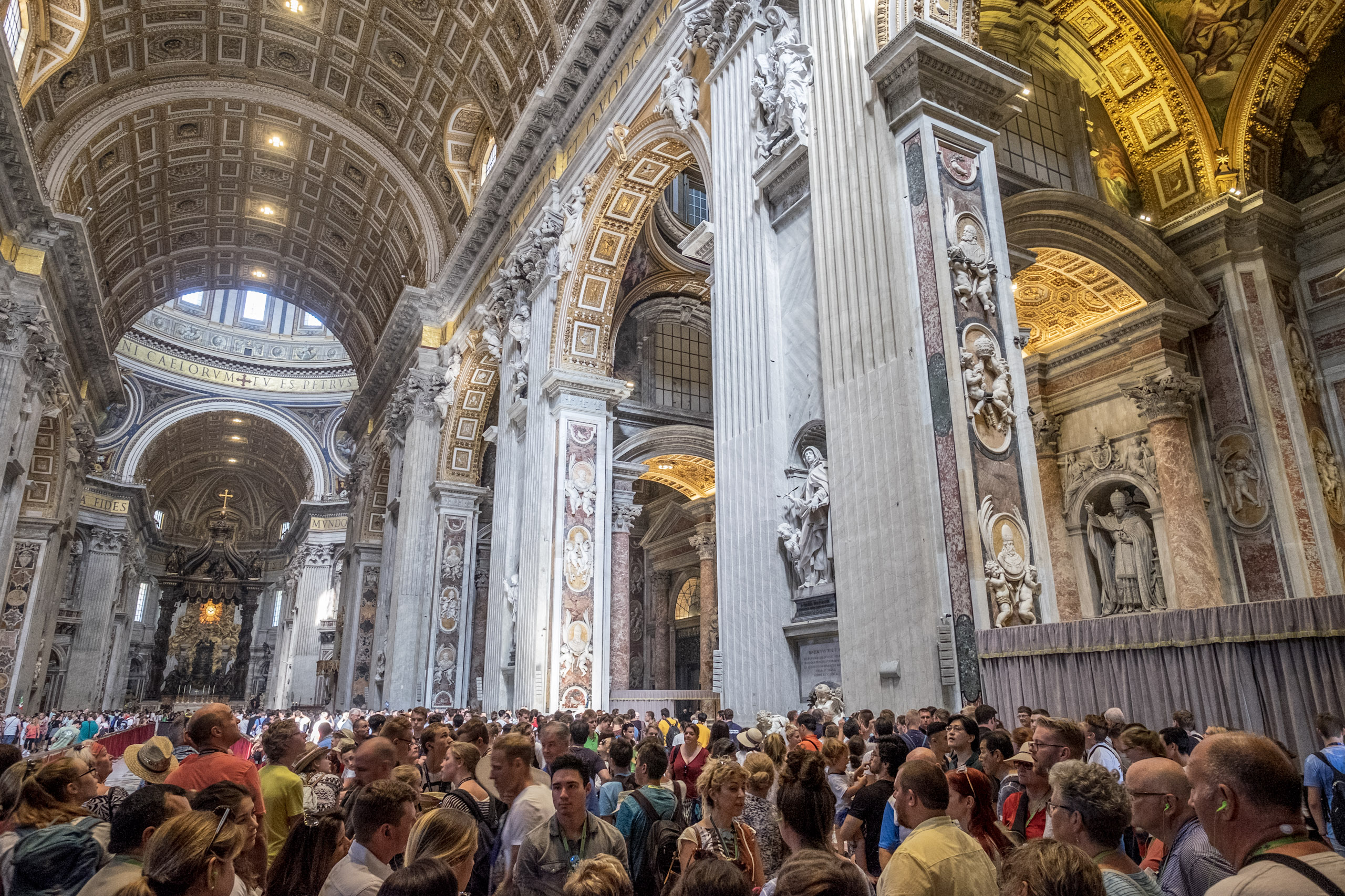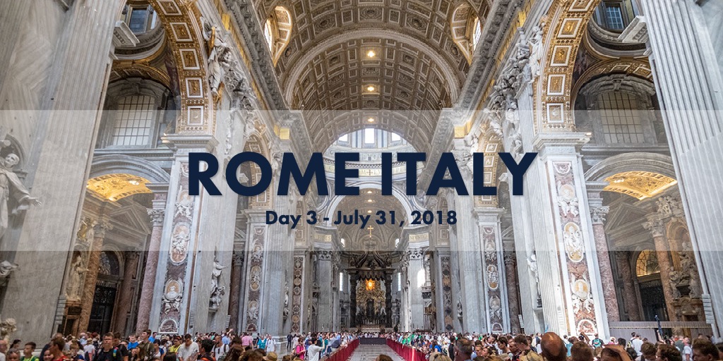 There are more than a billion Catholics in the world. At times, yesterday’s visit to the Vatican felt like they’d all stopped by to say hello. That’s the overwhelming takeaway from day 3: the massive size of the surroundings, and the crushing masses of humanity longing to experience all that it can offer. Toss in triple digit heat, and an impending convocation of 60,000 altar boys (we Californians say “altar servers”), and the first thought is will we all fit? The answer is yes . . . Sort of.