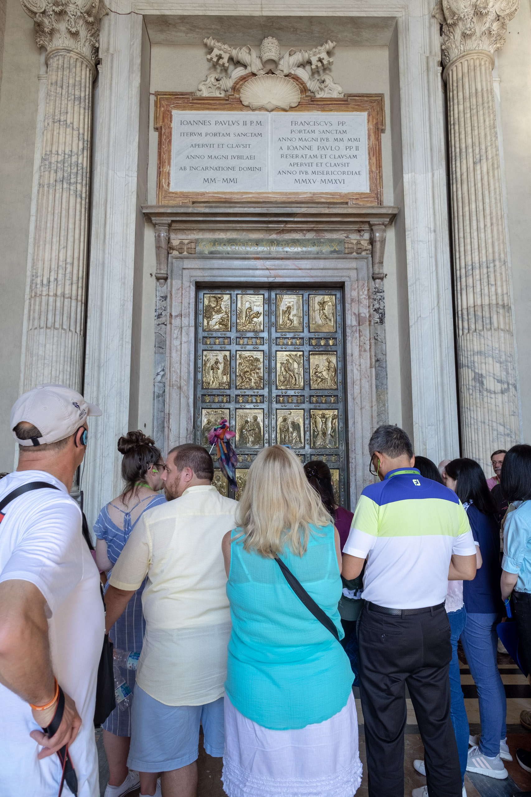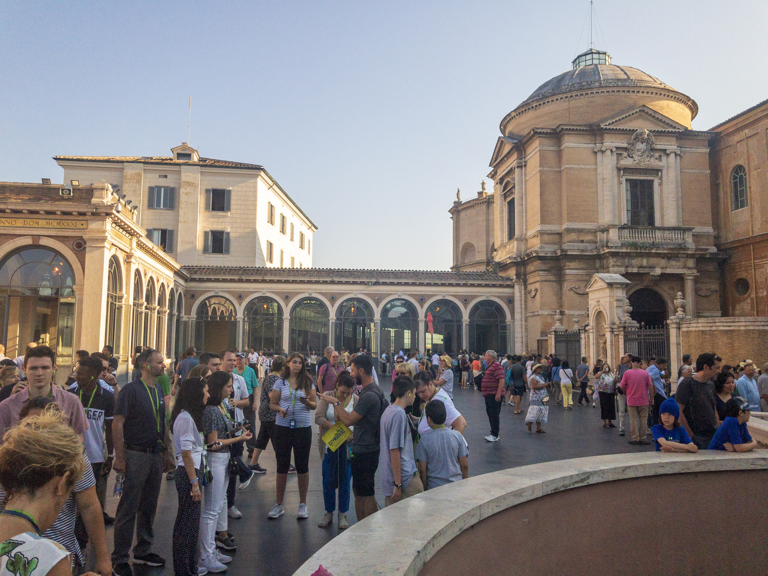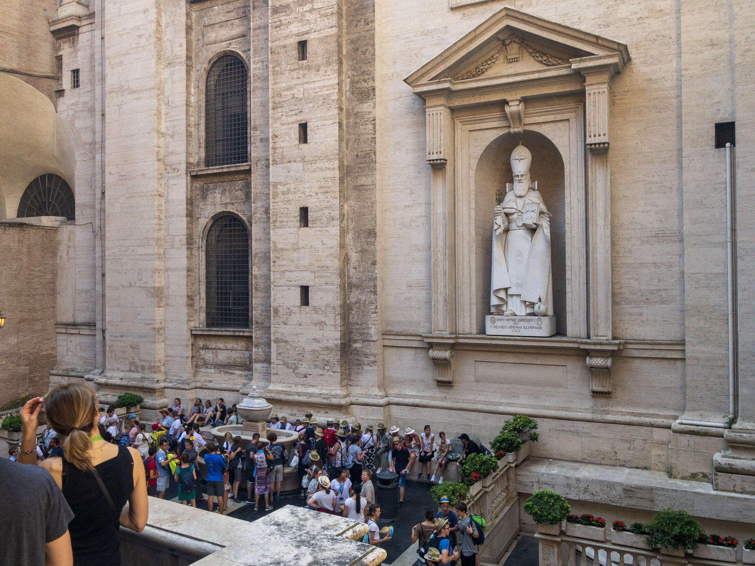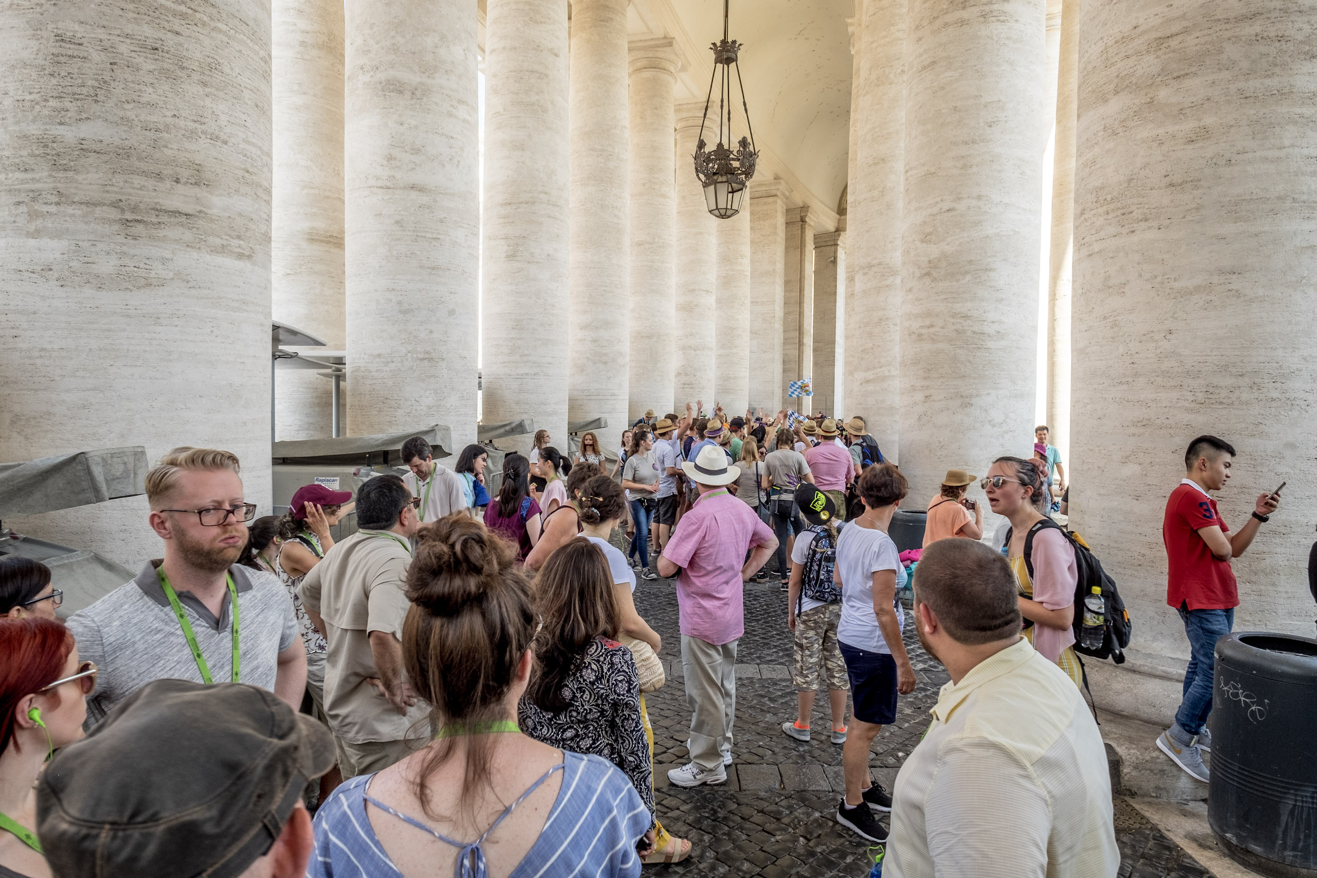 We experienced huge crowds, mostly youth groups who were seeking shade in the columns surrounding St. Peter’s Square when we exited.
