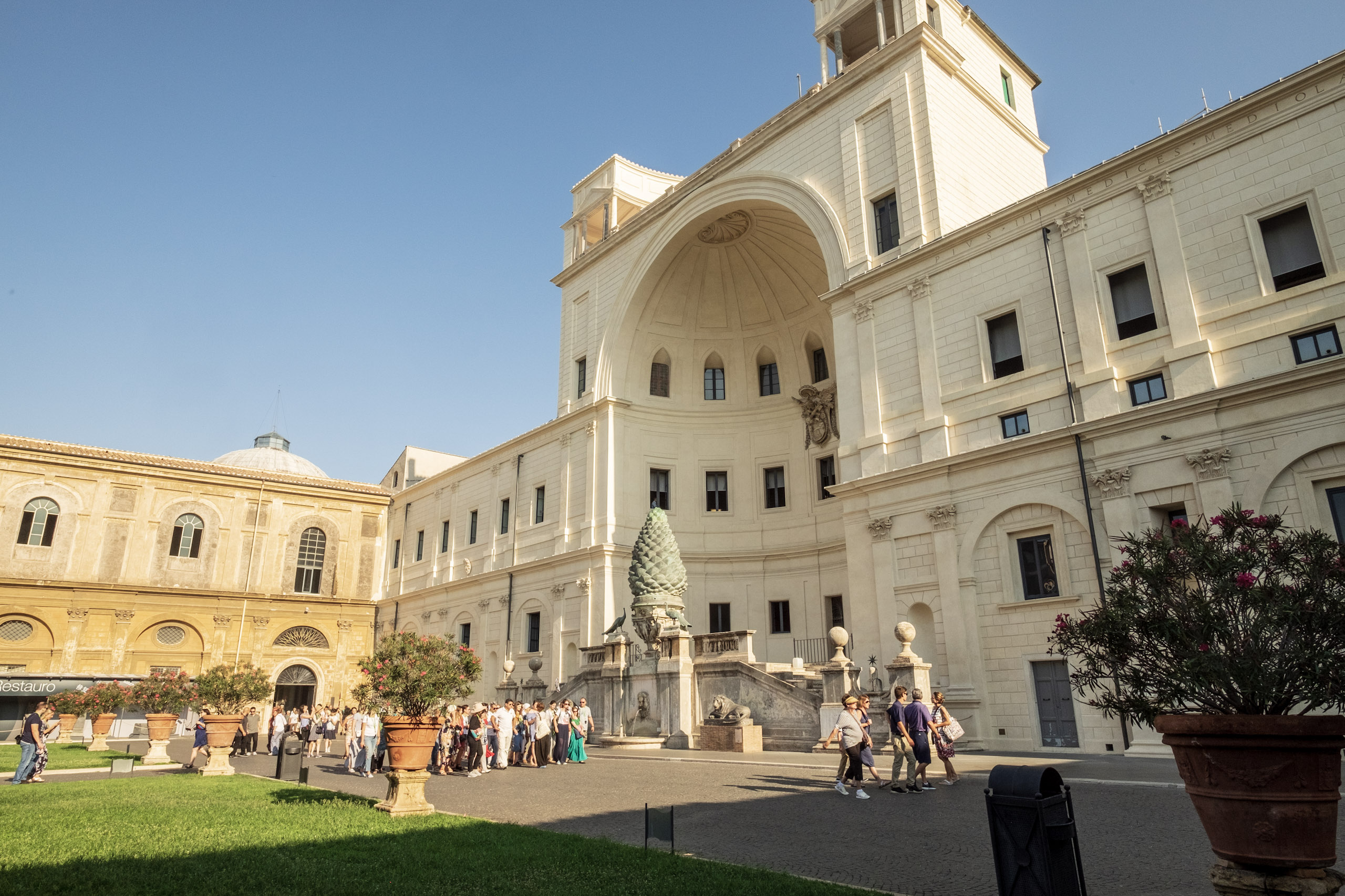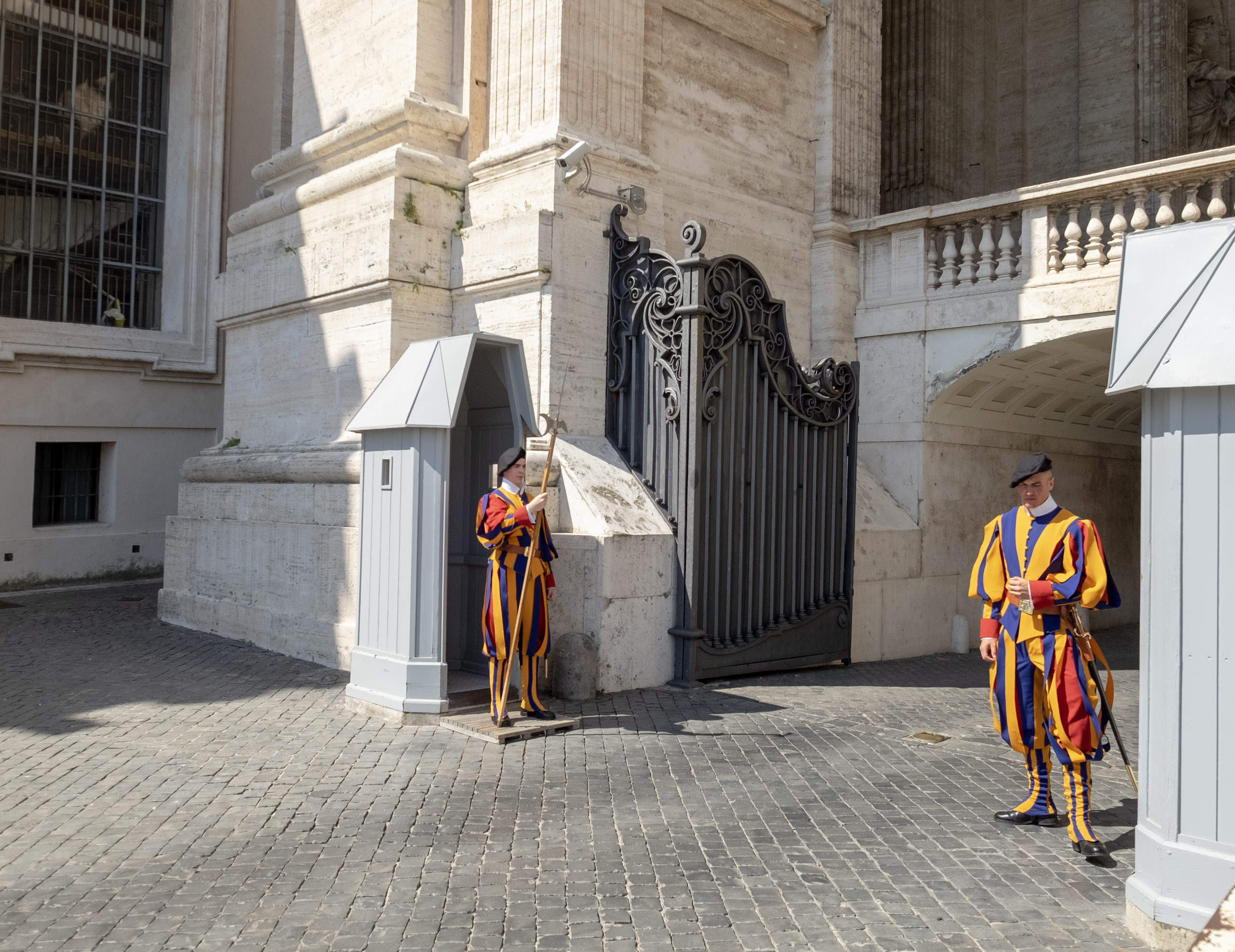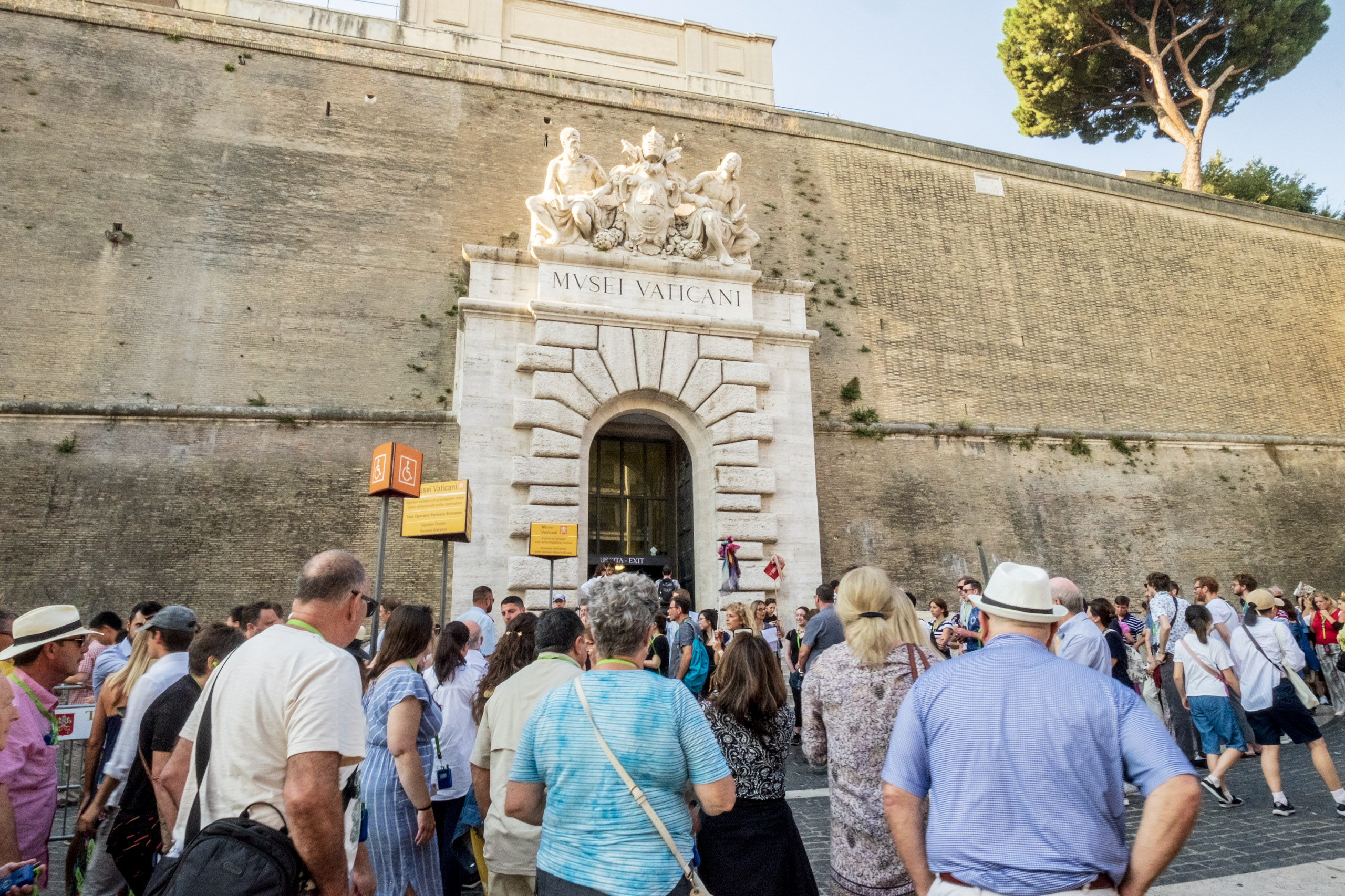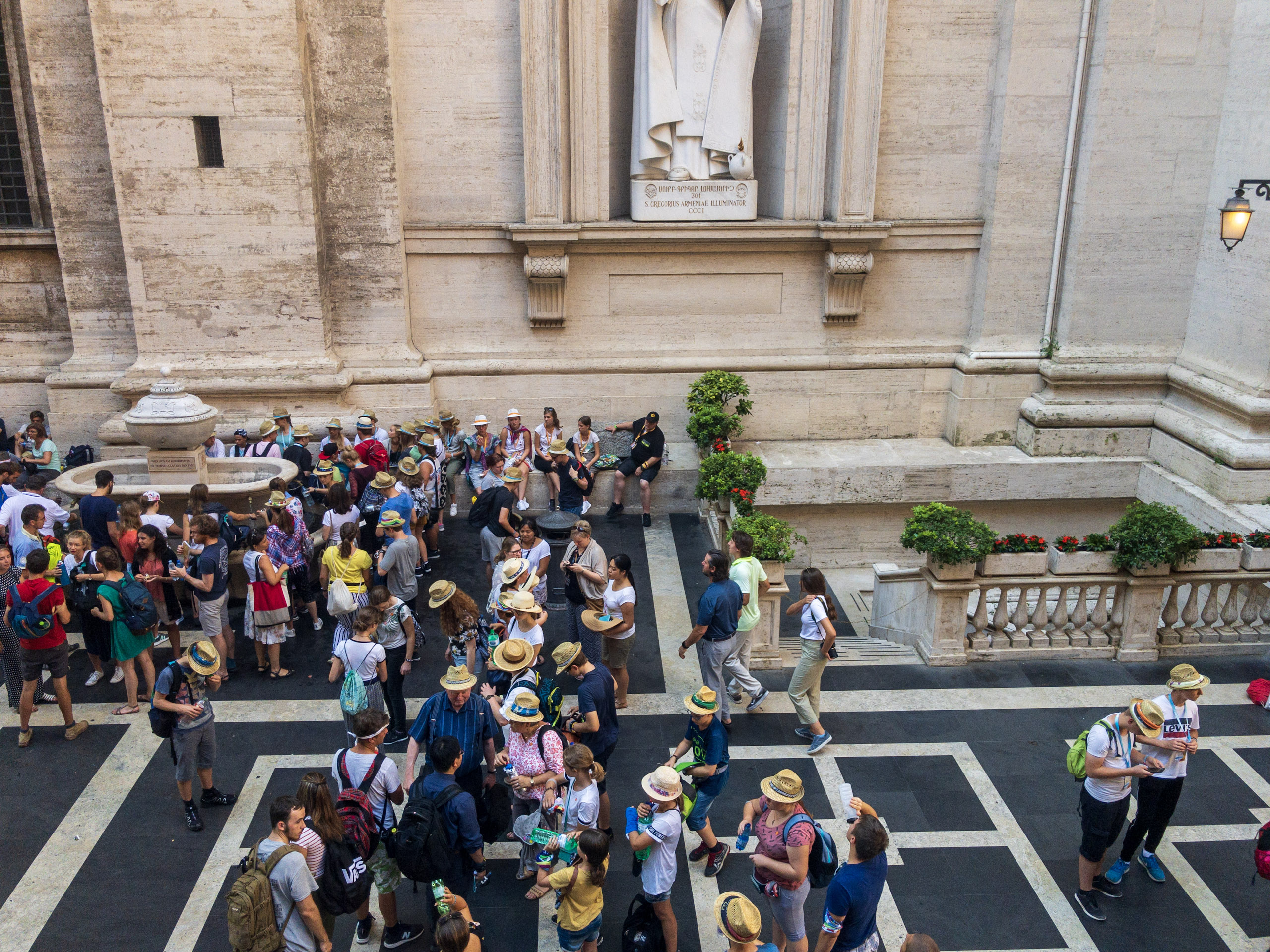 We experienced huge crowds, mostly youth groups who were seeking shade in the columns surrounding St. Peter’s Square when we exited.