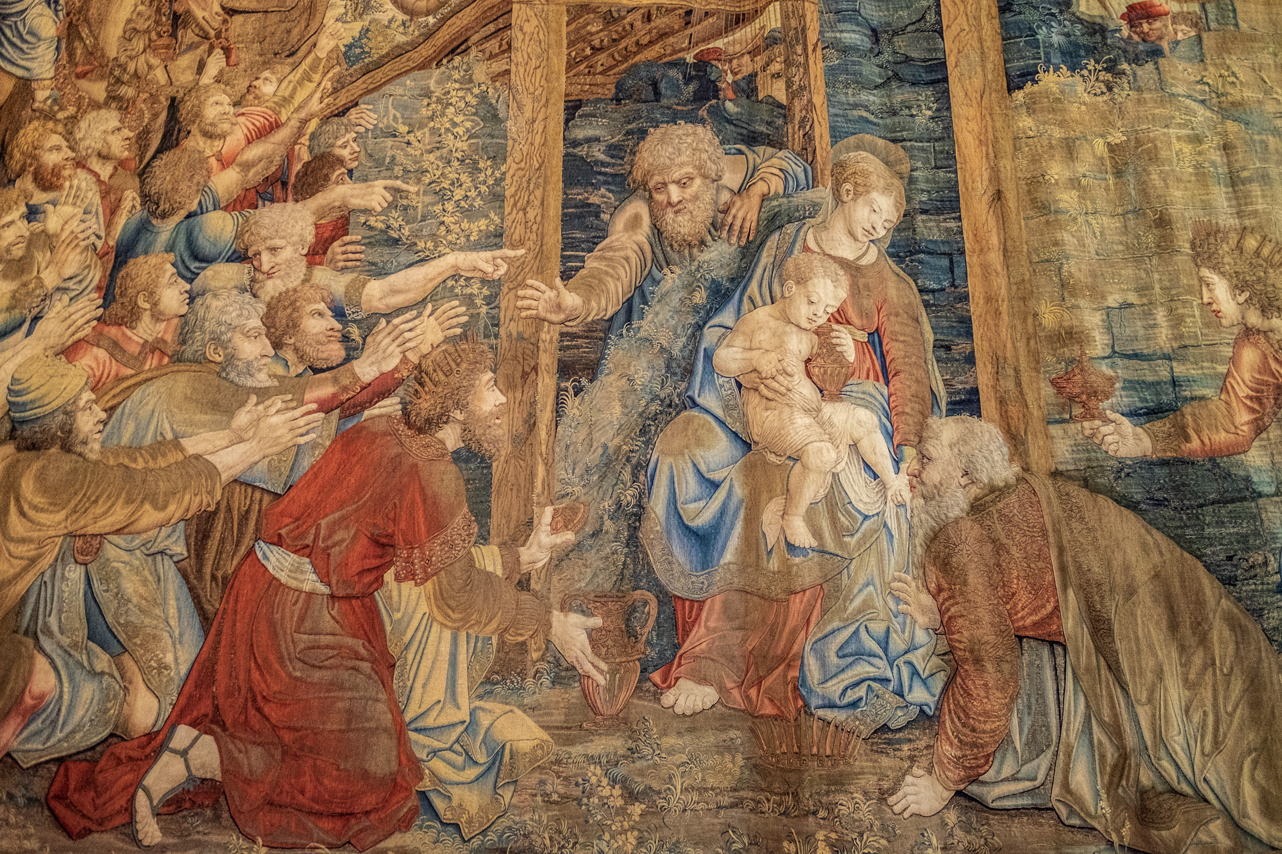 From sculptures we move to the tapestries room. These are beautifully intricate, but prove difficult to capture in full. We learn that each one of these take years to create, and are centuries old.