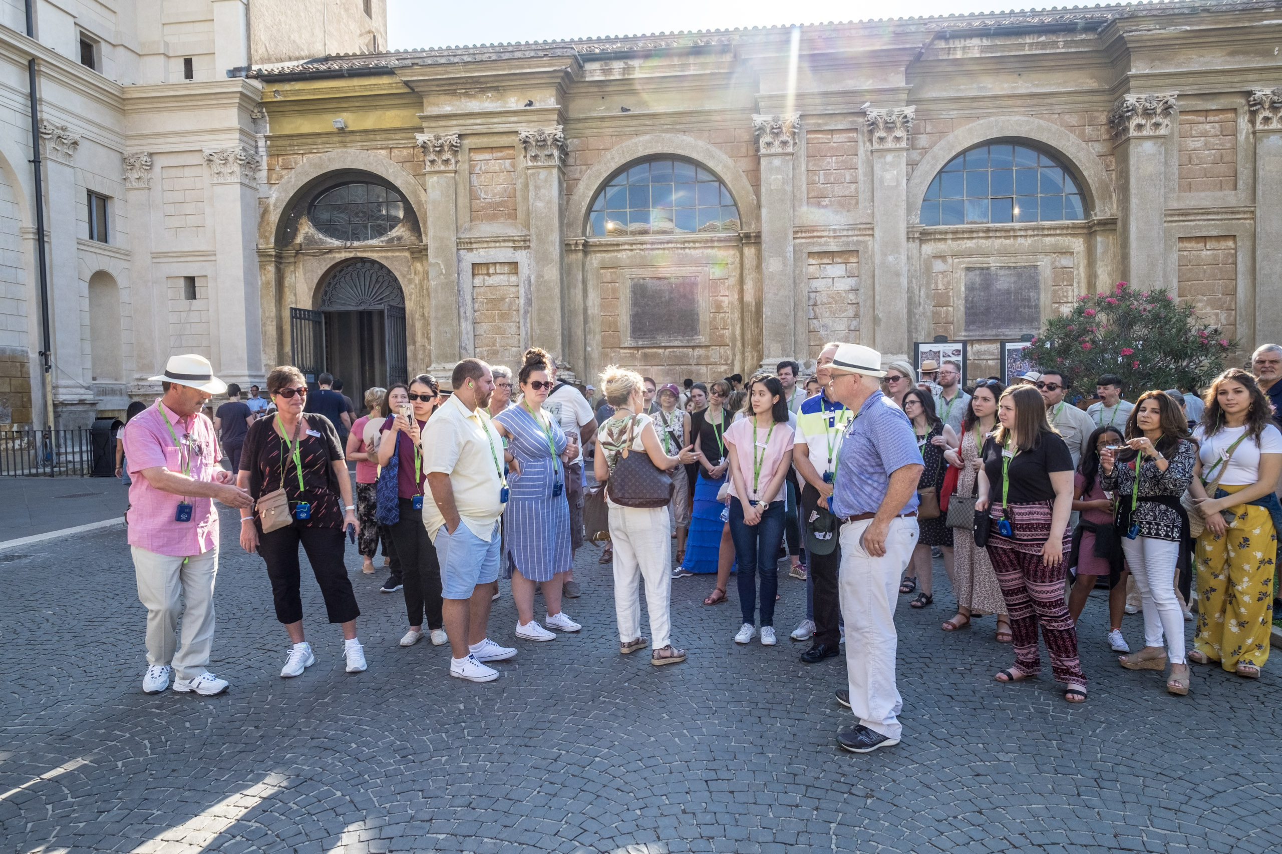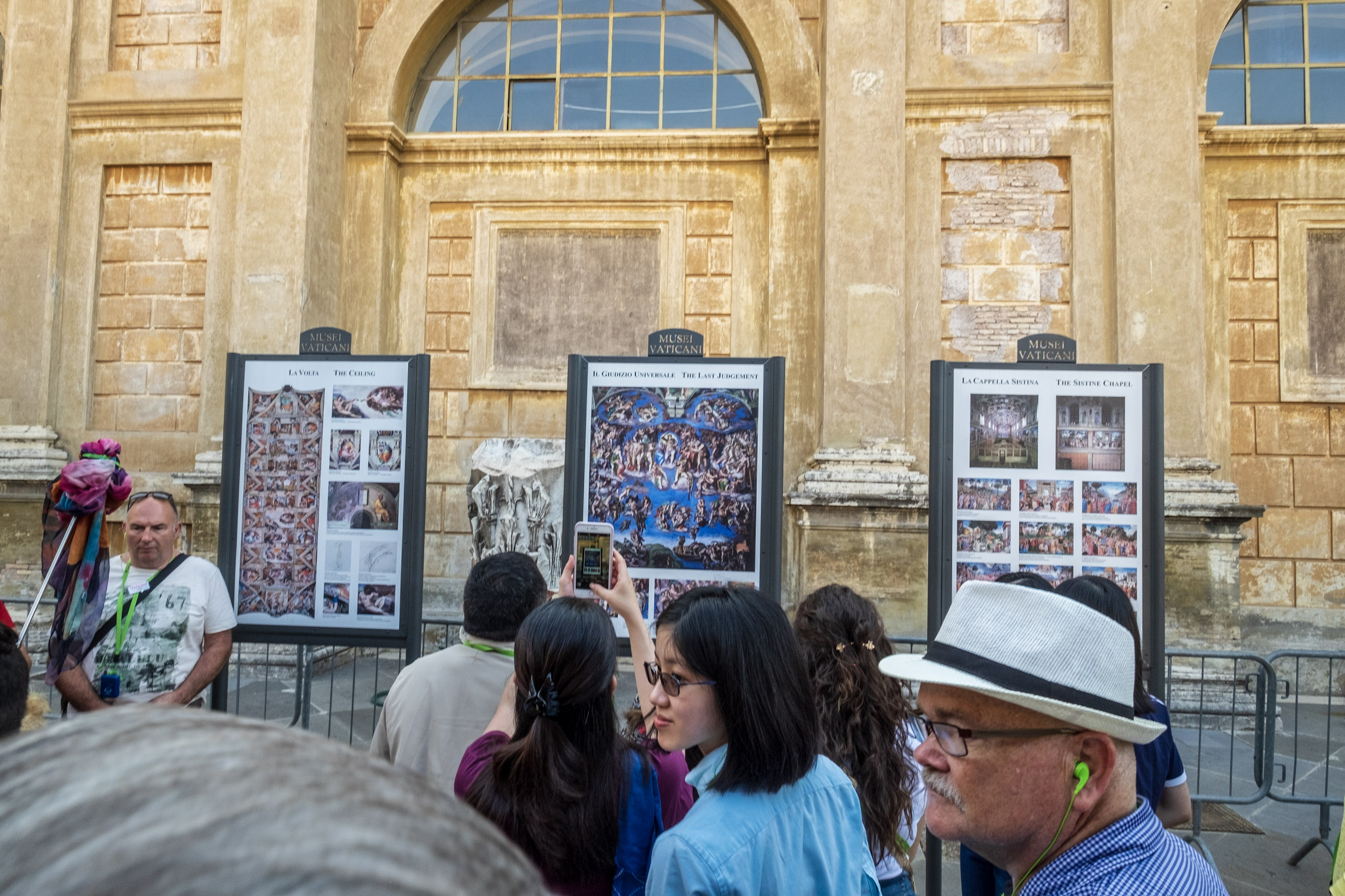 The plazas are expansive, and need to be. Even with our “early entrance privileges” there are dozens of groups congregating around the diminshing shady locations. Christina delivers the inside scoop on the Sistine Chapel - which will be one of the hallmarks of this visit. We only get bits and pieces of the stories, however, thanks to the efficiency of the Holy radios.