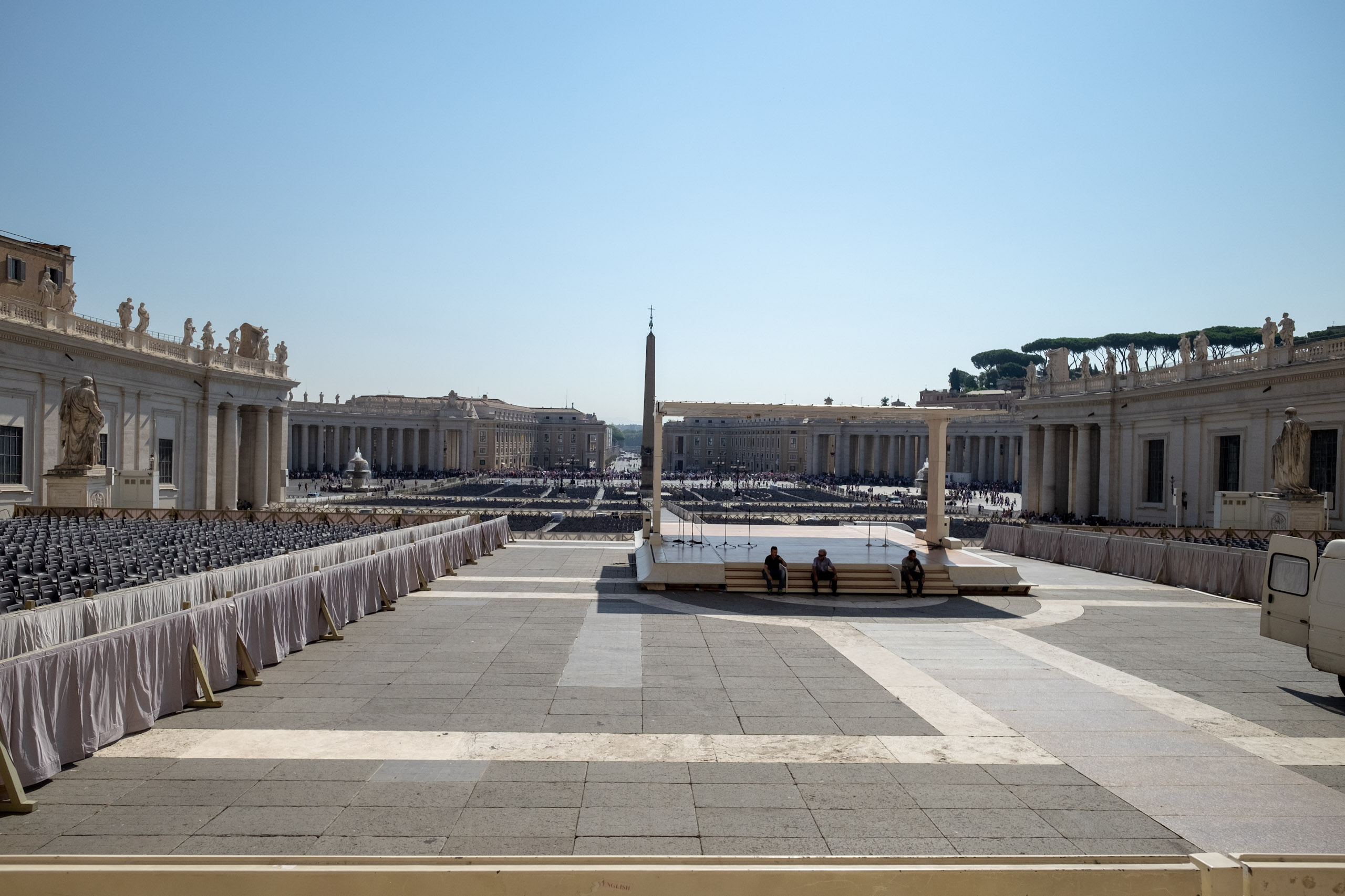From the chapel we reassemble in St. Peter’s Square, and get a sense of the. vastress of this afternoon’s altar server event. Sixty thousand folding chairs.