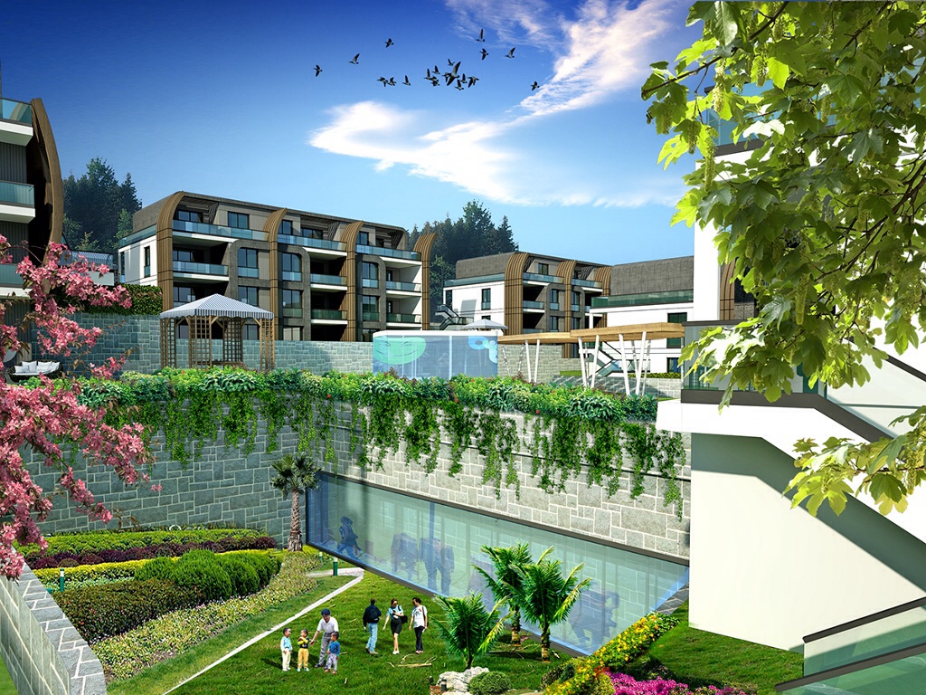 Spanning over an area of 17.000 m2, the project involves 4+1 duplex apartments only with wide gardens and terraces. The project specially designed with a calculation of optimum square meters stands out with spacious and functional features. The project includes walking tracks, sauna, spa, fitness center and social amenities.
