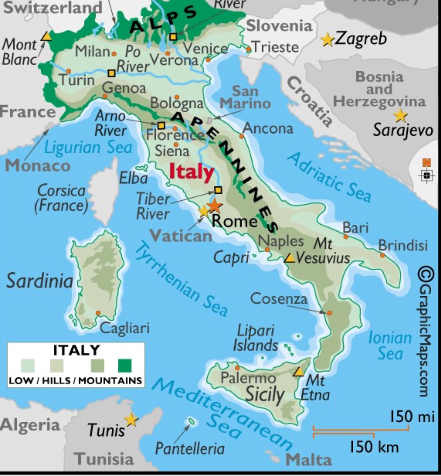 The Tiber river is 252 miles long.