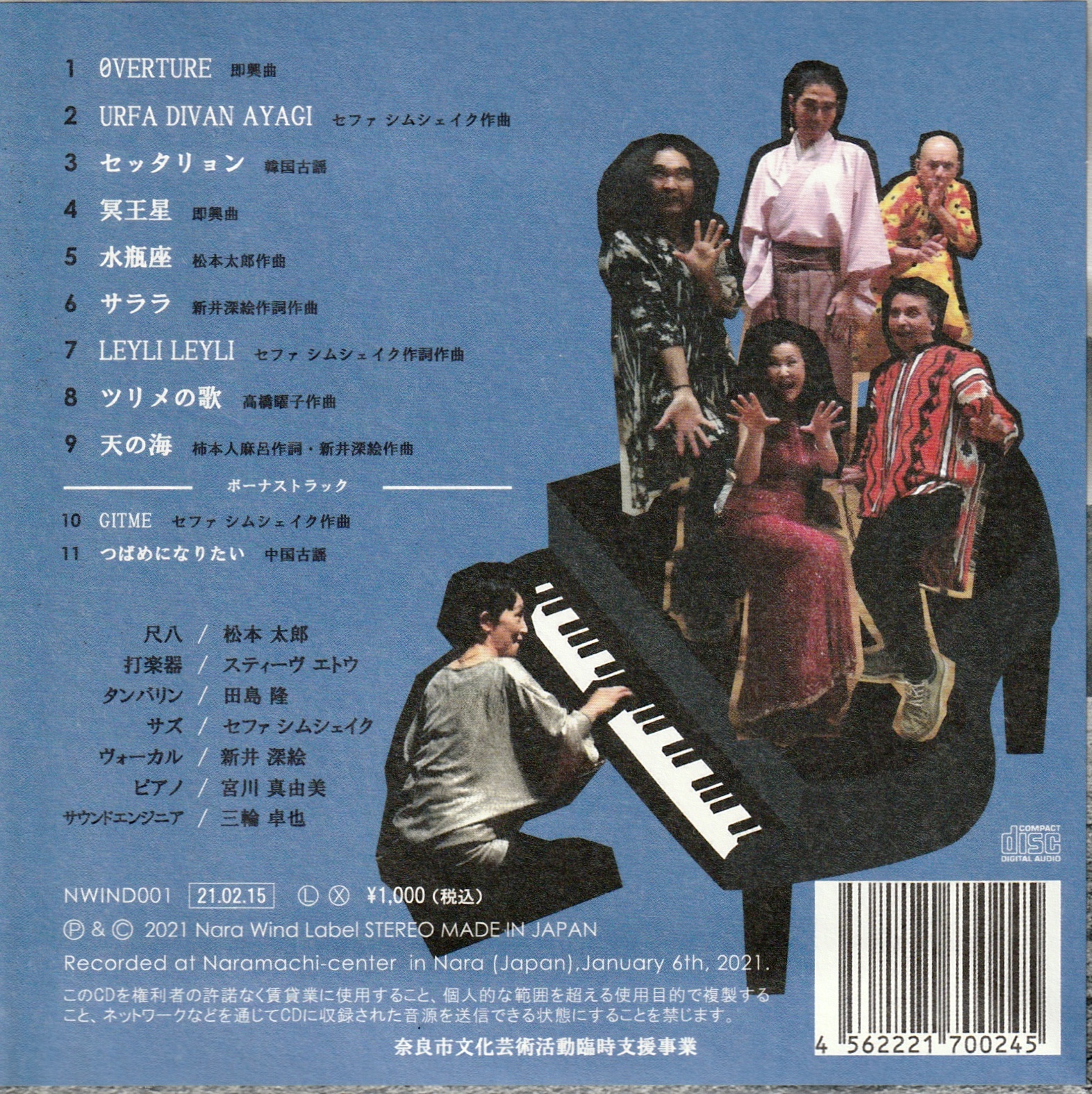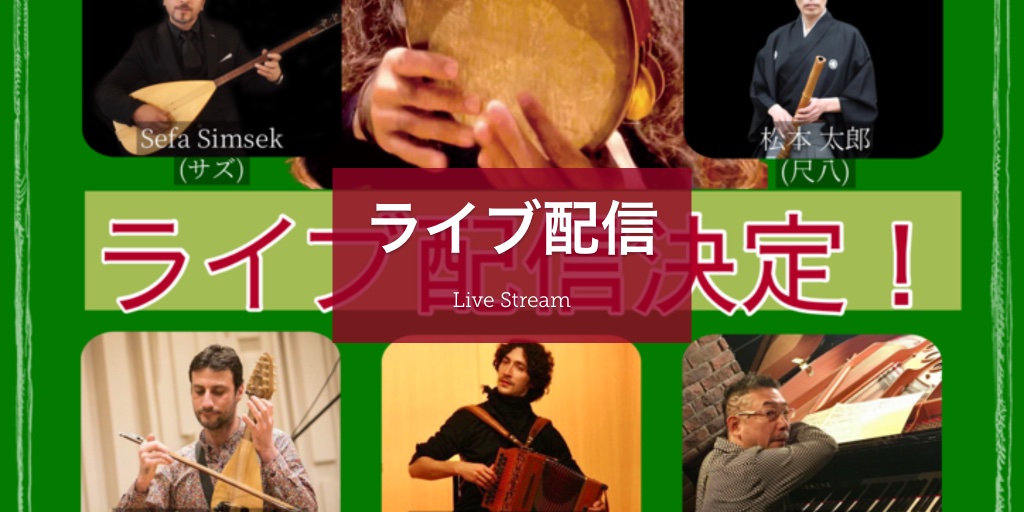 メンバー:松本太郎(尺八)、スティーヴエトウ(打楽器)、田島隆(タンバリン)、セファシムシェイク(サズ)、新井深絵(ヴォーカル)、宮川真由美(ピアノ)、三輪卓也(サウンドエンジニア)