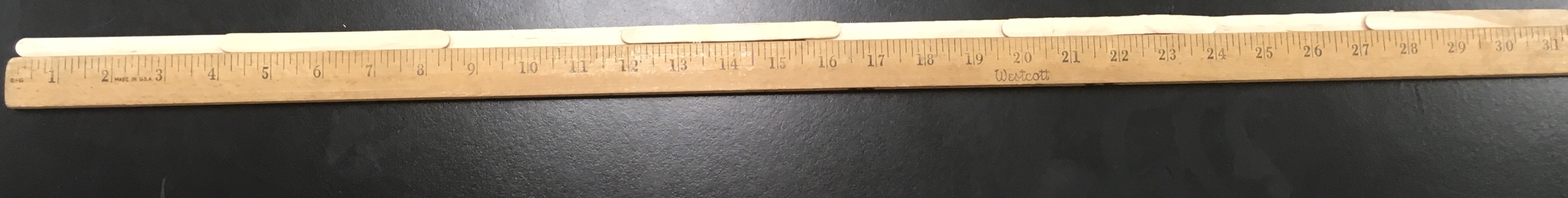 Step 2: put a period size dot of glue in between each overlap of both lines out sticks. You can go slightly overboard but not by too much with the glue or else the sticks will slide during the drying phase and the popsicle sticks will warp. Use a paper clip to clip the glued overlap in order to apply pressure and keep the glued sticks in place*. Leave the 2 32 inch sides to dry for 25-30 minutes before any activity involving the drying 32 inch sides happens. It is critical that you keep the glued sticks as straight as possible or the final product will snap at any bent section very easily.