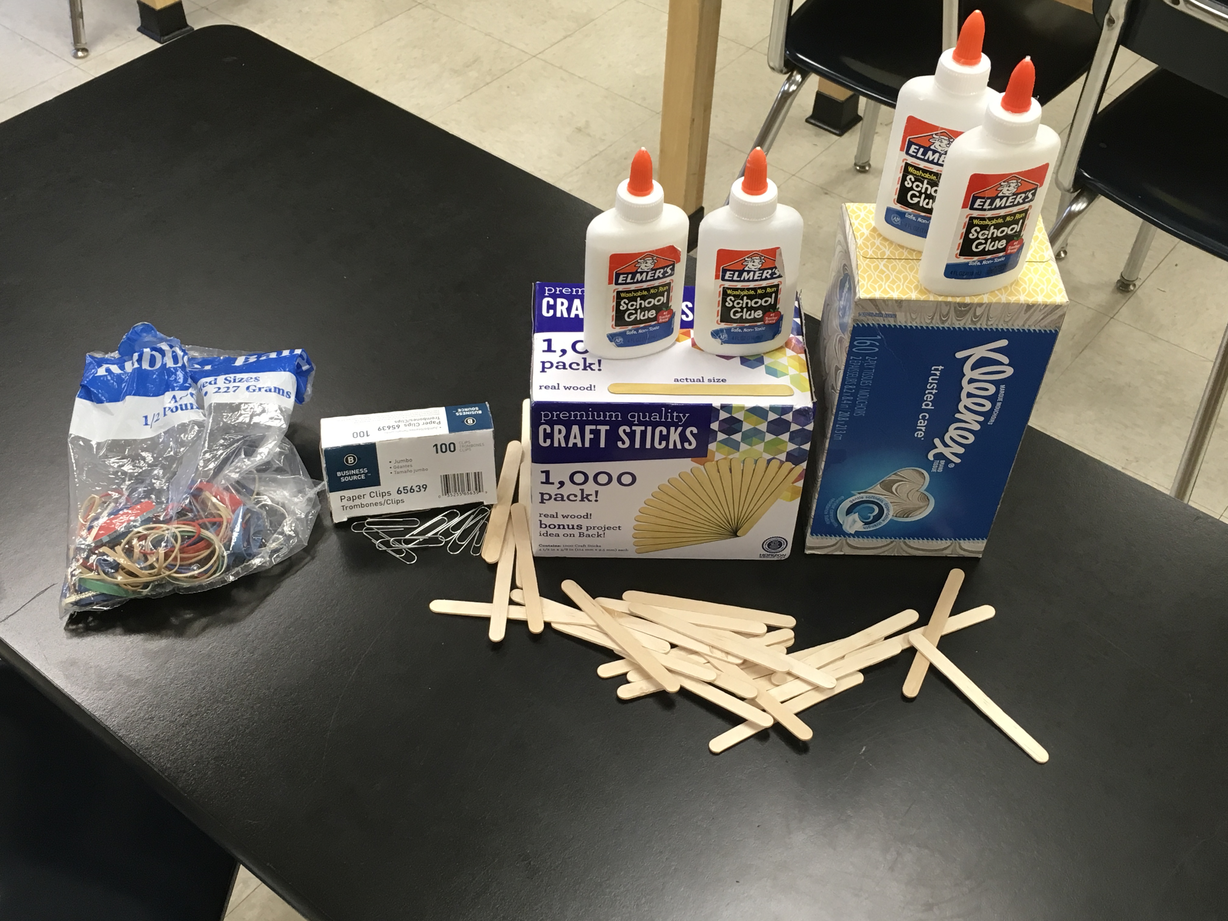 - 150-200 4.5 inch popsicle sticks (can be any brand just as long as each individual stick is 4.5 inches long).