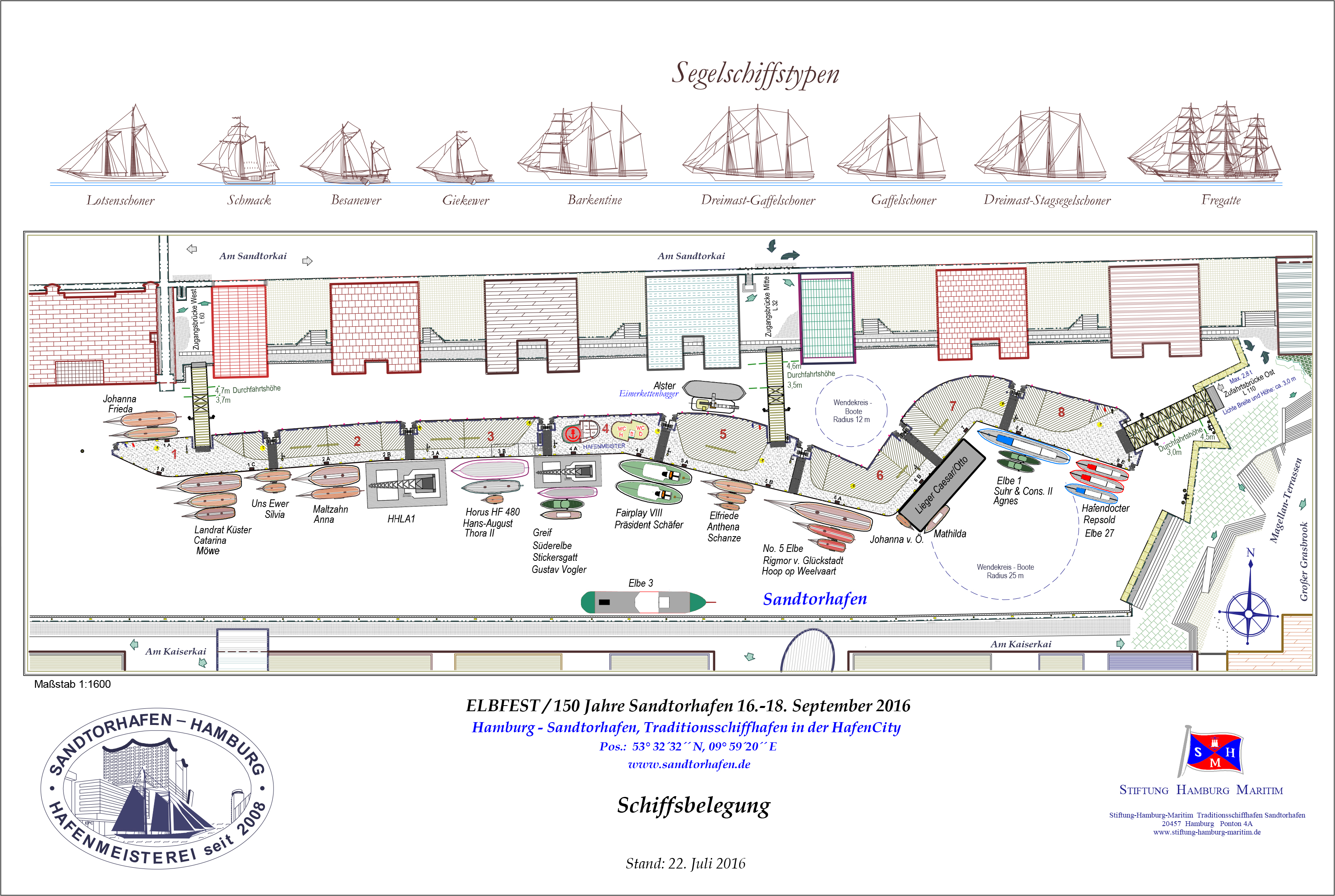 Anlässlich des 150. Geburtstag des Sandtorhafens veranstalten die Stiftung Hamburg Maritim gemeinsam mit der Stiftung Historische Museen Hamburg und anderen Partner am 17./18. September 2016 ein spezielles Hafenfest.