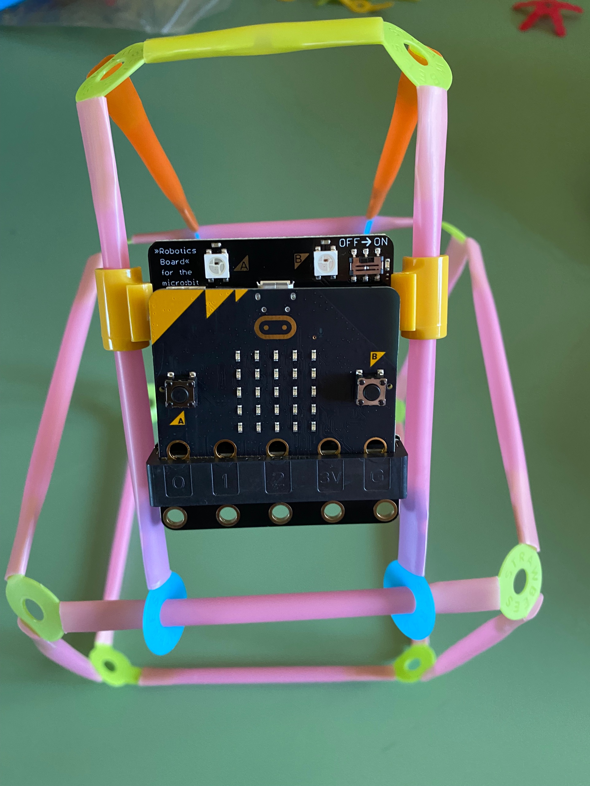 Utilizziamo le Strawbees per costruire la base su cui sarà appoggiata la scheda elettronica che utilizzeremo.
