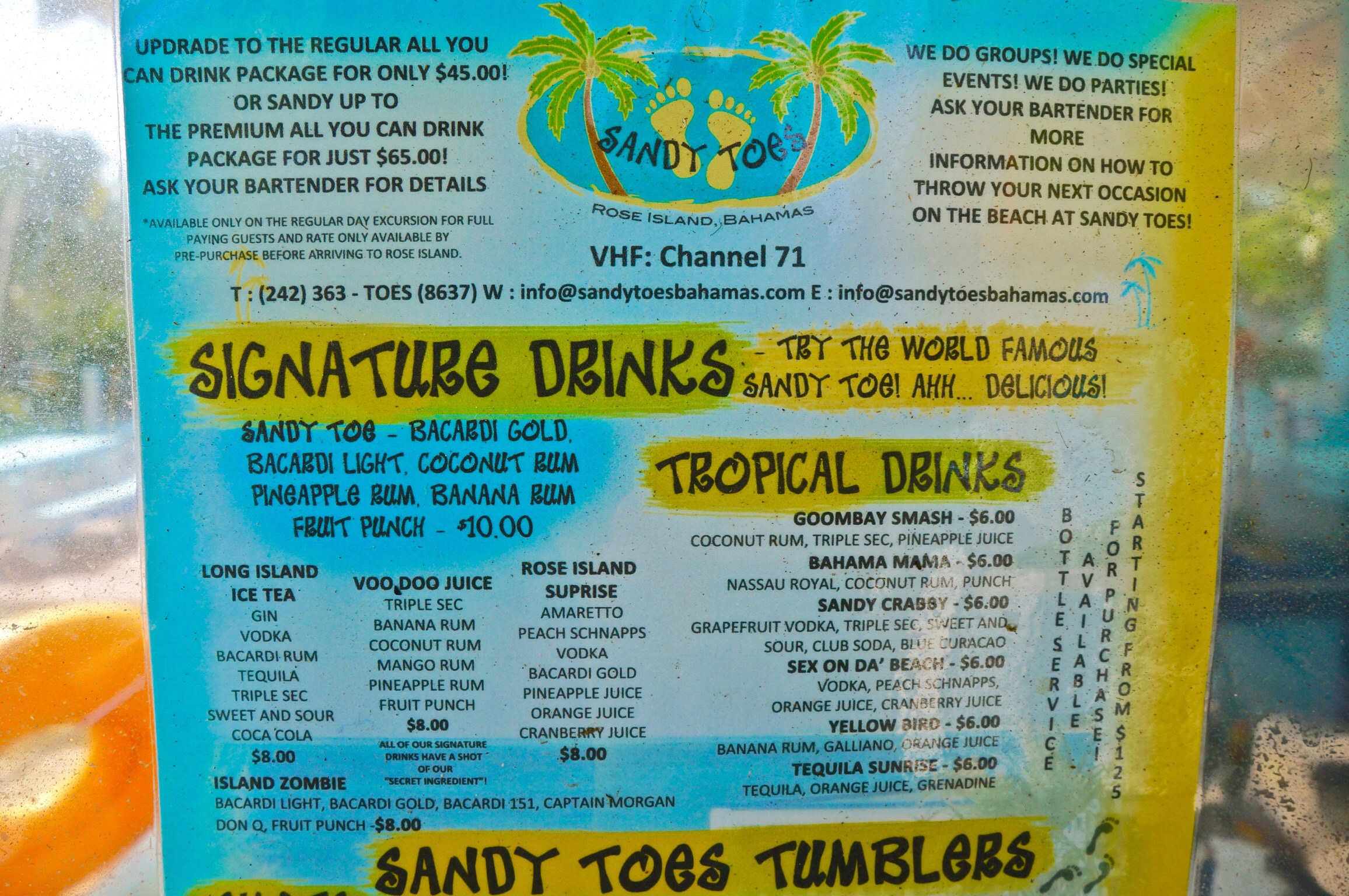 The cost of admission includes a welcome drink, a local Bahamian lunch buffet and snorkel tour. Drinks at the beach bar and kayak rental cost a bit extra.