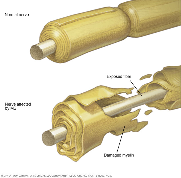 In multiple sclerosis, damage to the myelin in the central nervous system, and to the nerve fibers themselves, interferes with the transmission of nerve signals between the brain and spinal cord and other parts of the body. While the cause of MS is still not known, scientists believe that the interaction of several different factors may be involved. To answer this question, studies are ongoing in the areas of immunology, epidemiology, and genetics. Scientists are also studying infectious agents that may play a role. Understanding what causes MS will speed the process of finding more effective ways to treat it and cure it, or even prevent it from occurring in the first place.