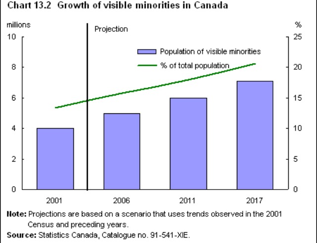 - As seen in the chart below there will be a higher diversity rate and Canada will be made up of plenty of minorities. Also the population will go from a low number to going higher because of Canada's efforts to keep the immigration in and the population up