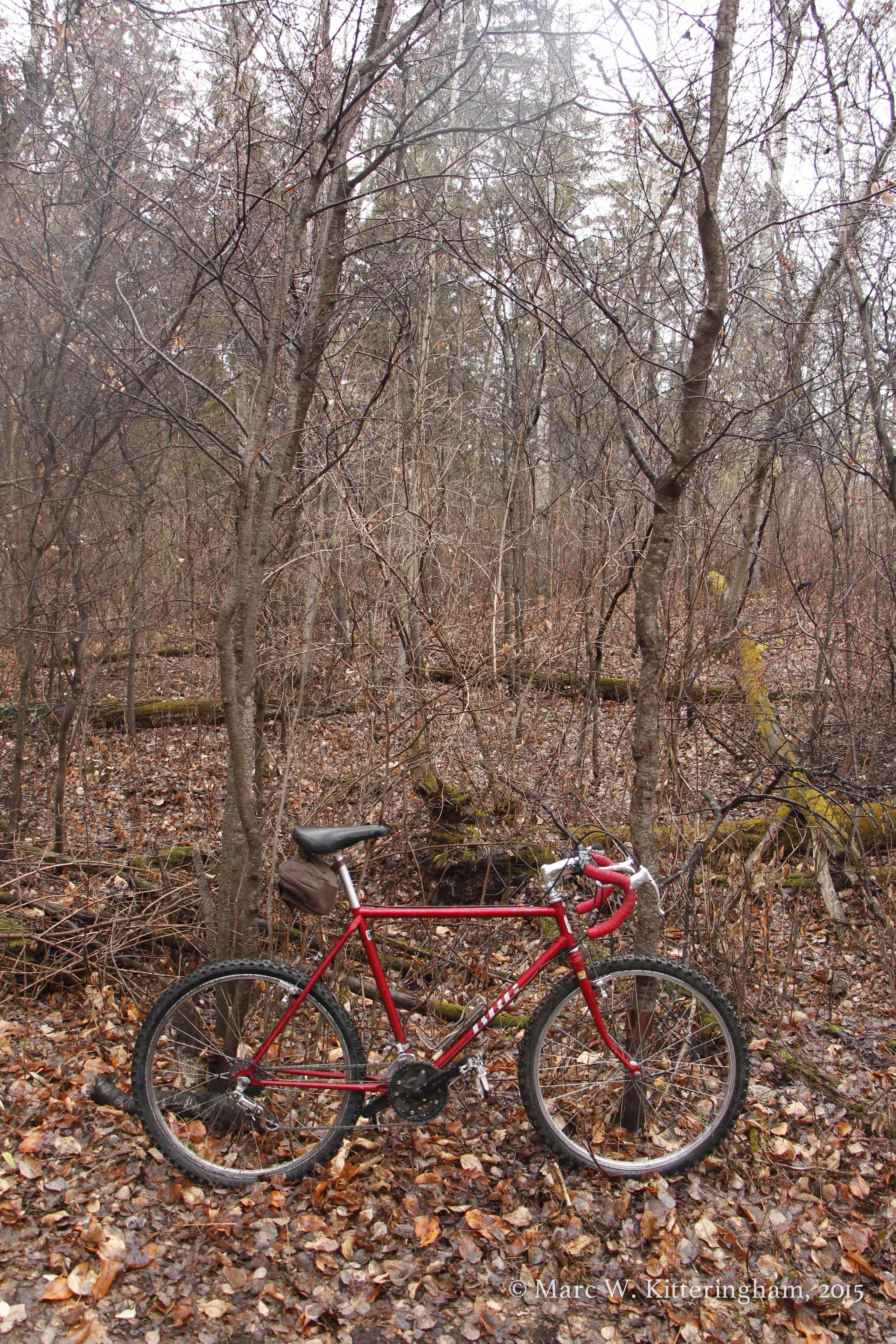 My relationship with this bike started when I found it in the donation pile at the bike shop. It was a beat up dusty old mountain bike with rotten fenders, a crusty chain and drivetrain and a mound of outdated parts. I started working on it by stripping off everything but the frame, the wheels and the derailleurs. By the time I got it down to a bare frame, I was ready to take it home.