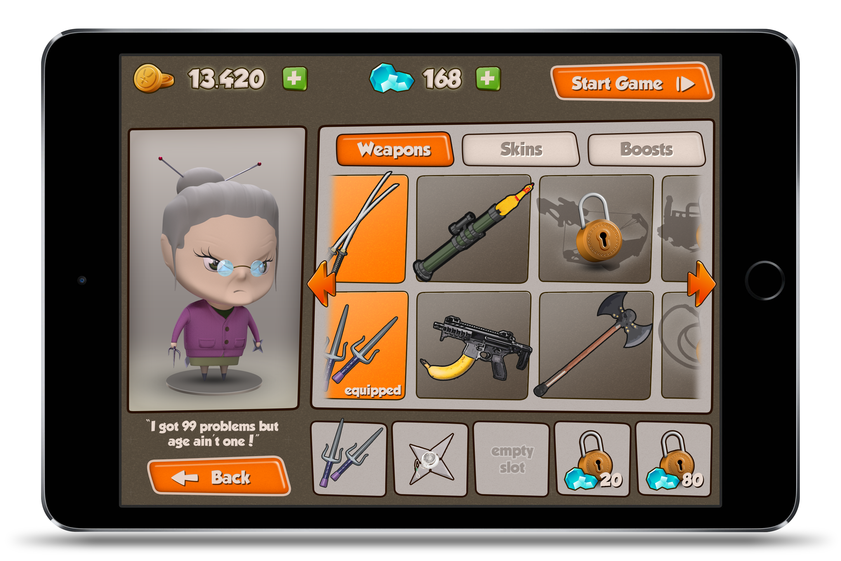 3D mobile game which you control a granny named "Yaya Ninja" and you have to fight your way throughout the enemies on a time travel story. Various game modes, with store which includes weapons, ammo, skins, upgrades and many ridiculous hilariously things to fight with!