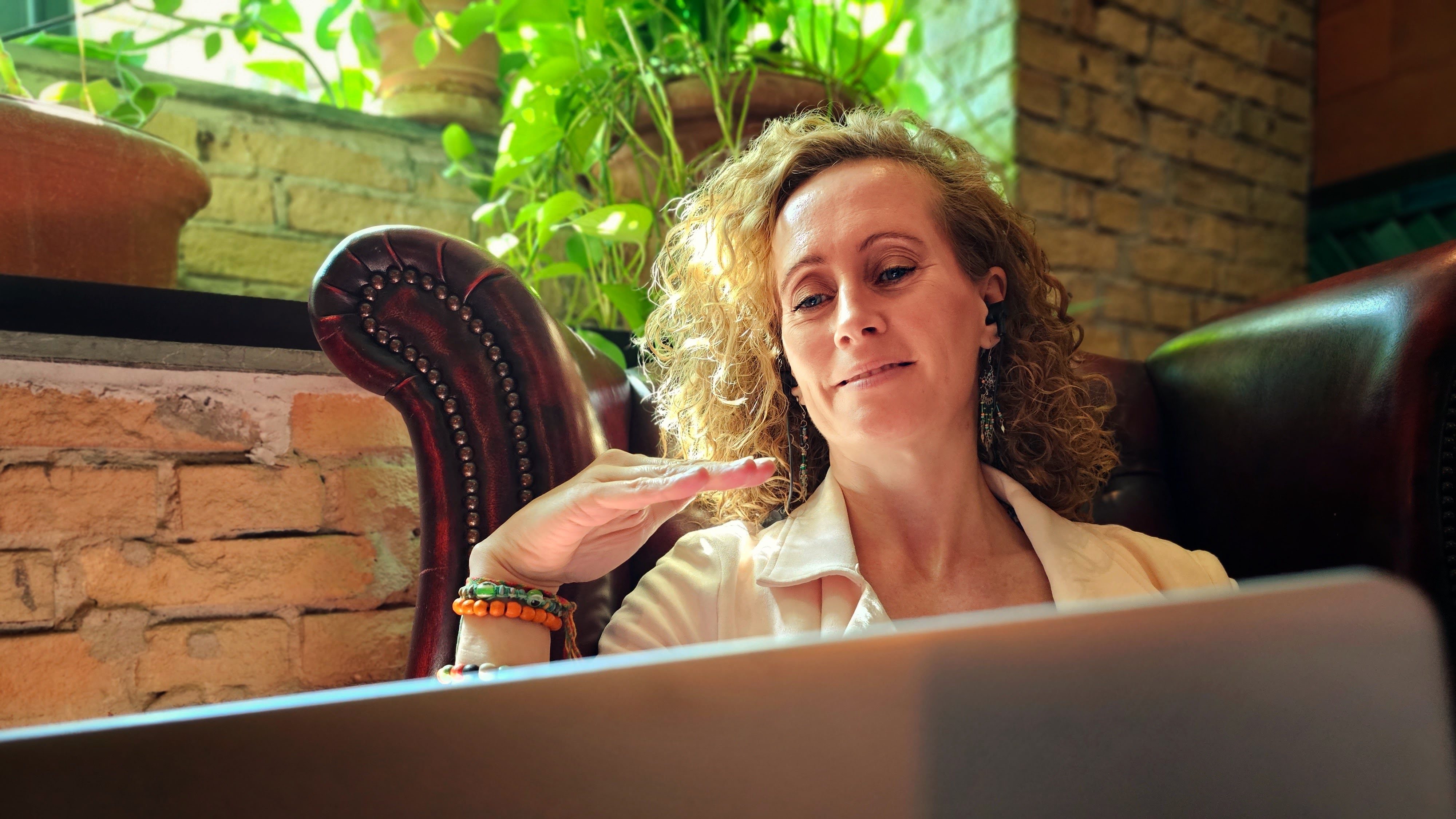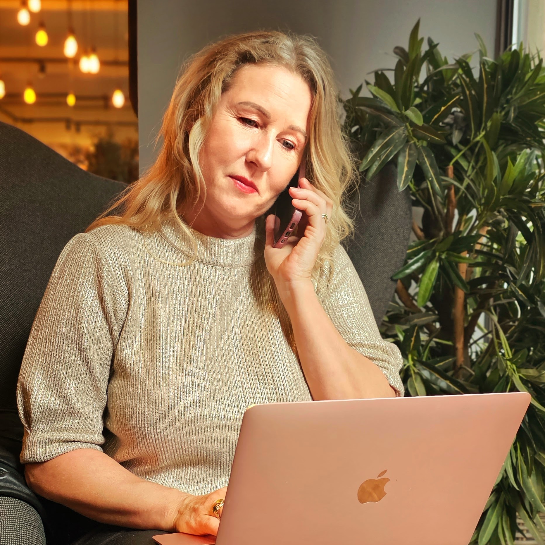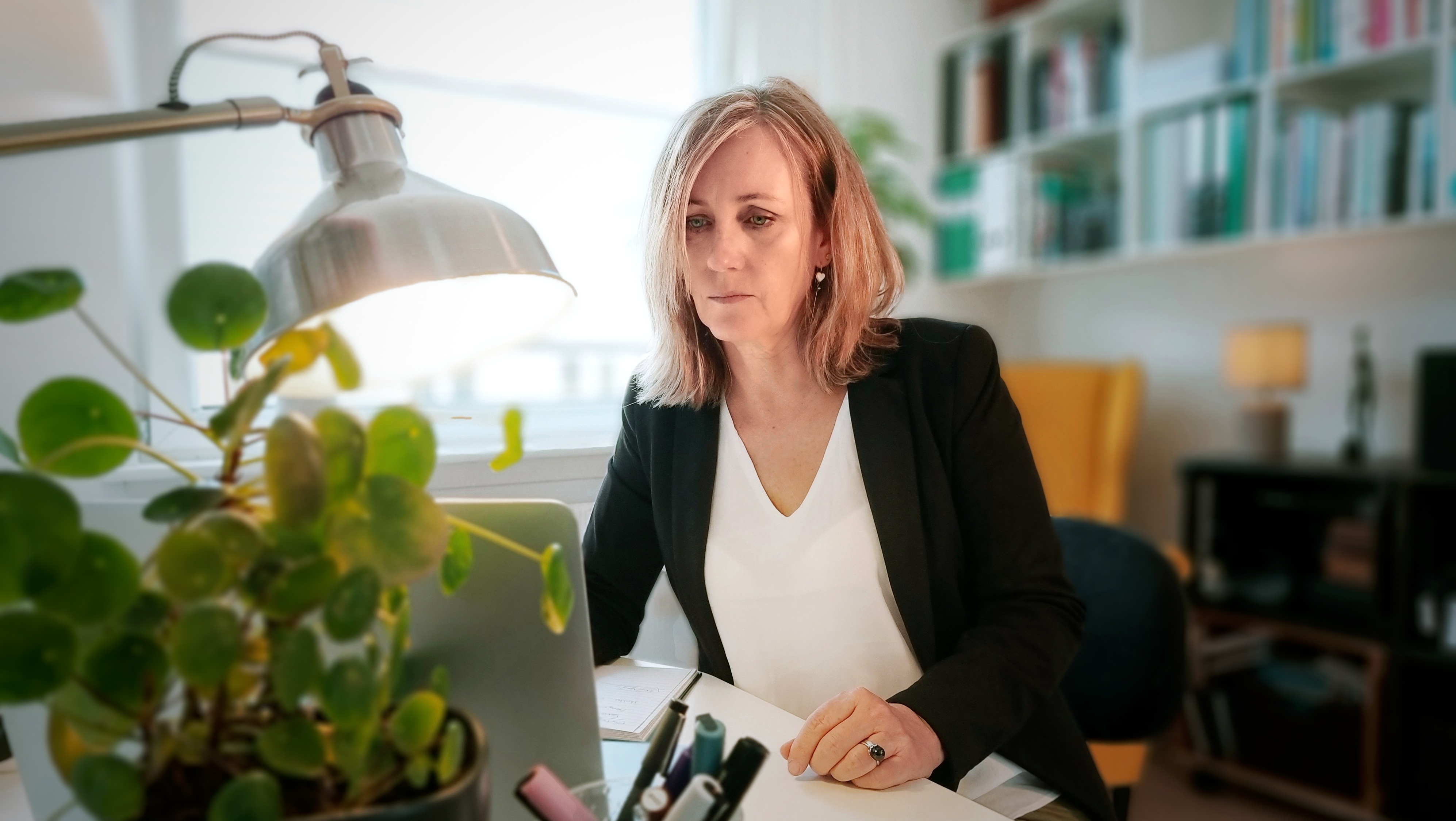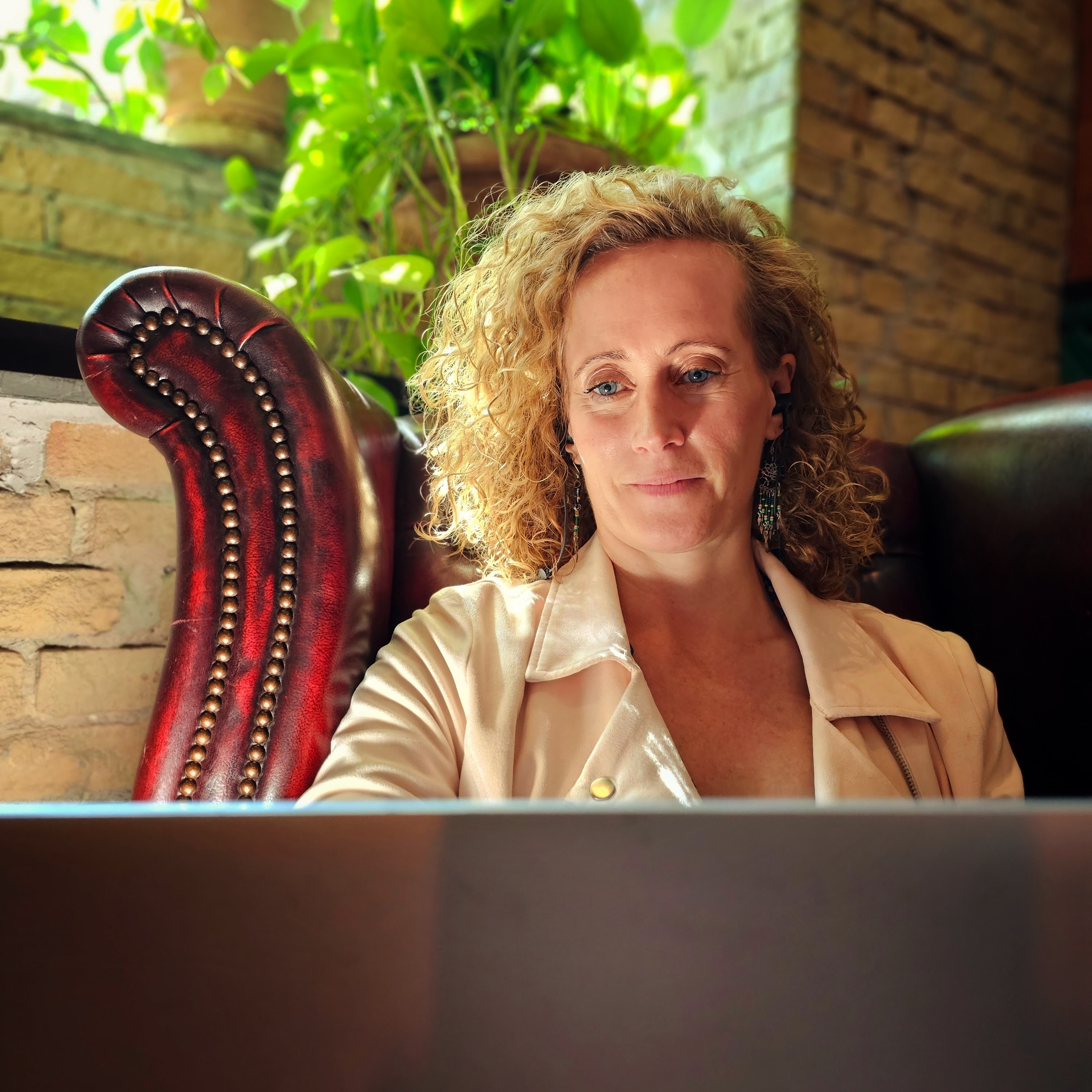 Iben skulle bruge billeder til sine onlineprofiler, hjemmeside, nyhedsbreve og så videre, så vi fik forventningsafklaret og sat mål og rammer og mødtes på hendes adresse hvorfra hun tager imod klienter til samtaler. Enten indendørs, eller i orangeriet omgivet af lys og grønne vækster.