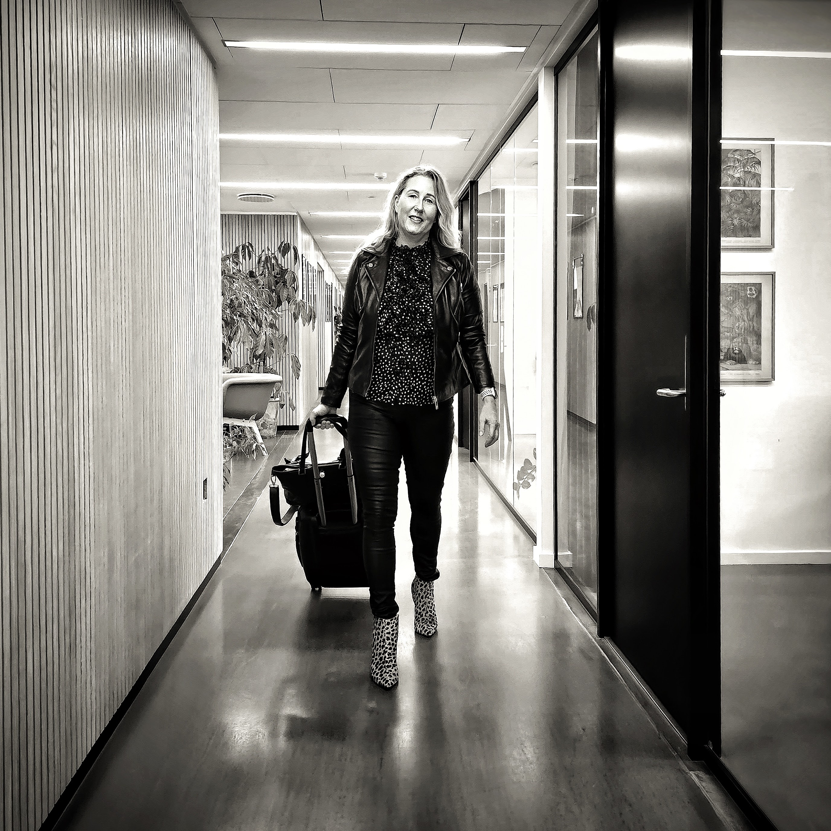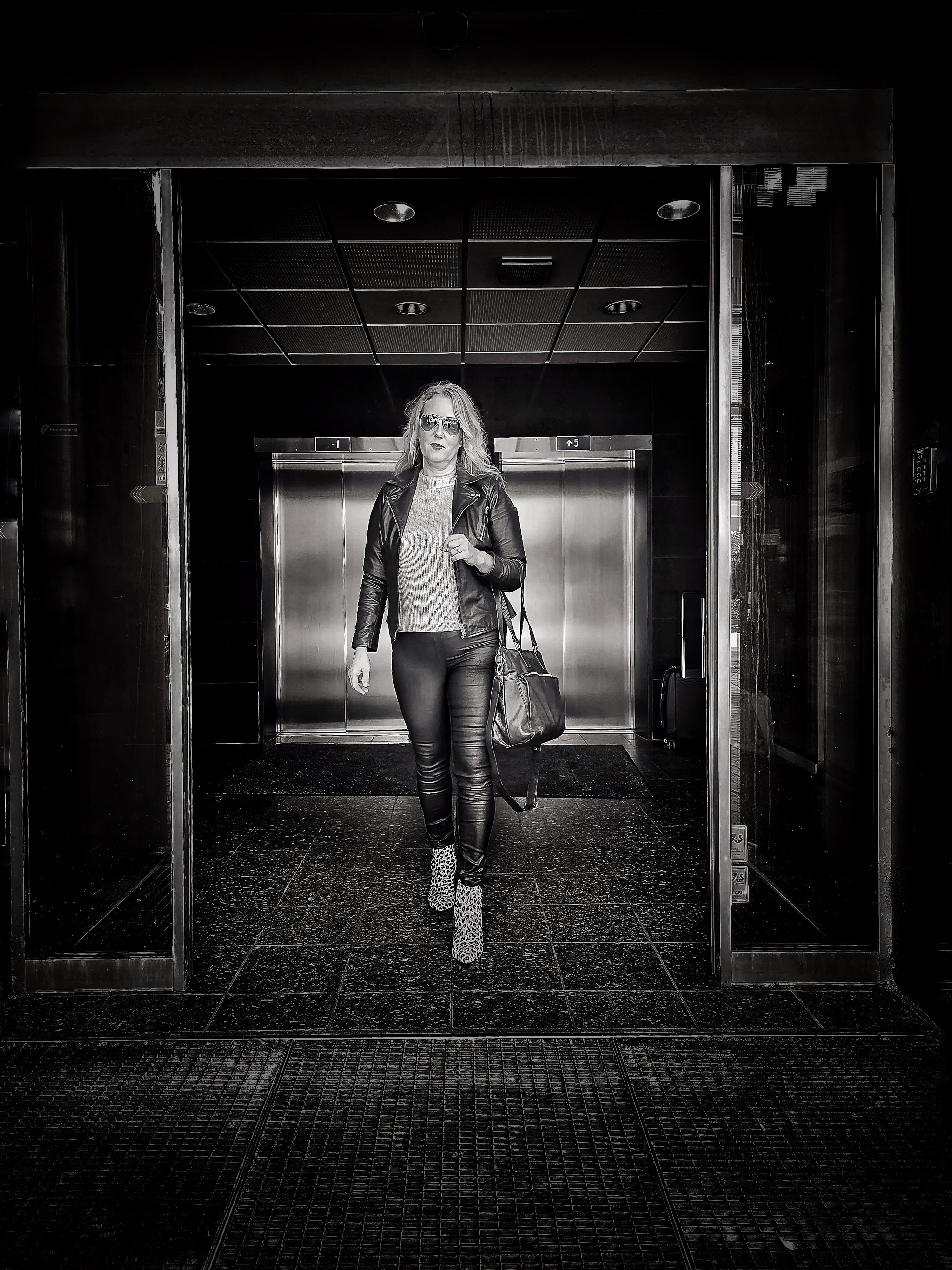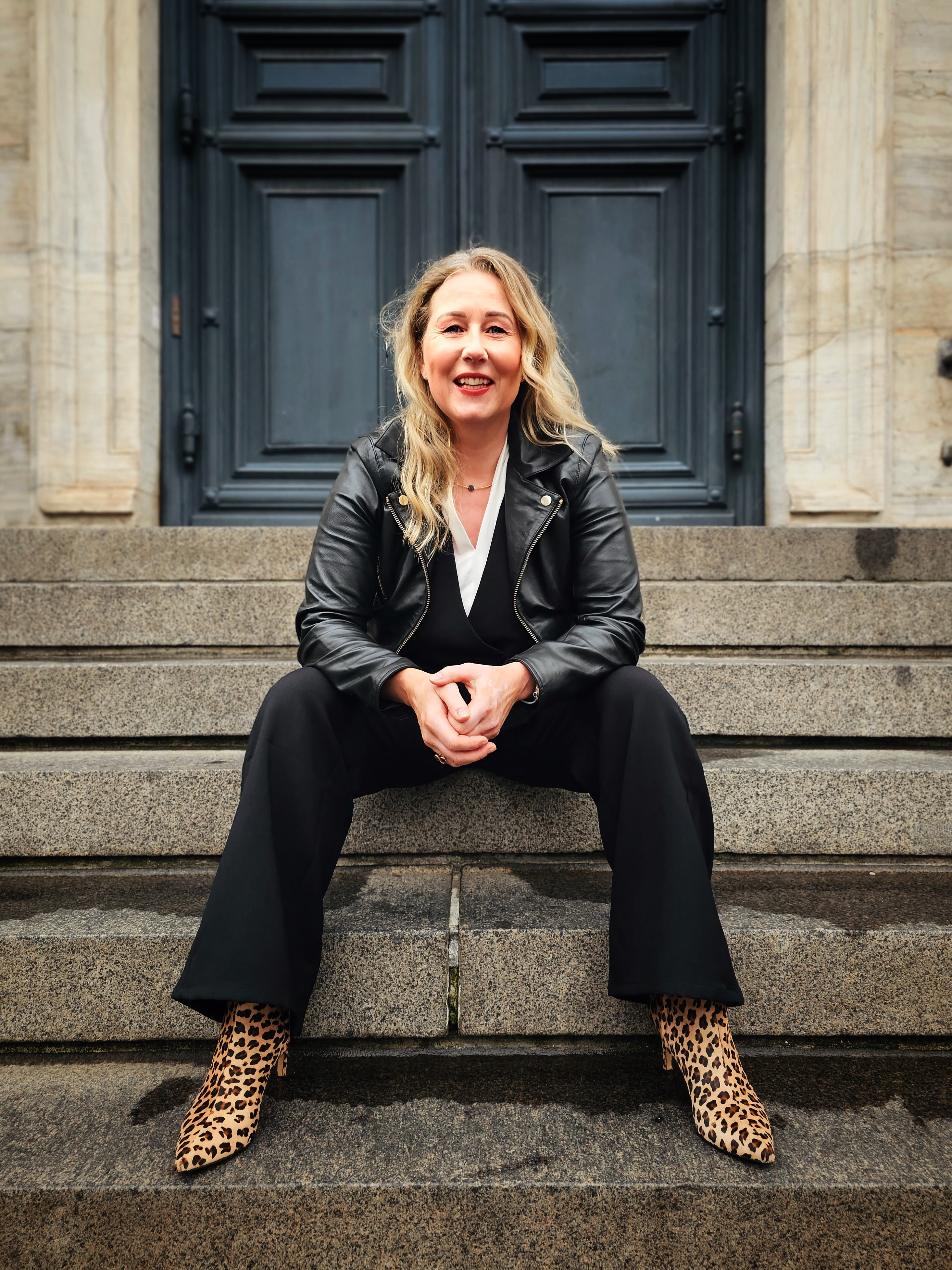 Marie-Louise Holm Jørgensen matcher en trappe ... det er i dét her tilfælde en kompliment ... skudt i Dansk Arkitekturcenter i BLOX i København. Og ja, Marie-Louise går faktisk sådan på arbejde hos Rigspolitiet så hun kender til at der bliver drejet hoveder og kommenteret.