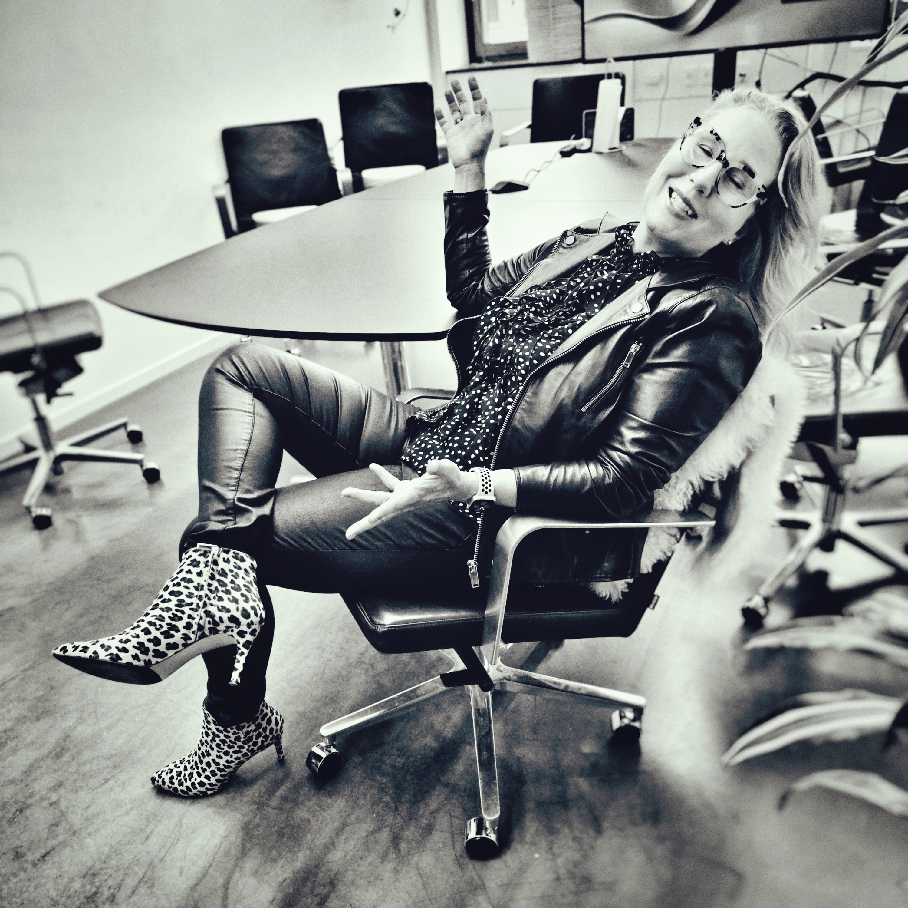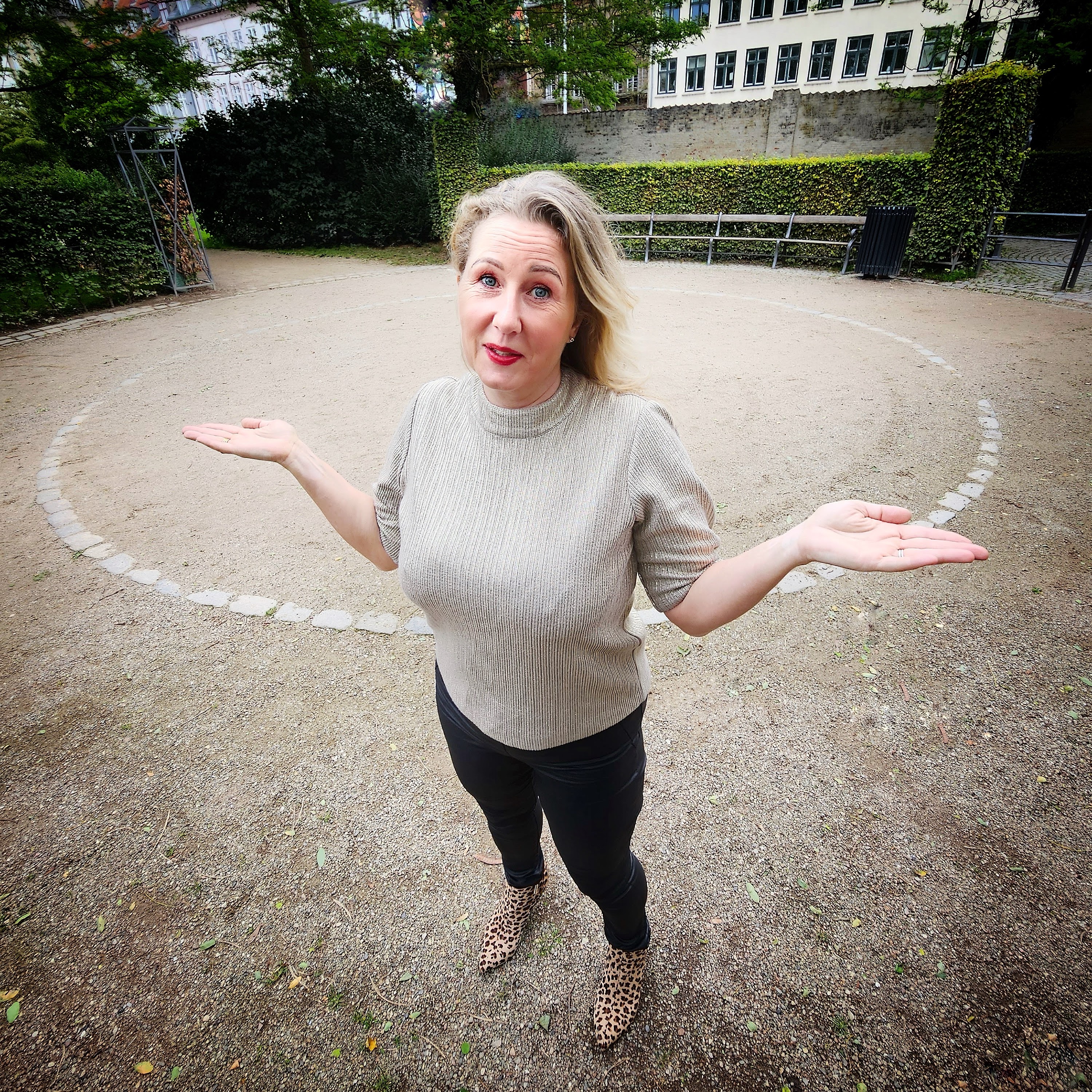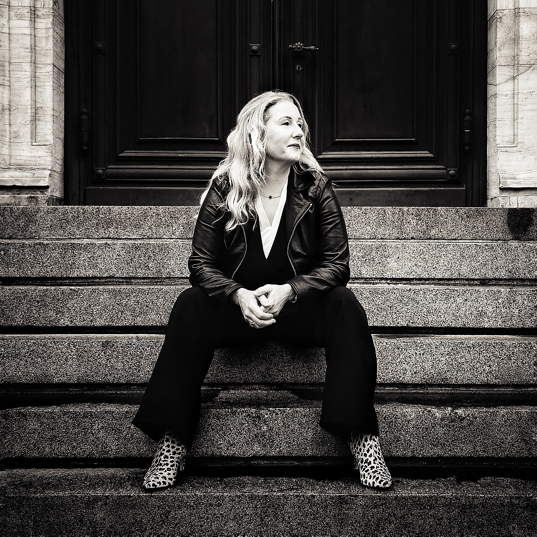 Marie-Louise Holm Jørgensen matcher en trappe ... det er i dét her tilfælde en kompliment ... skudt i Dansk Arkitekturcenter i BLOX i København. Og ja, Marie-Louise går faktisk sådan på arbejde hos Rigspolitiet så hun kender til at der bliver drejet hoveder og kommenteret.